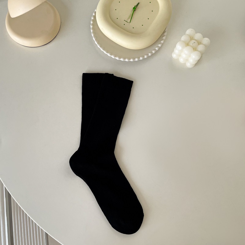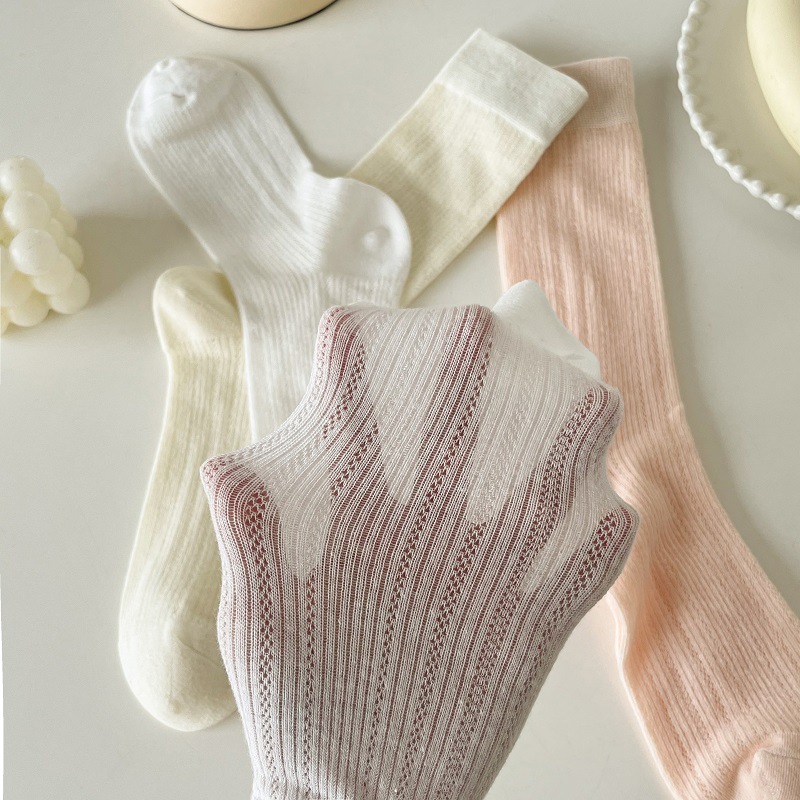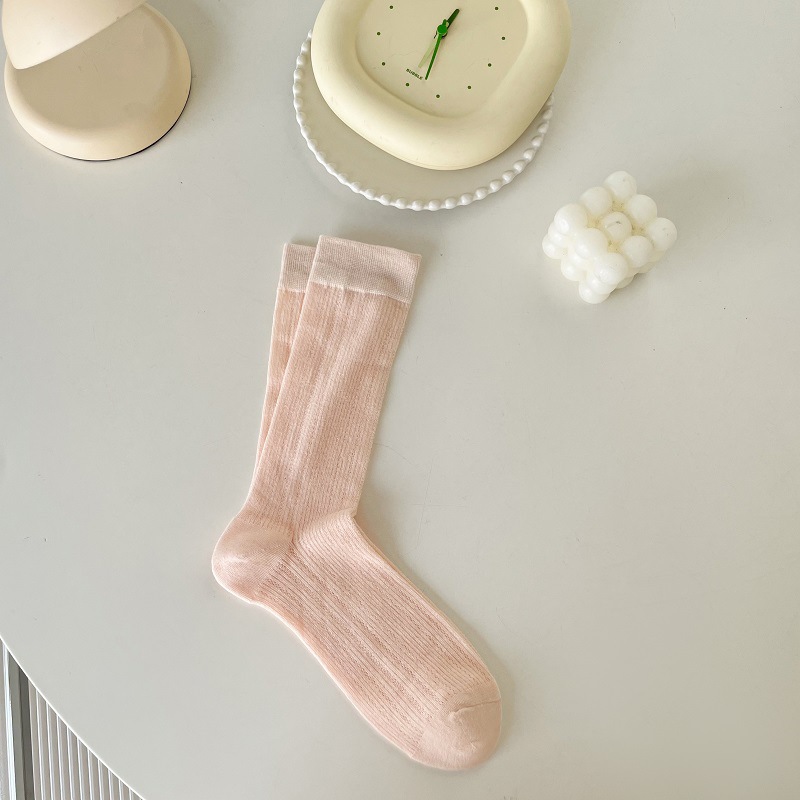 양말 여성의 봄과 여름 얇은 통기성 수직 줄무늬 중간 길이 양말 Ins 트렌디 한 올 매치 스위트 일본 스타일 JK 솔리드 컬러 스타킹