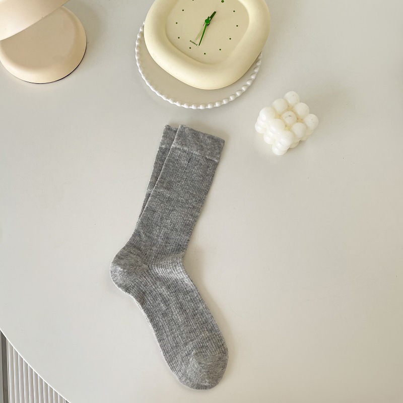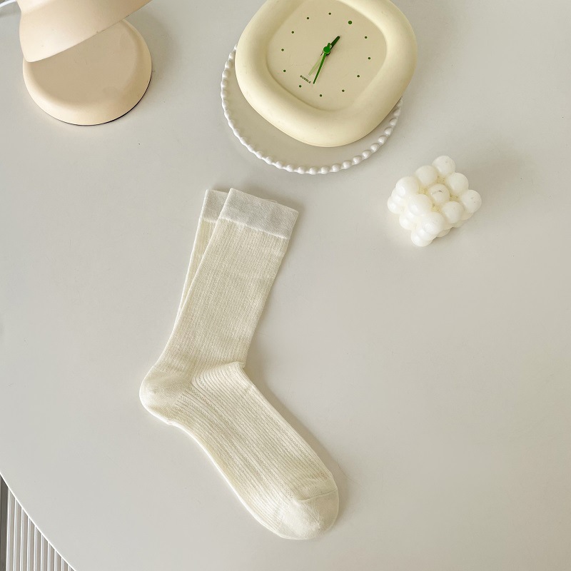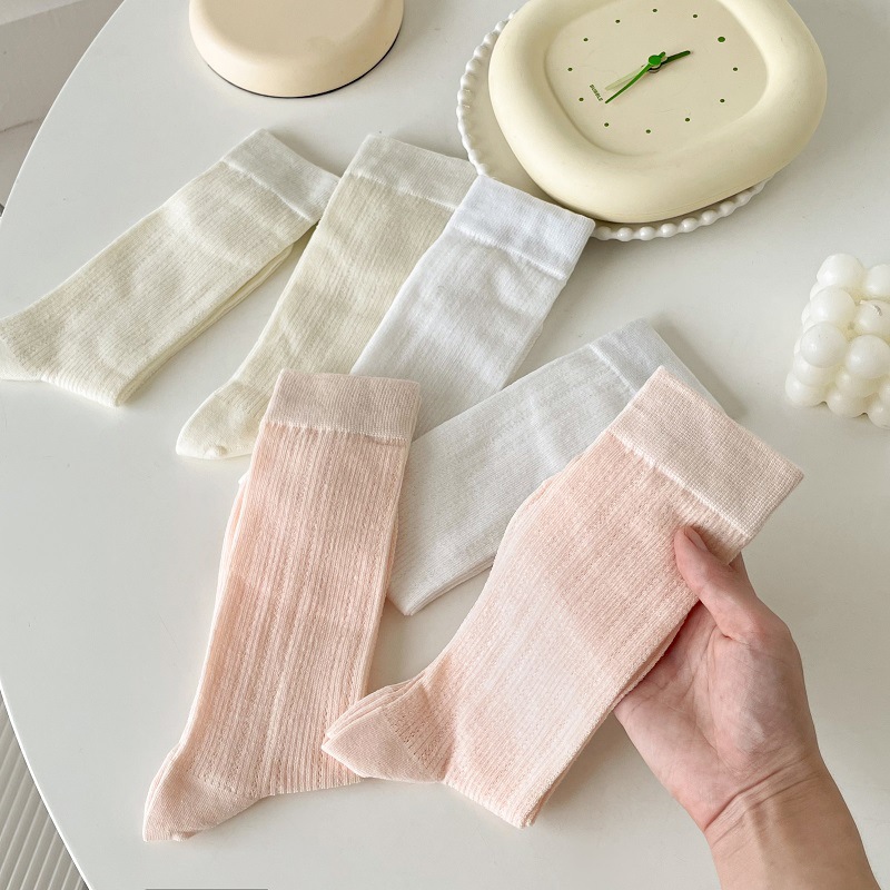 양말 여성의 봄과 여름 얇은 통기성 수직 줄무늬 중간 길이 양말 Ins 트렌디 한 올 매치 스위트 일본 스타일 JK 솔리드 컬러 스타킹스토어 가기
