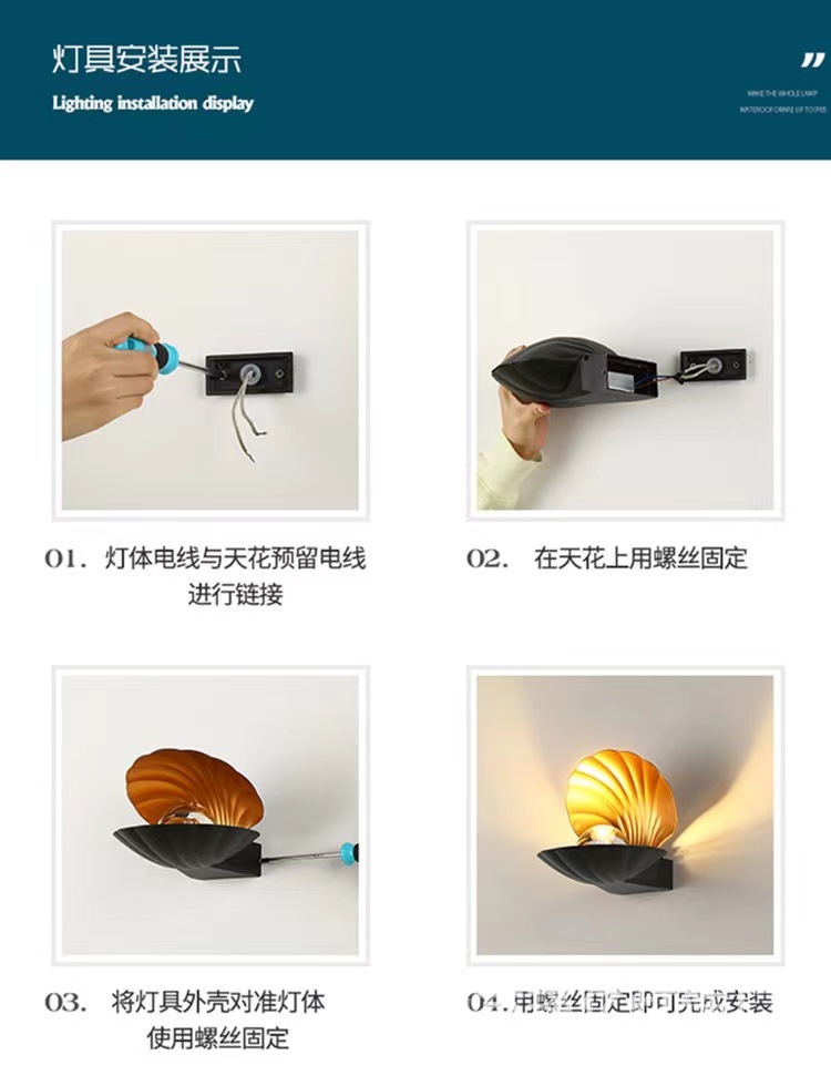새로운 진주 쉘 창조적 인 벽 램프 야외 벽 램프 방수 간단한 현대 벽 램프 전자 상거래 폭발스토어 가기