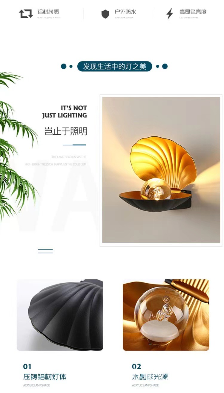 새로운 진주 쉘 창조적 인 벽 램프 야외 벽 램프 방수 간단한 현대 벽 램프 전자 상거래 폭발