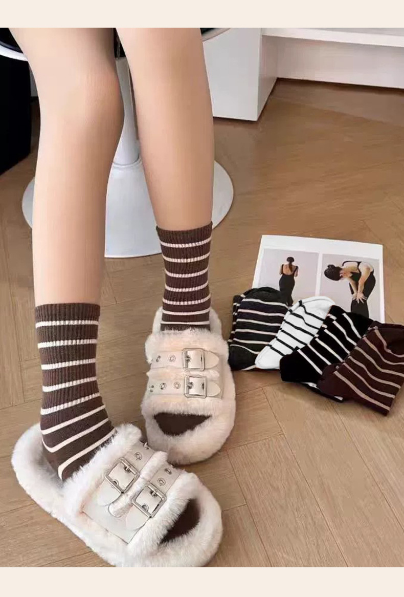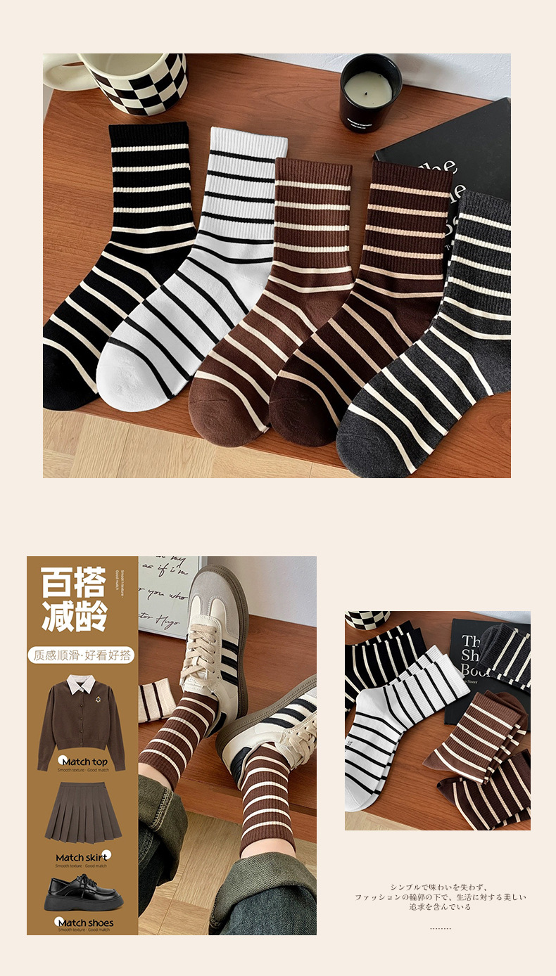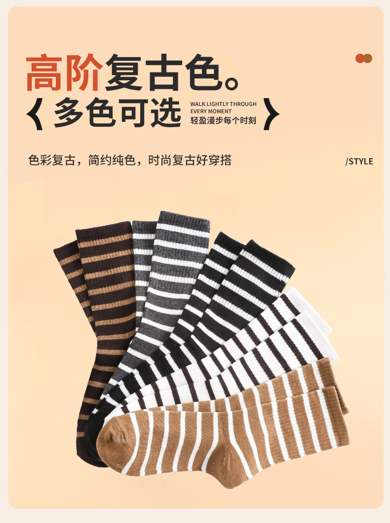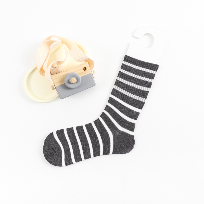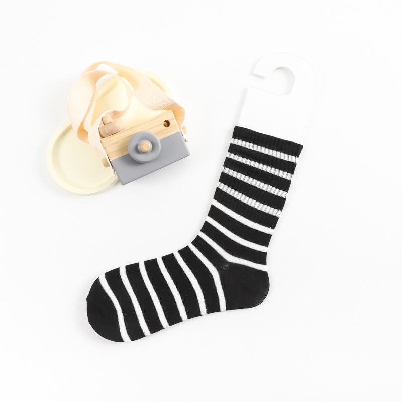 스트라이프 양말 여성용 중목 양말 봄 가을 롱 양말 외출용 중목 양말 트렌디한 한국 스타일 땀 흡수 양말스토어 가기