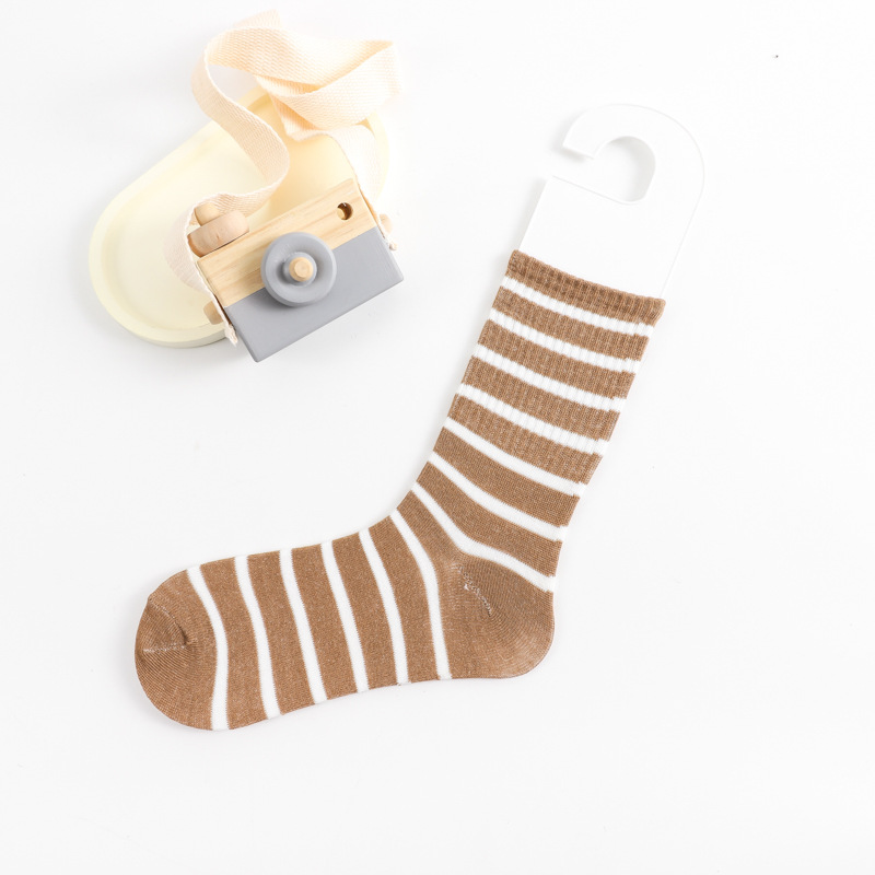 스트라이프 양말 여성용 중목 양말 봄 가을 롱 양말 외출용 중목 양말 트렌디한 한국 스타일 땀 흡수 양말