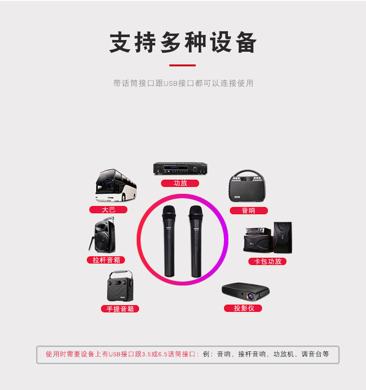 VHF一拖二无线话筒,不带电池。(自备5号干电池)
