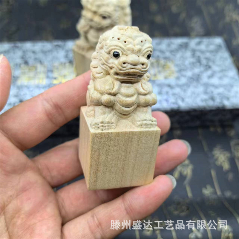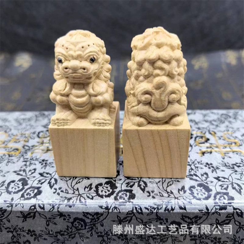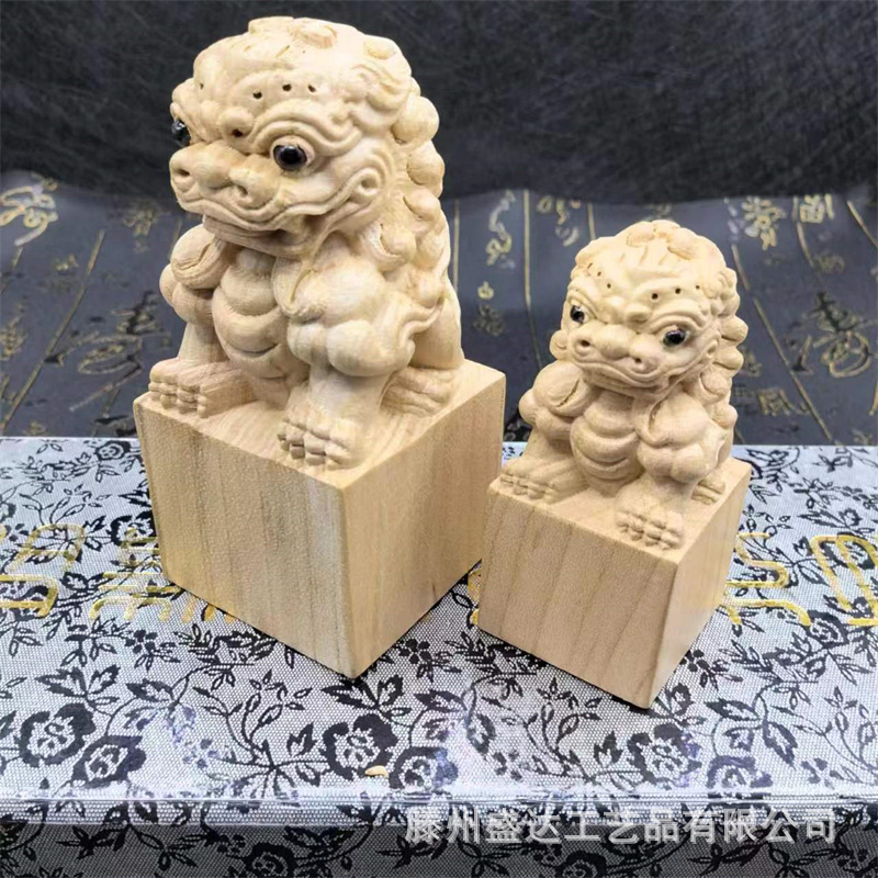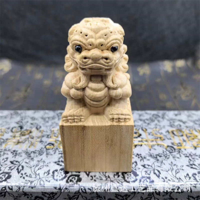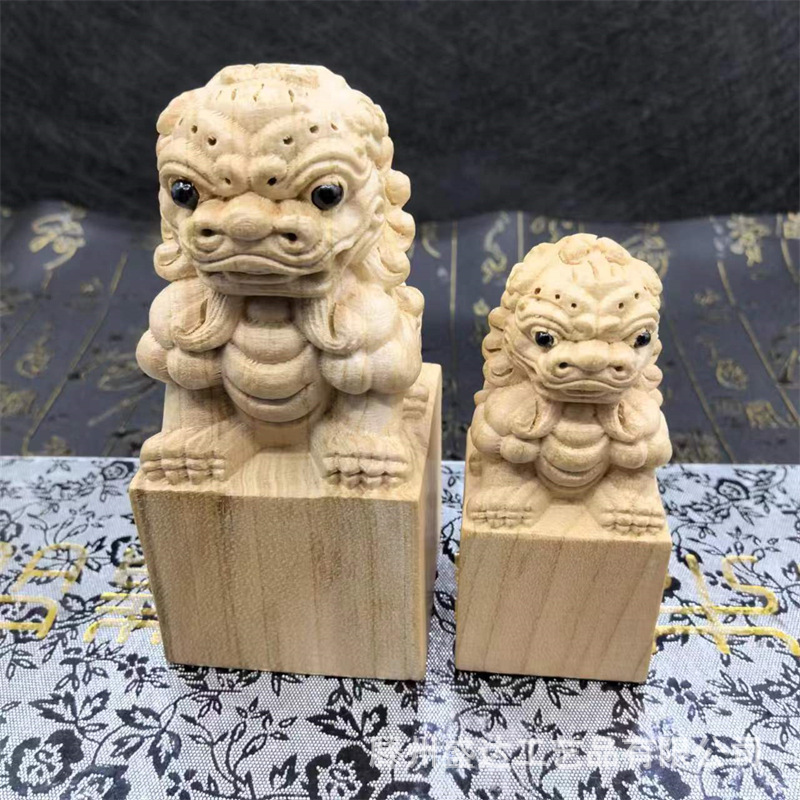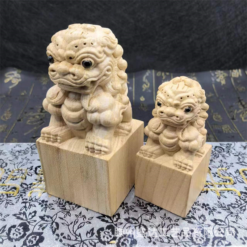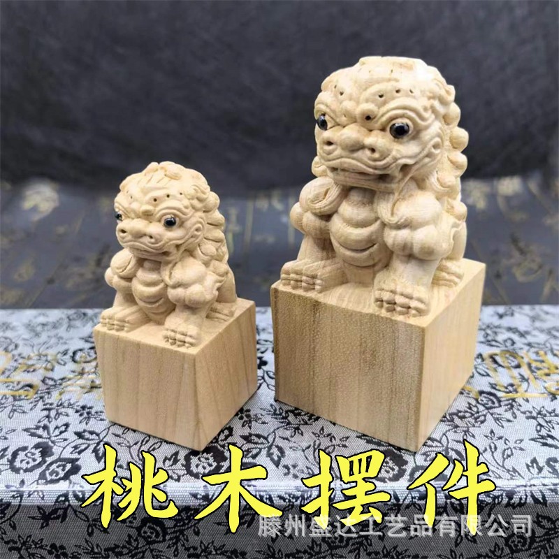 복숭아 나무 사자 물개 장식품 전체 나무 조각 홈 오피스 연구 장식품 로그 컬러 복숭아 나무 사자 물개스토어 가기