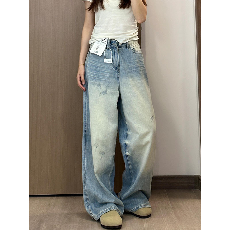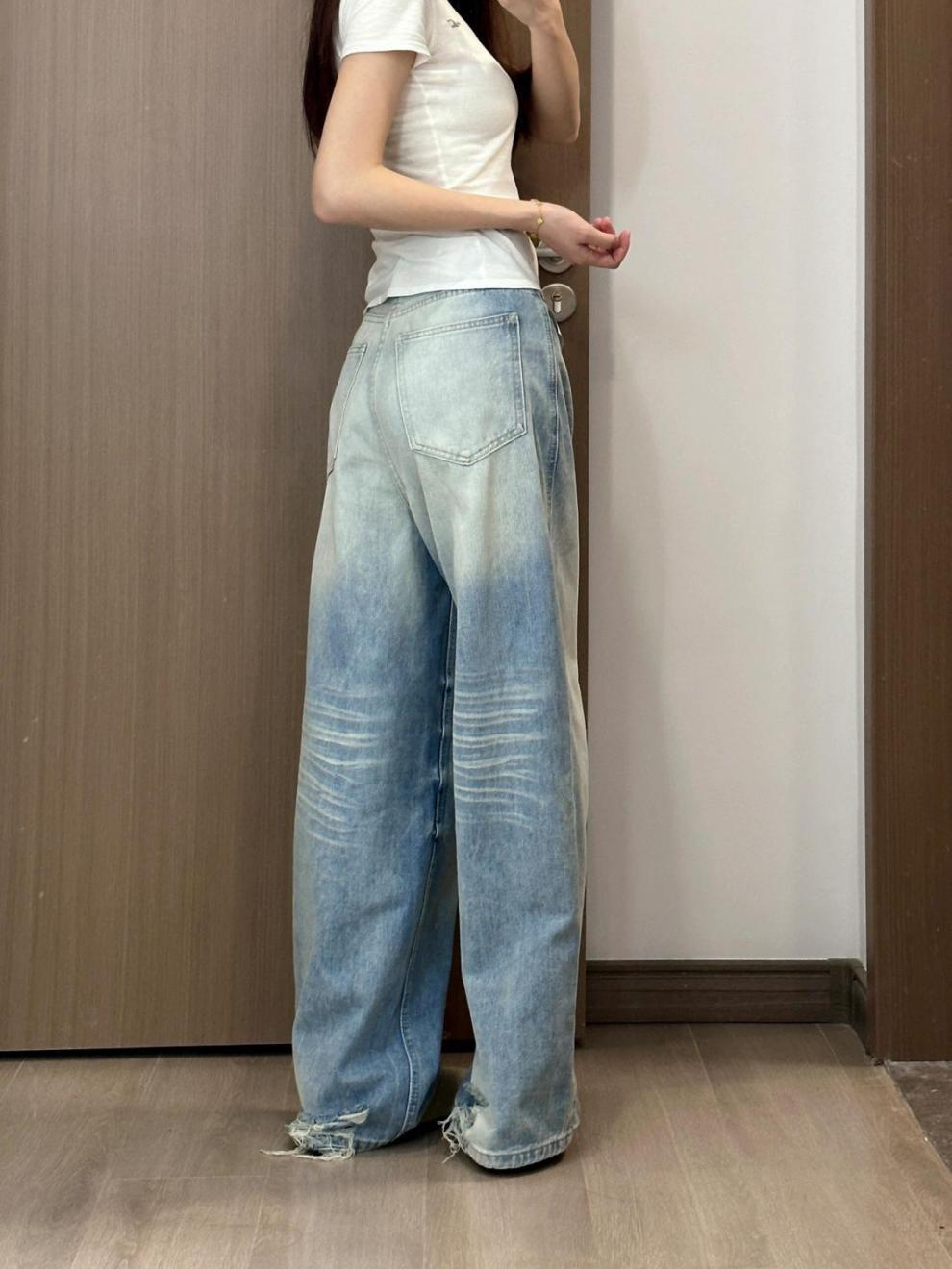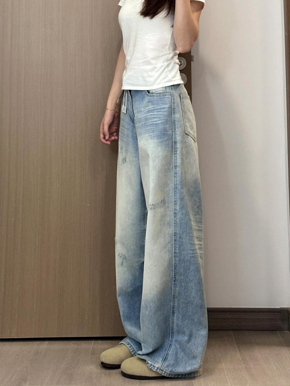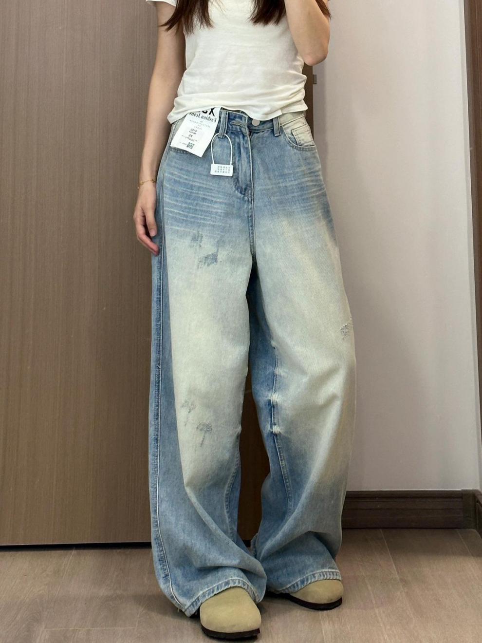 슬림핏 하이웨이스트 와이드 데님 팬츠 여성용, 배형 체형에 적합한 스트레이트 와이드 팬츠, 허리 라인을 가려주는 루즈핏, 작은 체형 여성용 바지스토어 가기