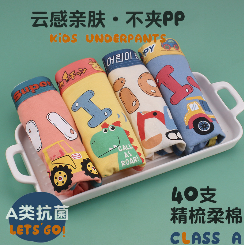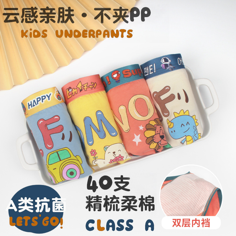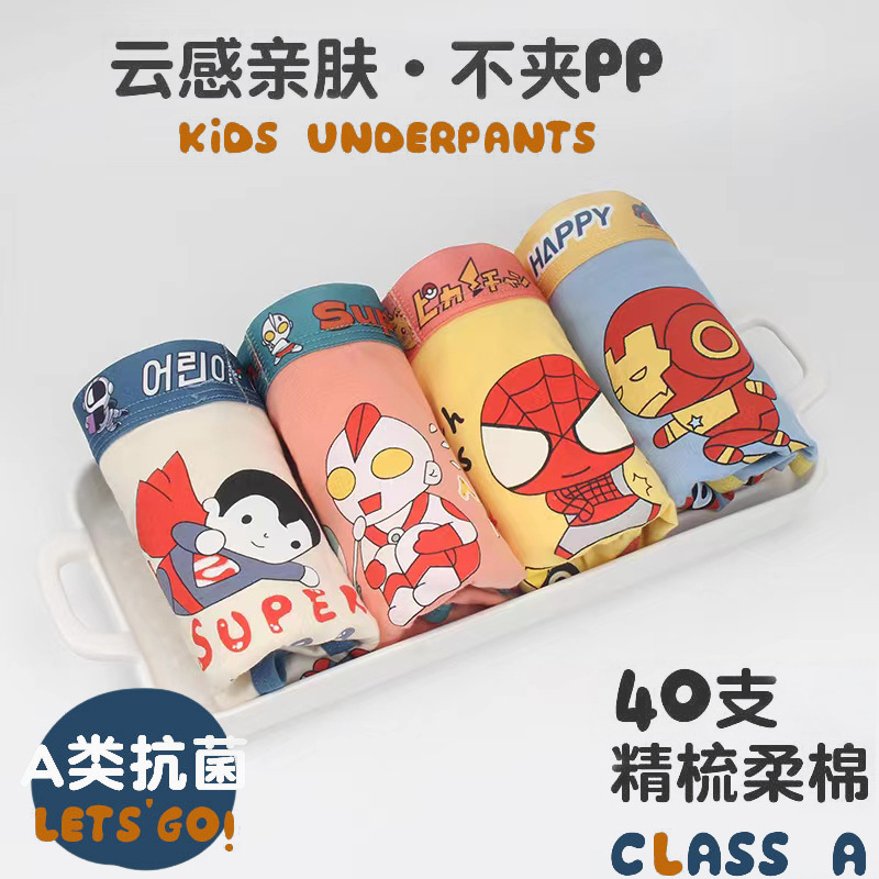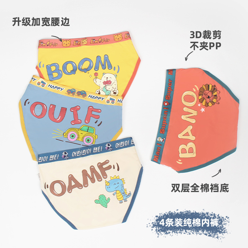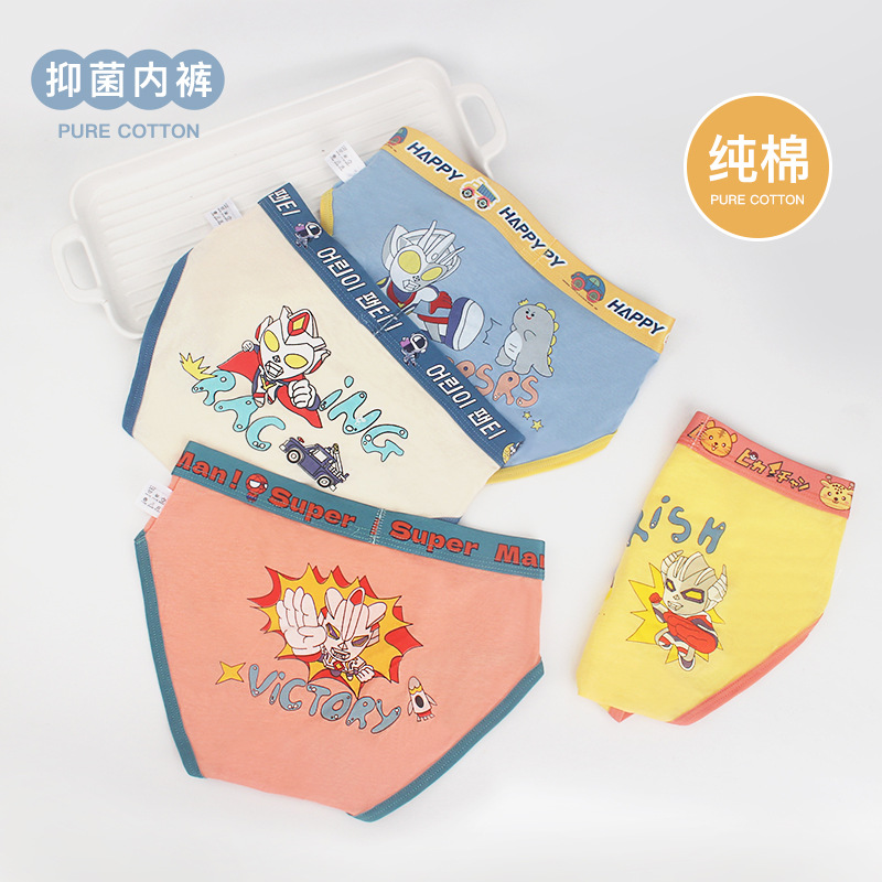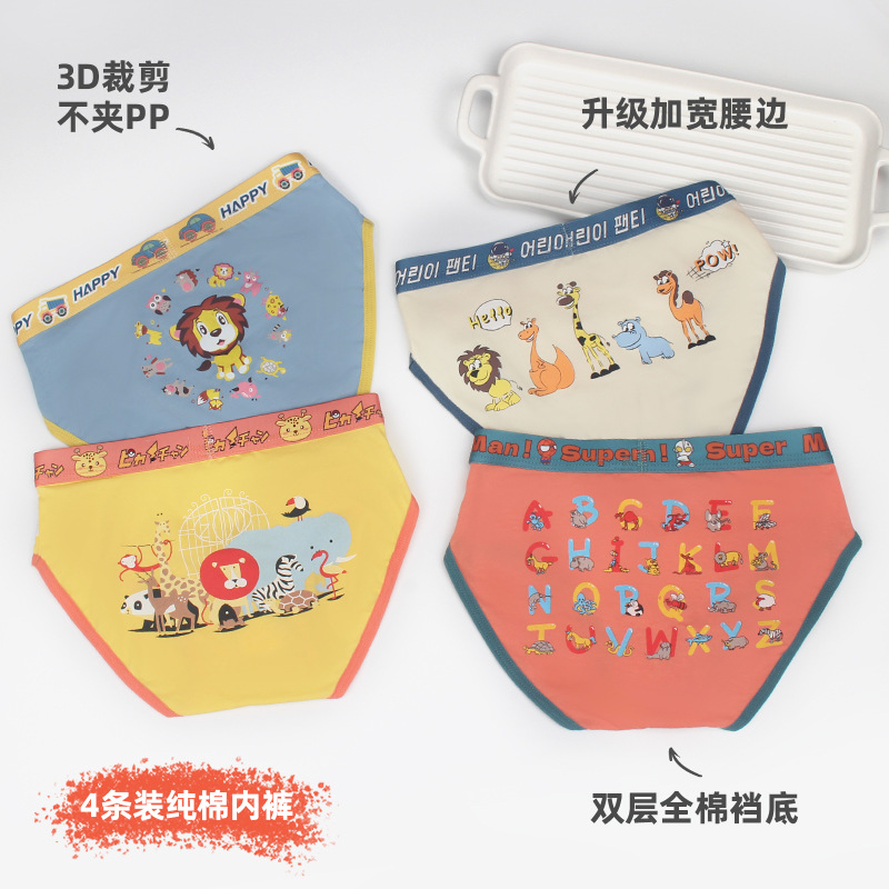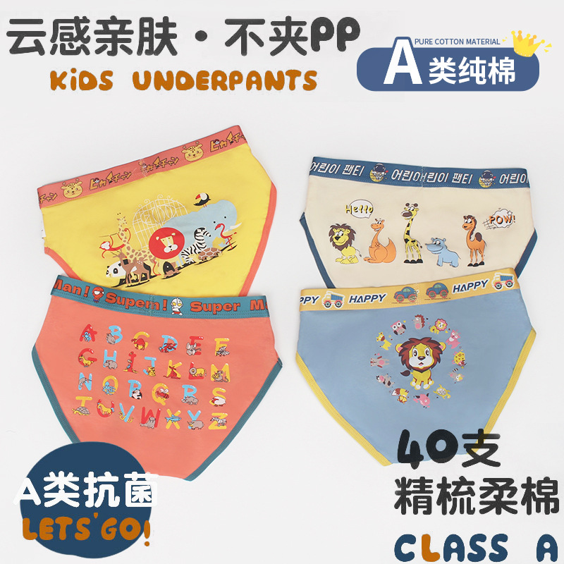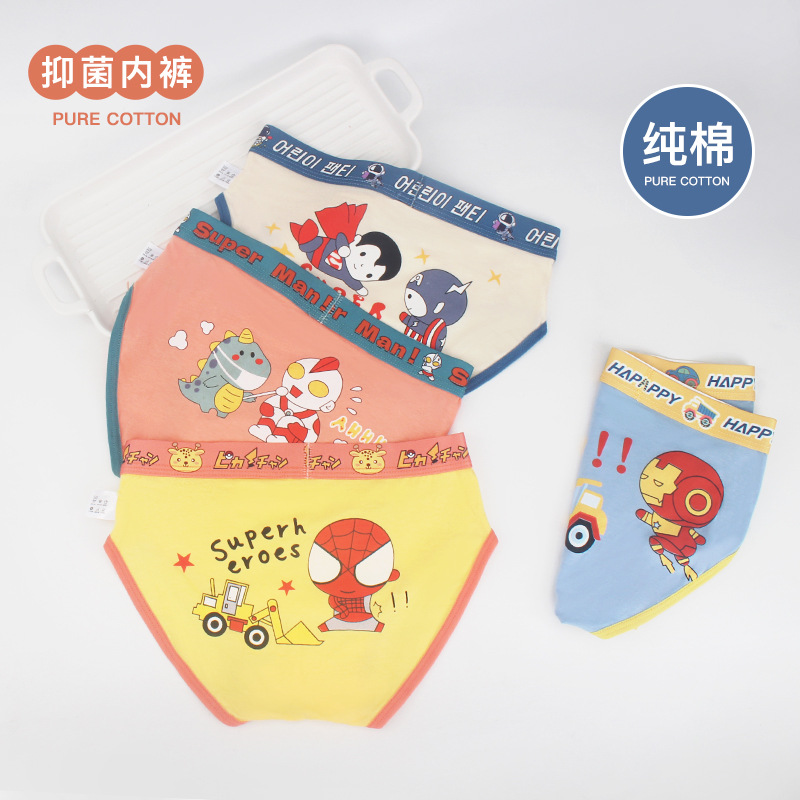 여름 얇은 순면 삼각형 어린이 속옷 머리 남자의 추적없는 통기성 유럽과 미국의 국경 순면 클래스 만화 작은 중년 어린이스토어 가기