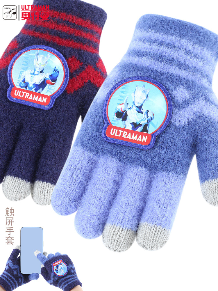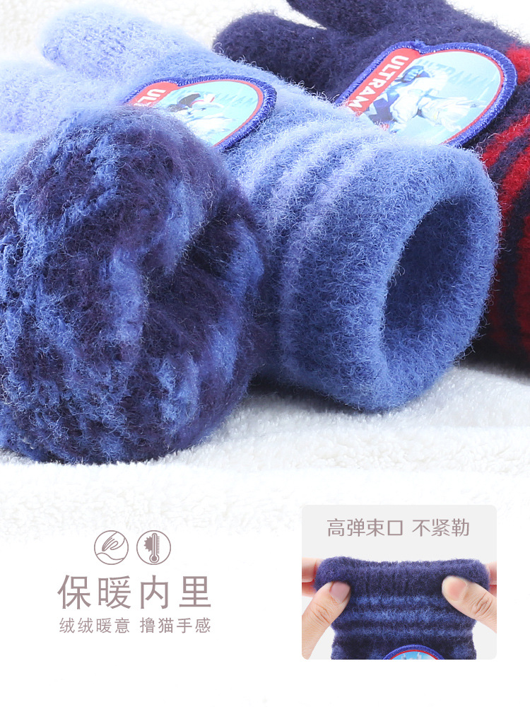 소년 소년을위한 어린이 장갑 겨울 따뜻한 니트 양모 두꺼운 5 손가락 니트 커버