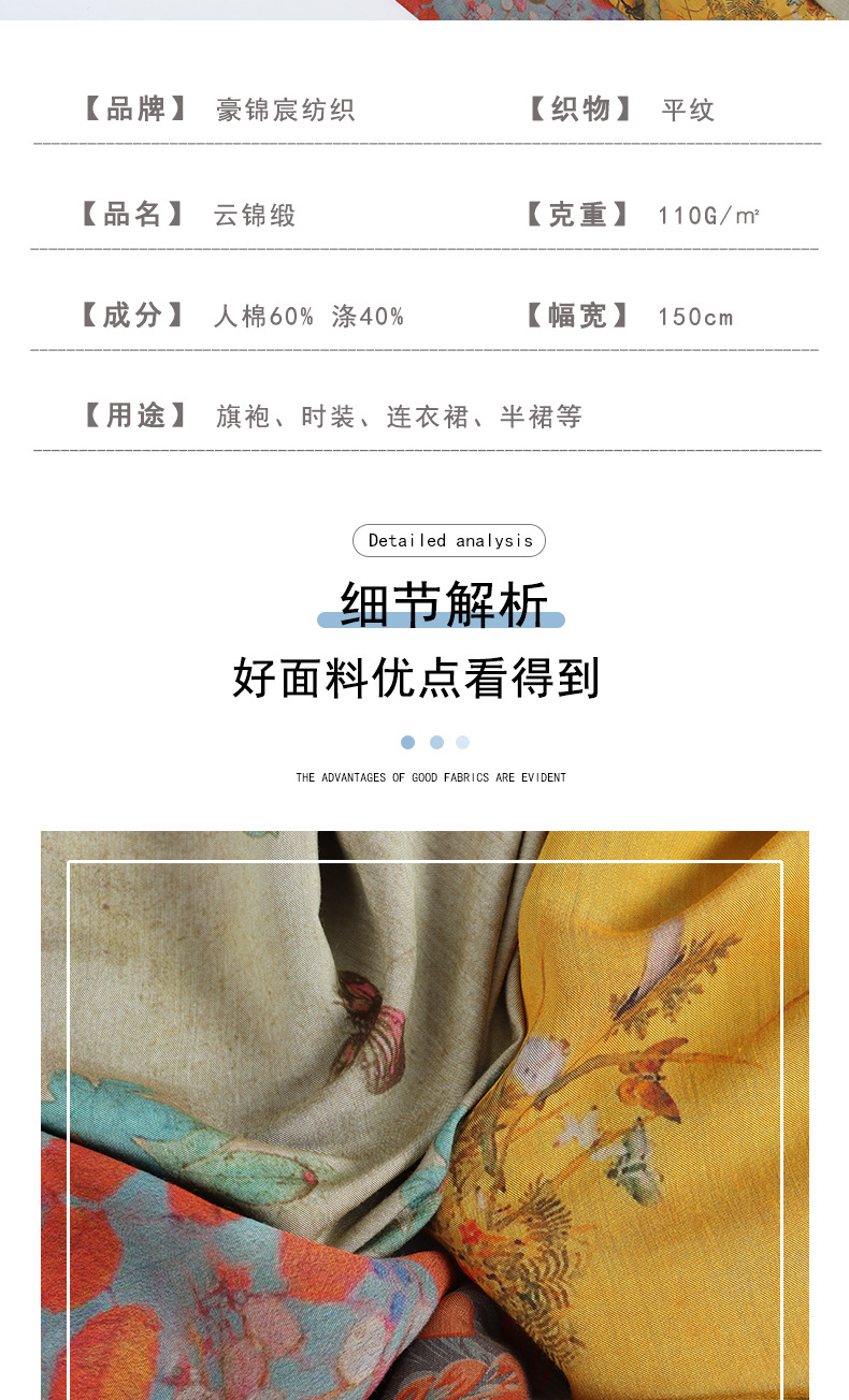 재고 구름 브로케이드 새로운 중국 사틴 인쇄 직물 청삼 셔츠 원피스 홈 섬유 직물스토어 가기