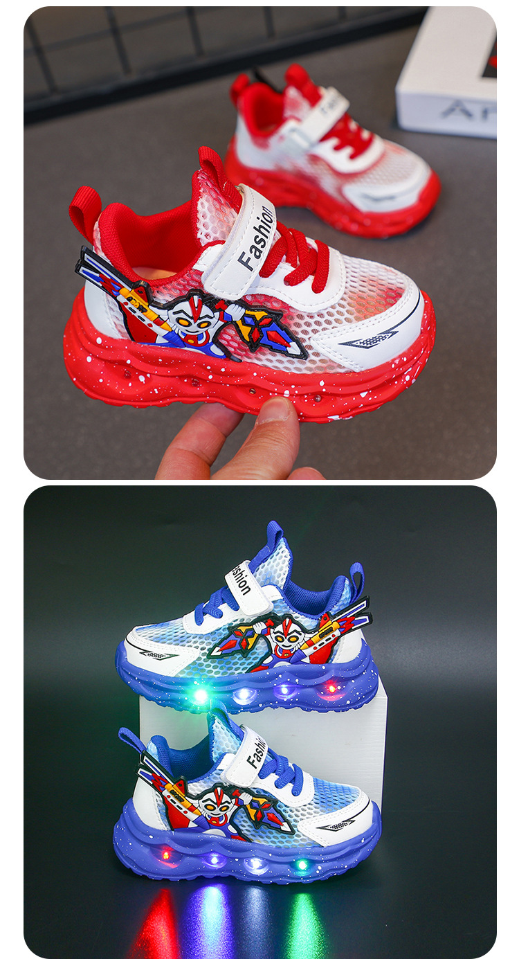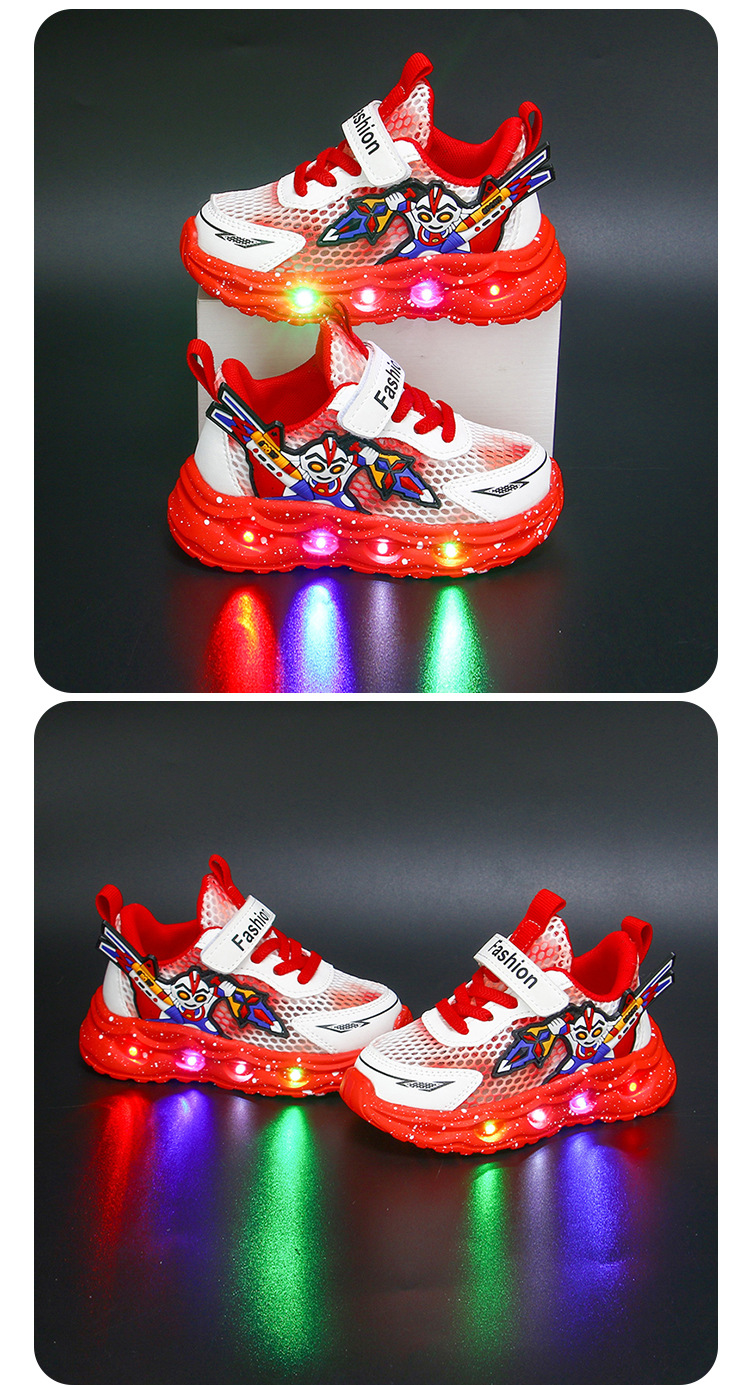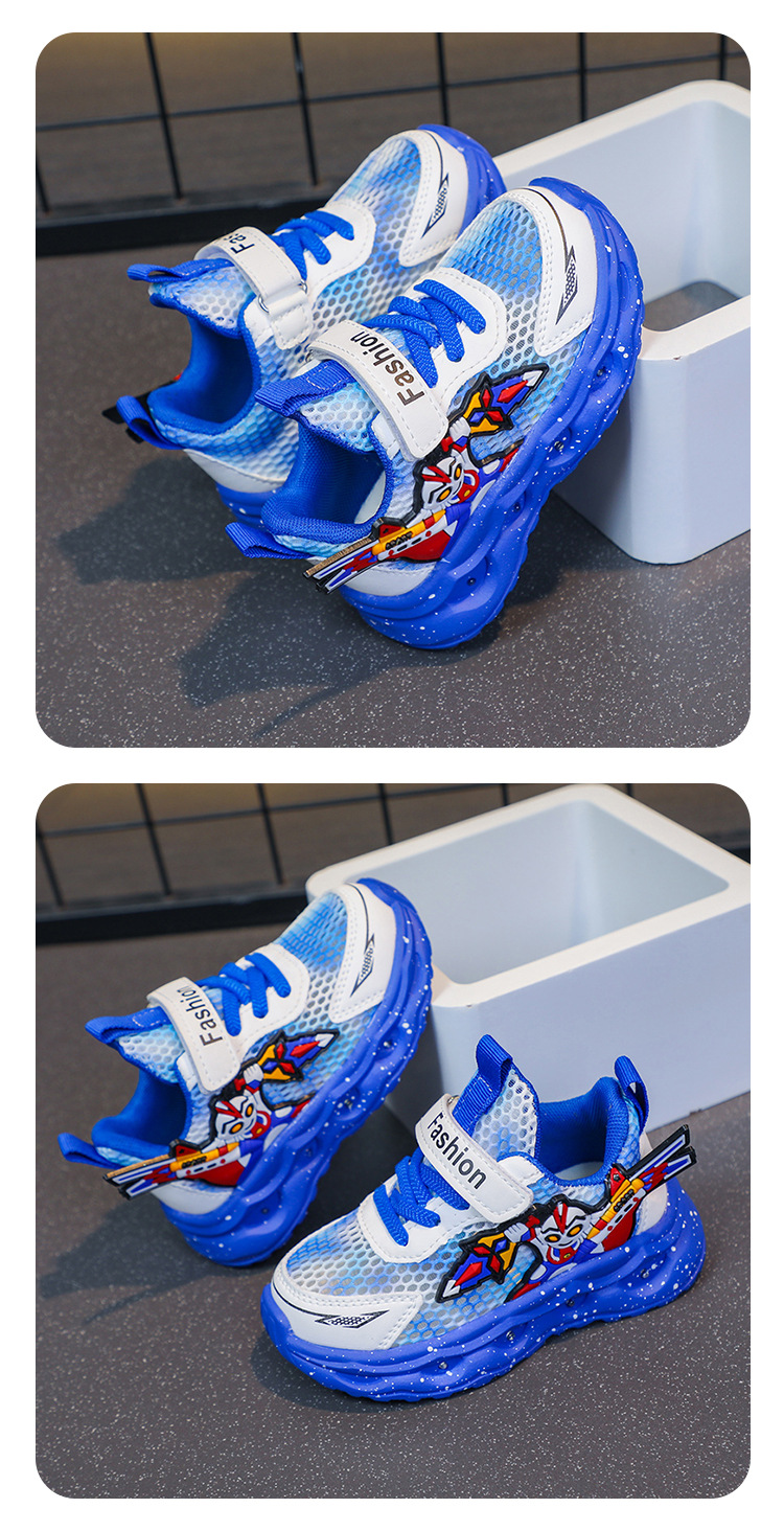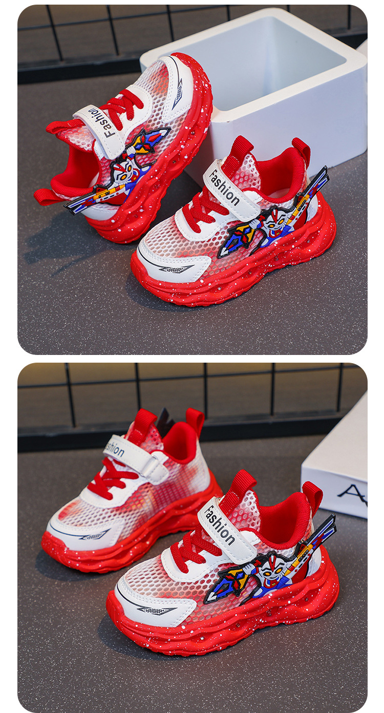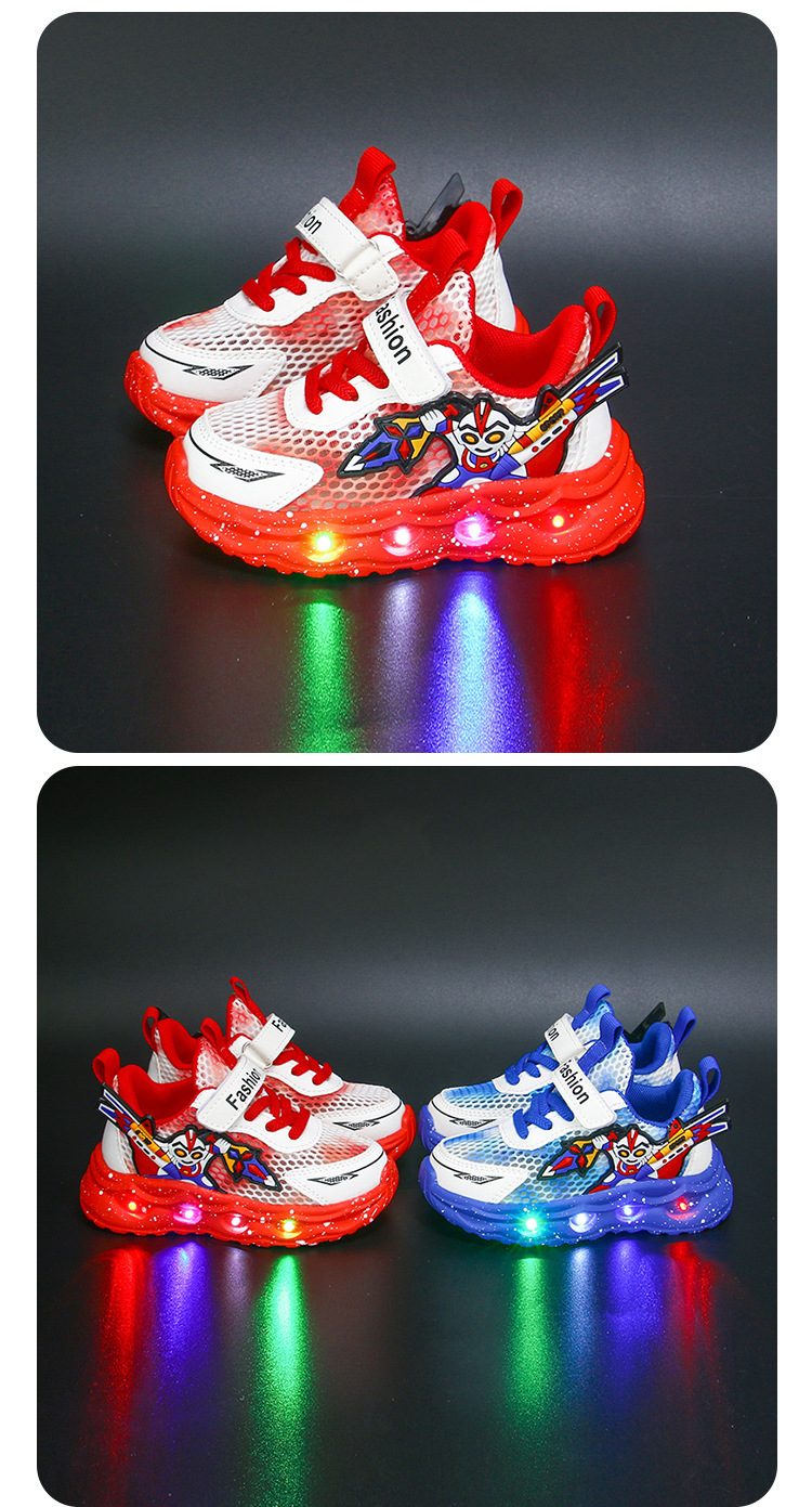 어린이를위한 빛이있는 만화 스포츠 신발 여름 새 아기 통기성 중공 메쉬 소년 캐주얼 어린이 신발 도매