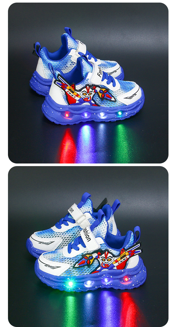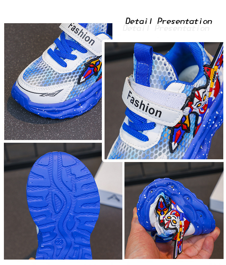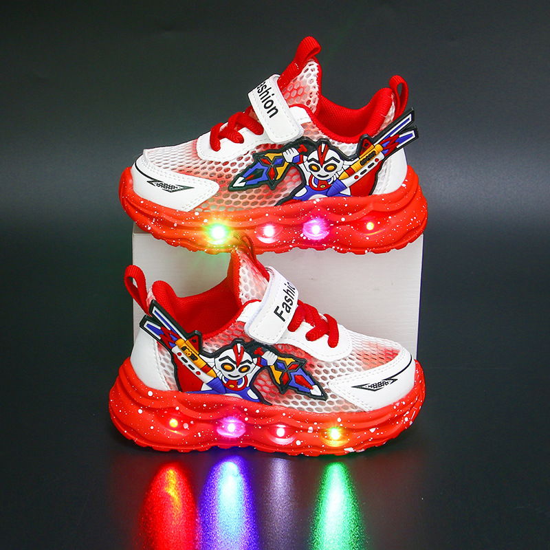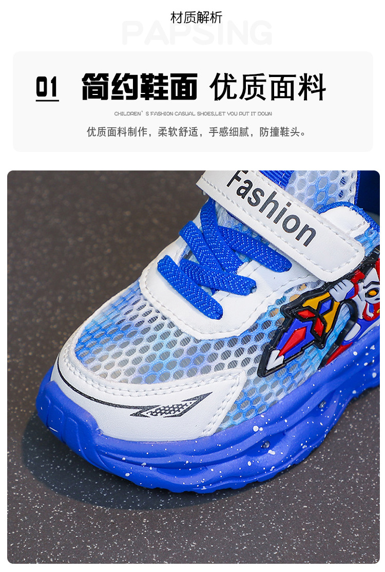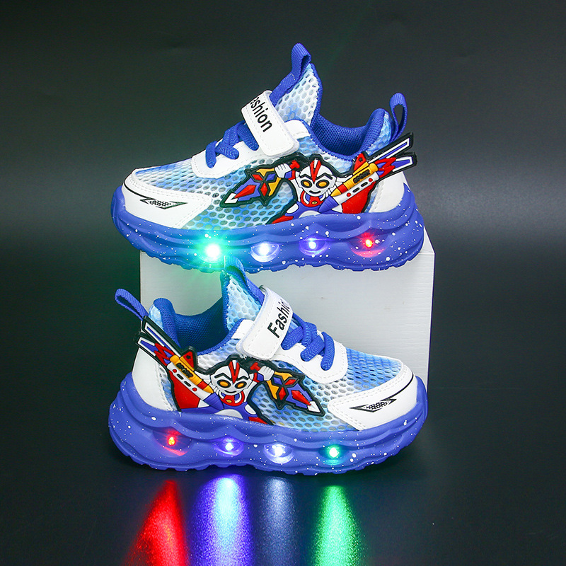 어린이를위한 빛이있는 만화 스포츠 신발 여름 새 아기 통기성 중공 메쉬 소년 캐주얼 어린이 신발 도매