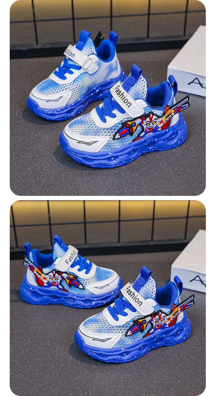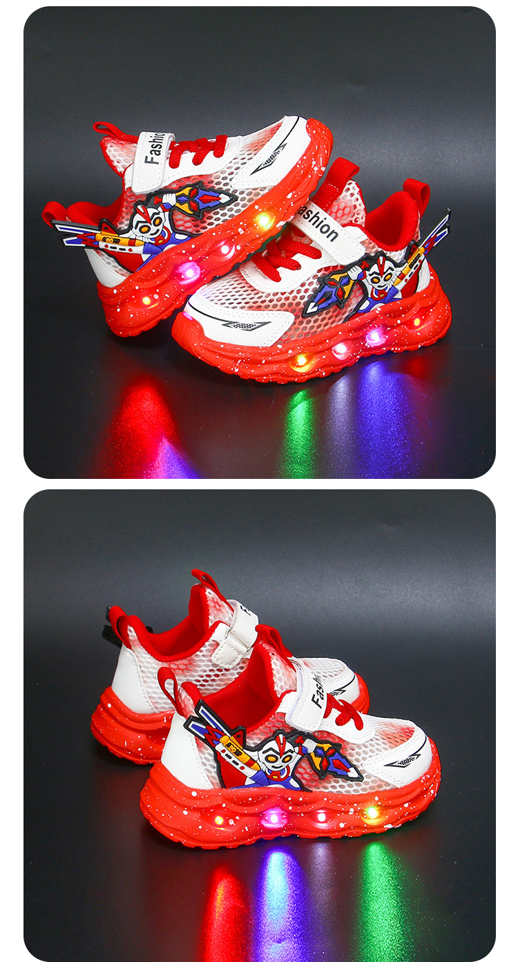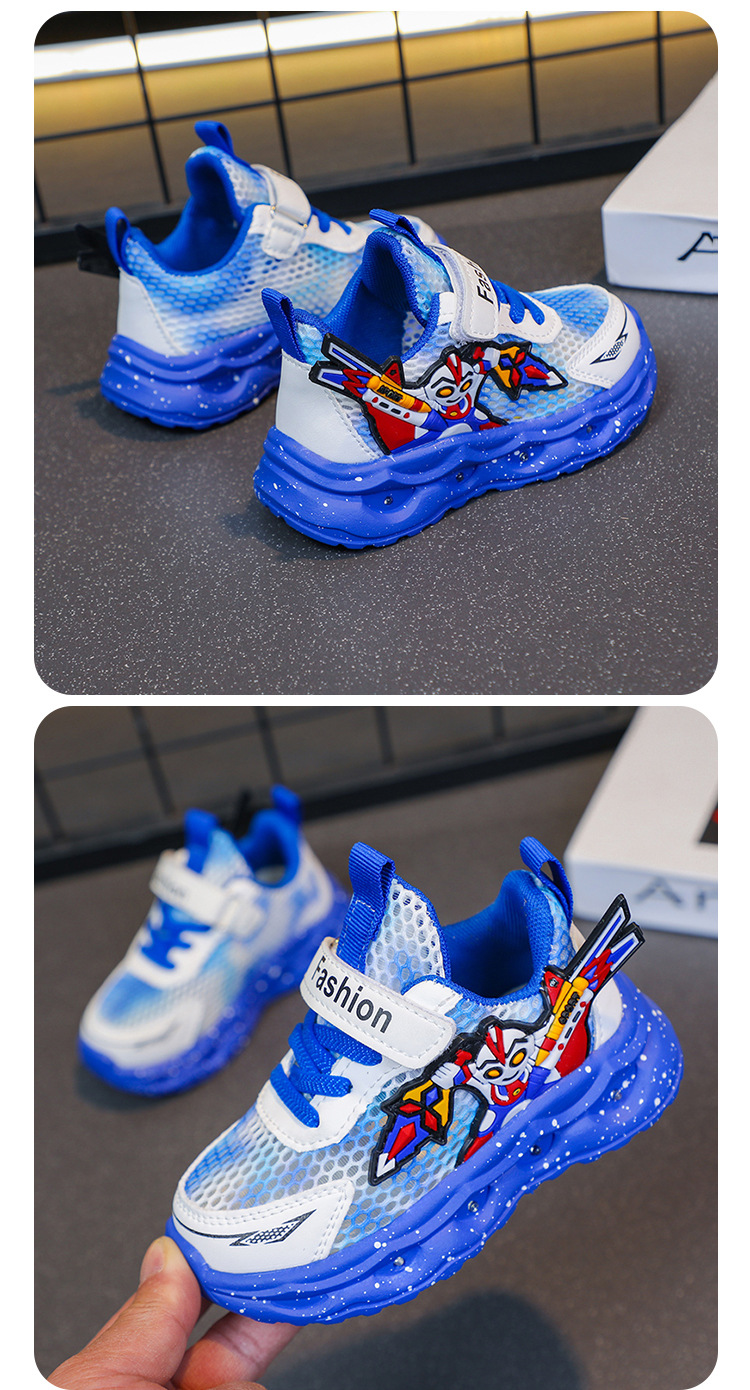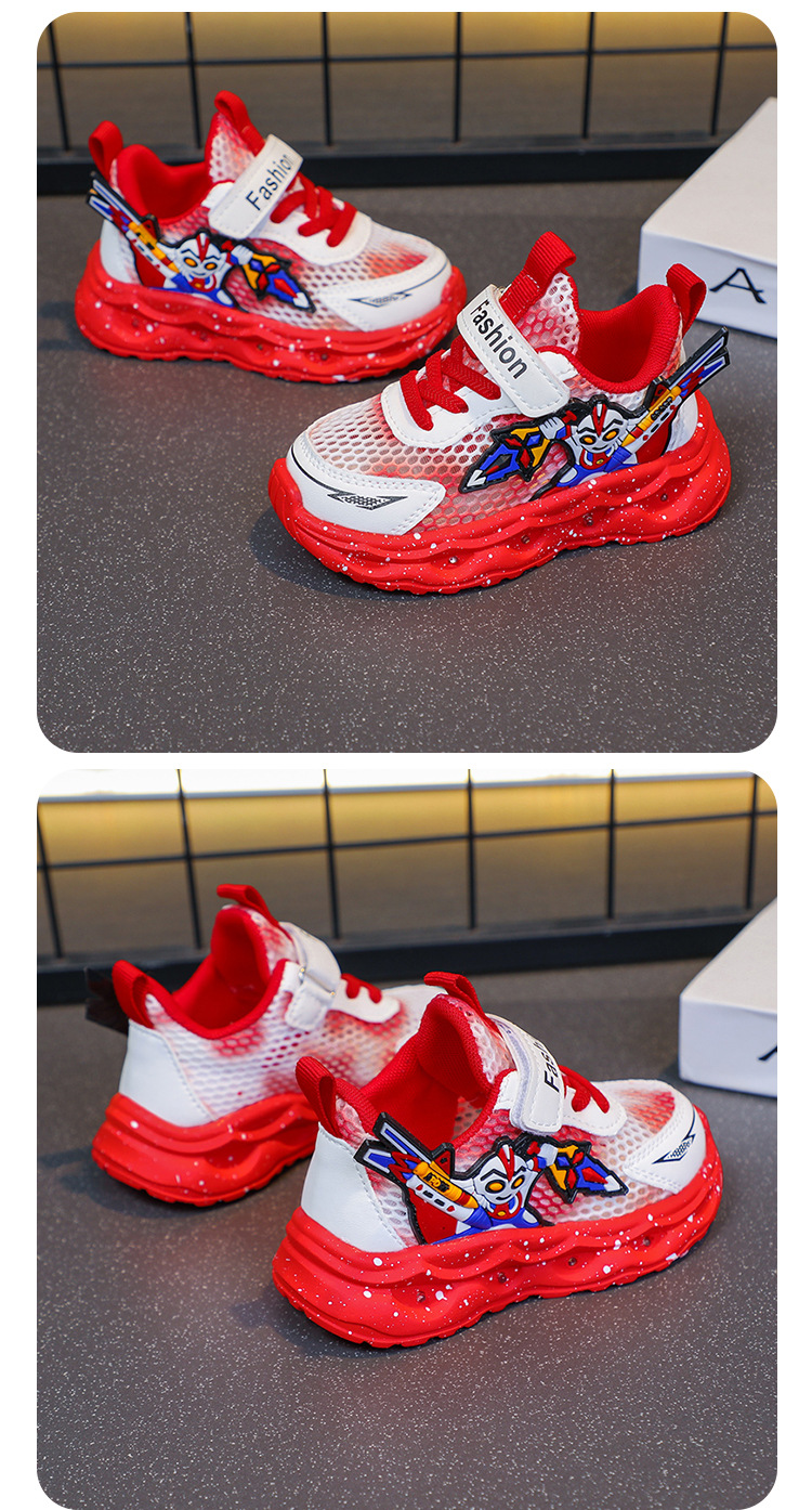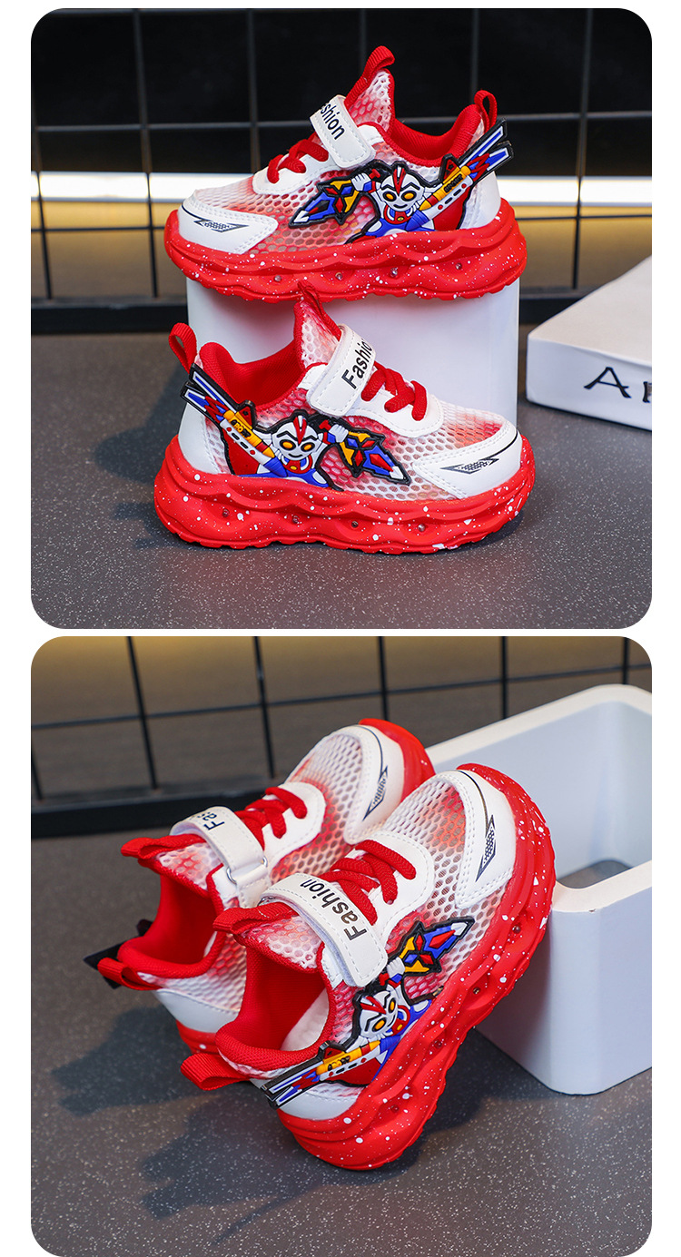 어린이를위한 빛이있는 만화 스포츠 신발 여름 새 아기 통기성 중공 메쉬 소년 캐주얼 어린이 신발 도매