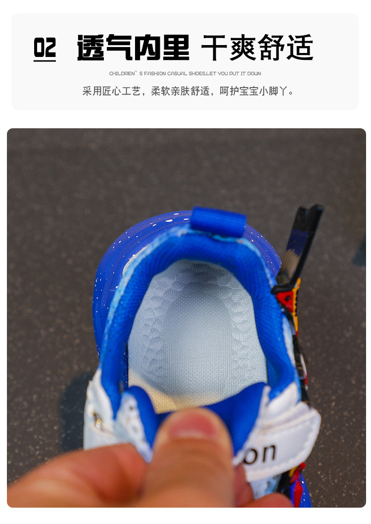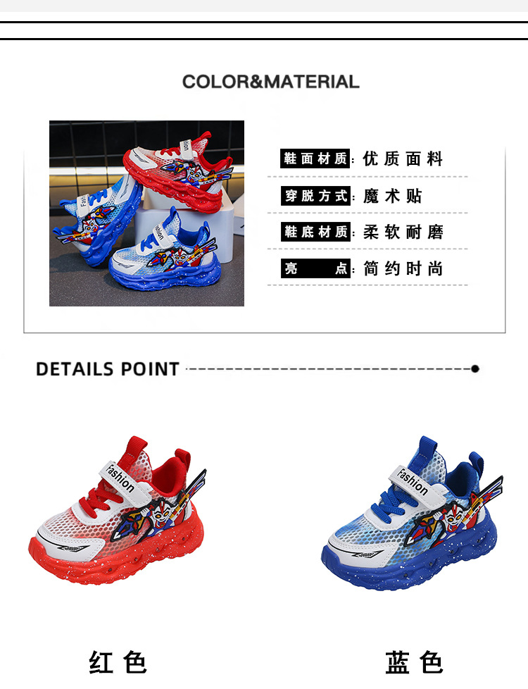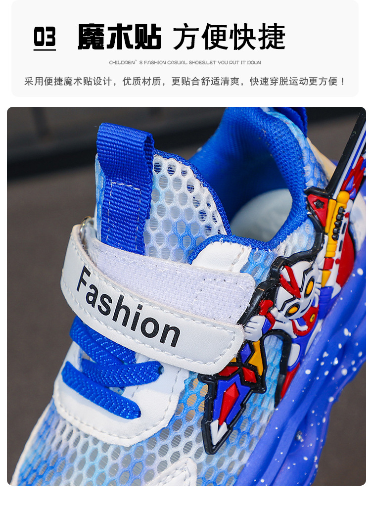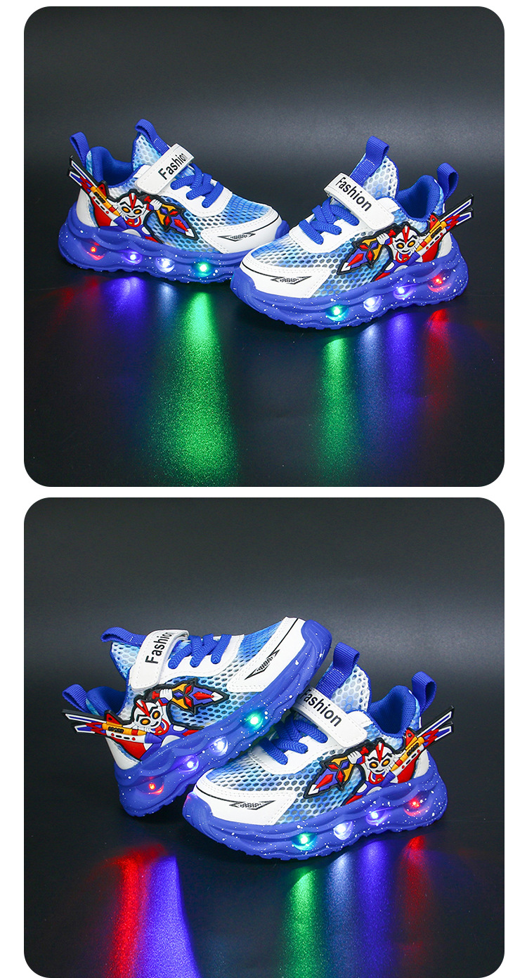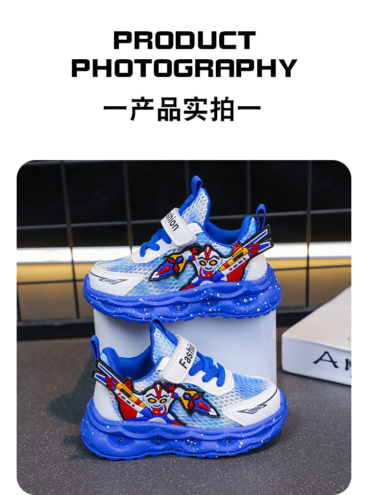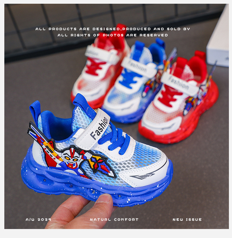어린이를위한 빛이있는 만화 스포츠 신발 여름 새 아기 통기성 중공 메쉬 소년 캐주얼 어린이 신발 도매