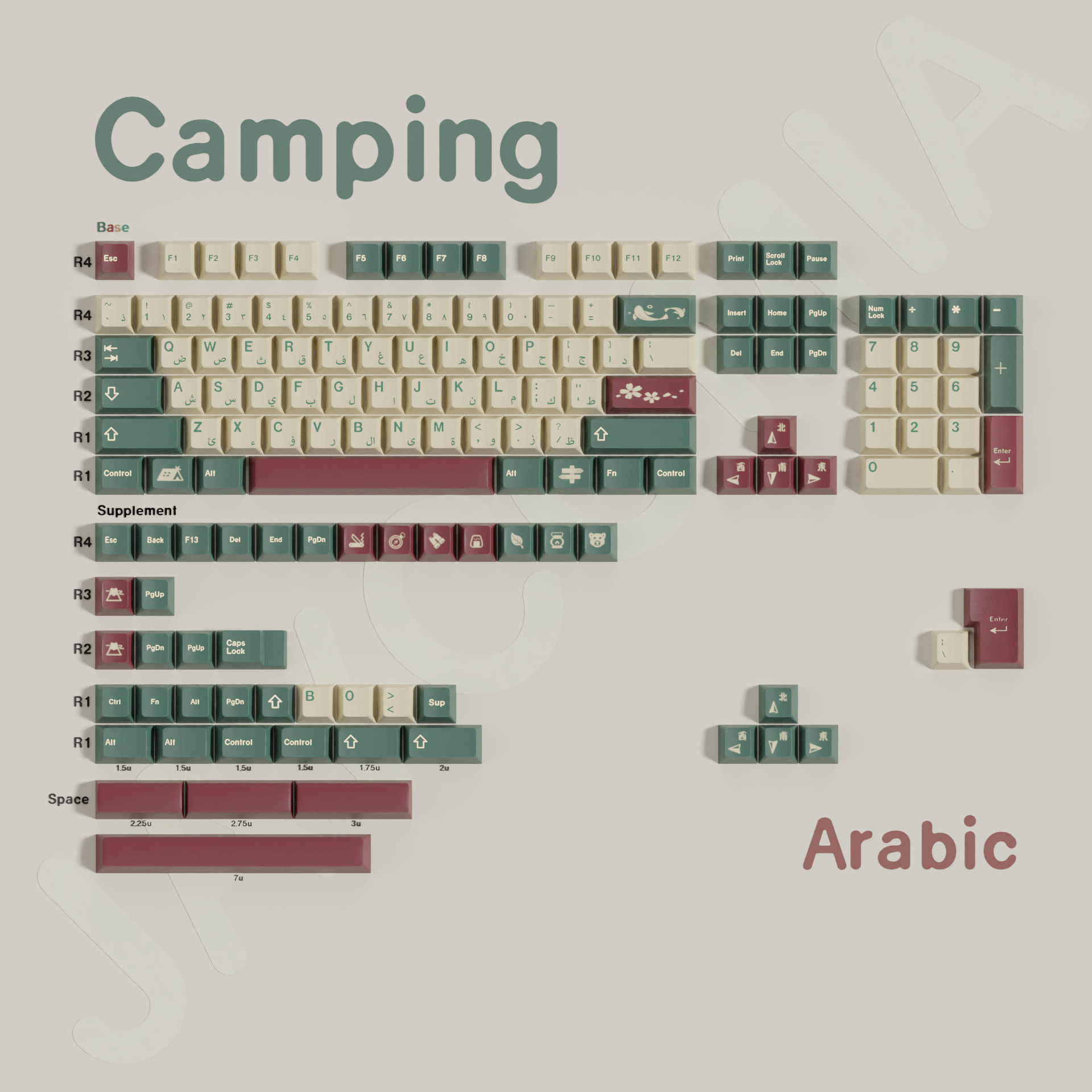 원래 PBT 승화 키 캡 캠핑 아랍어 독일어 프랑스어 스페인어 브라질 러시아어 작은 언어