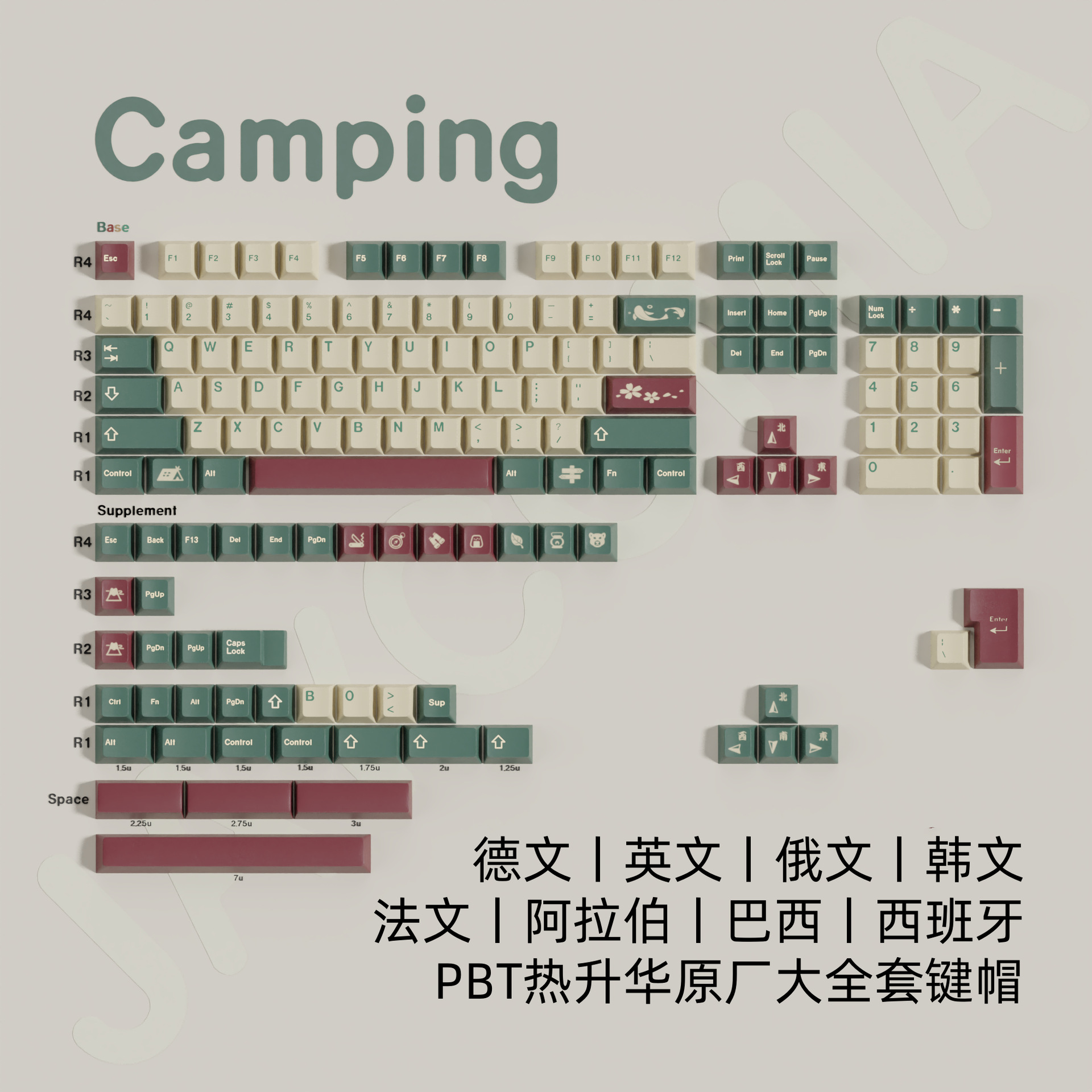 원래 PBT 승화 키 캡 캠핑 아랍어 독일어 프랑스어 스페인어 브라질 러시아어 작은 언어스토어 가기