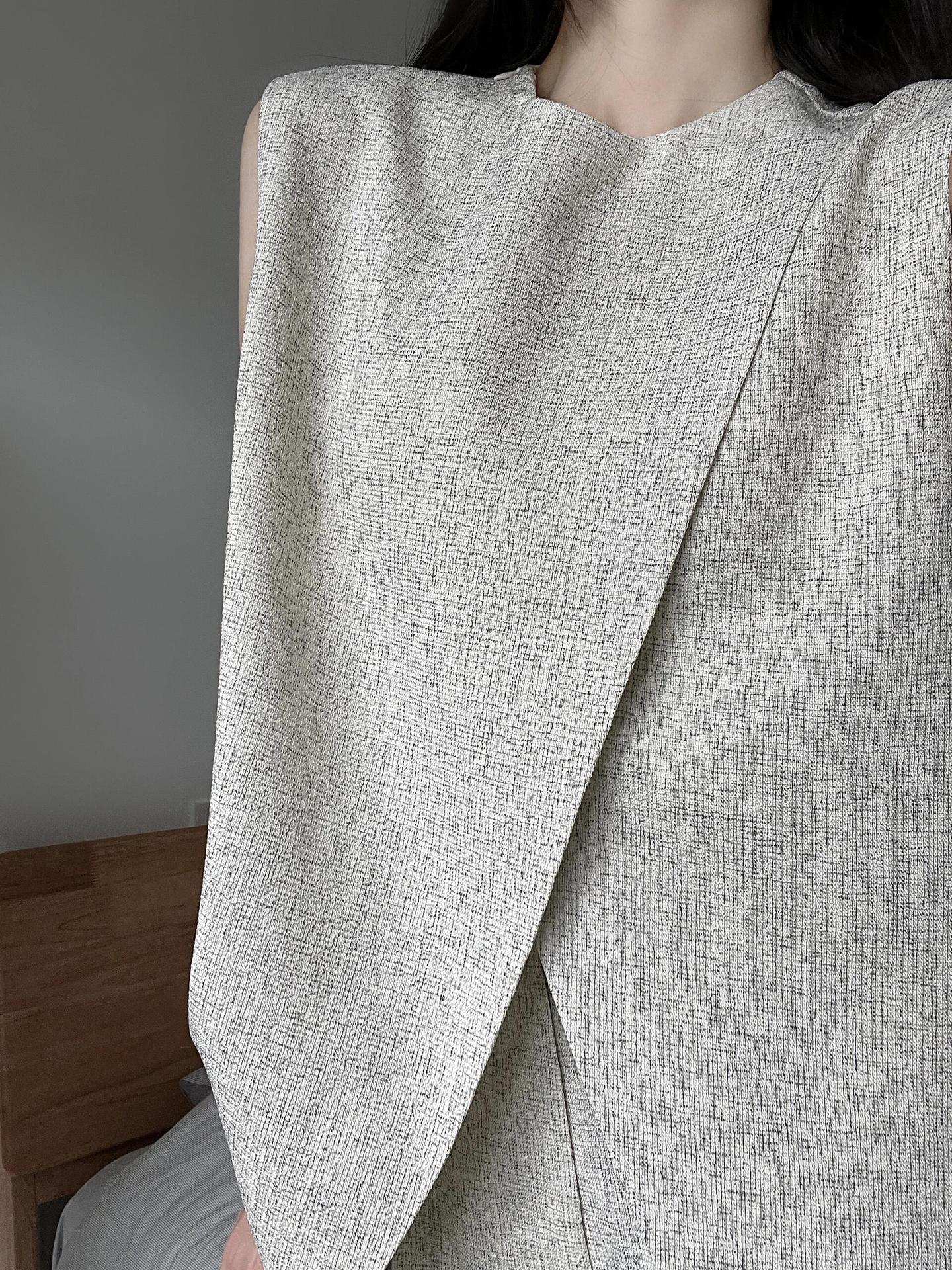 샤넬 스타일 둥근 목 민소매 분할 조끼 여성 여름 세트 느슨한 넓은 다리 바지 캐주얼 바지 투피스 세트