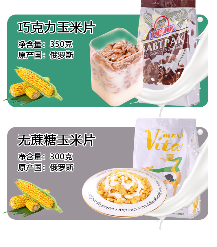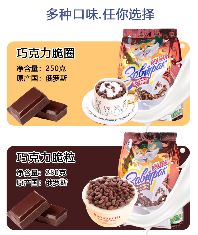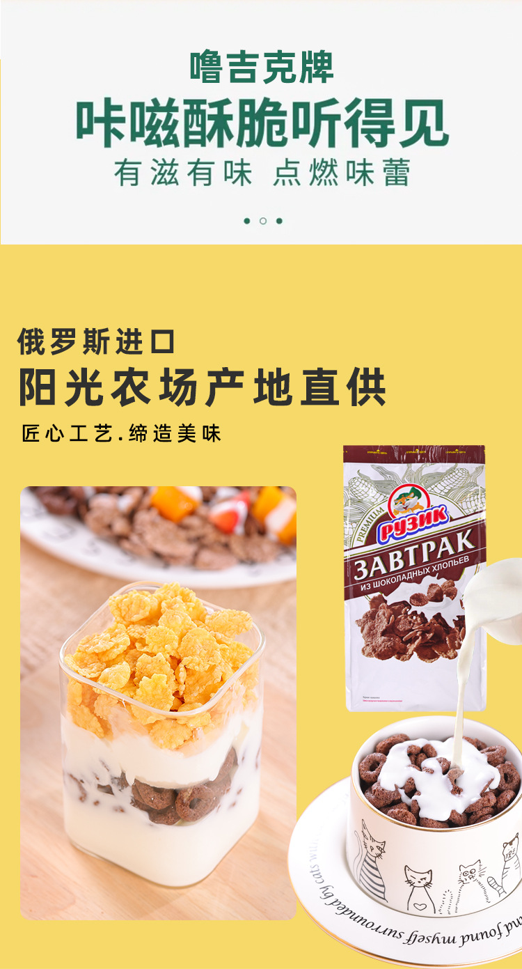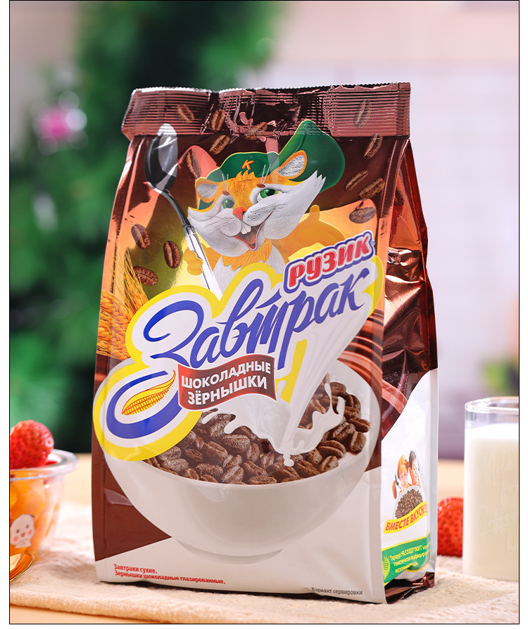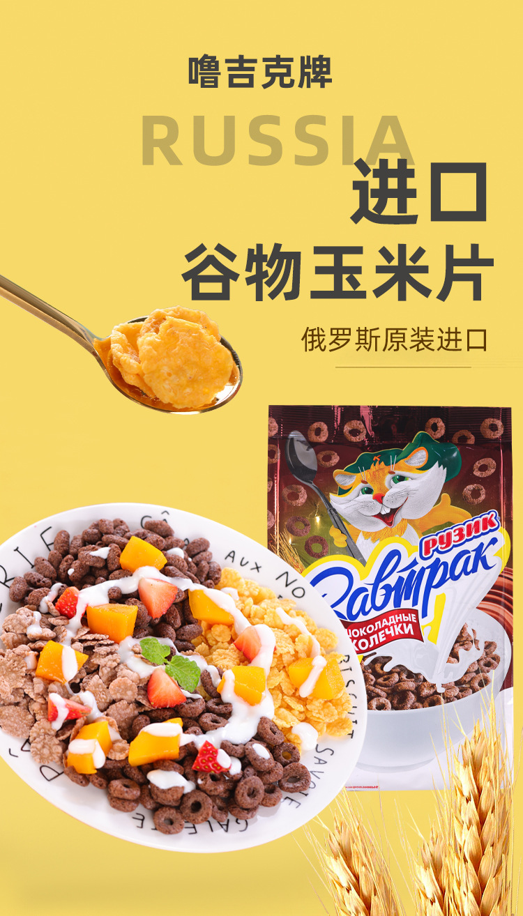 러시아 수입 루지크 옥수수 플레이크 시리얼 시리얼 볼 다차원 다철 초콜릿 링 식사 대체 아침 식사 250g