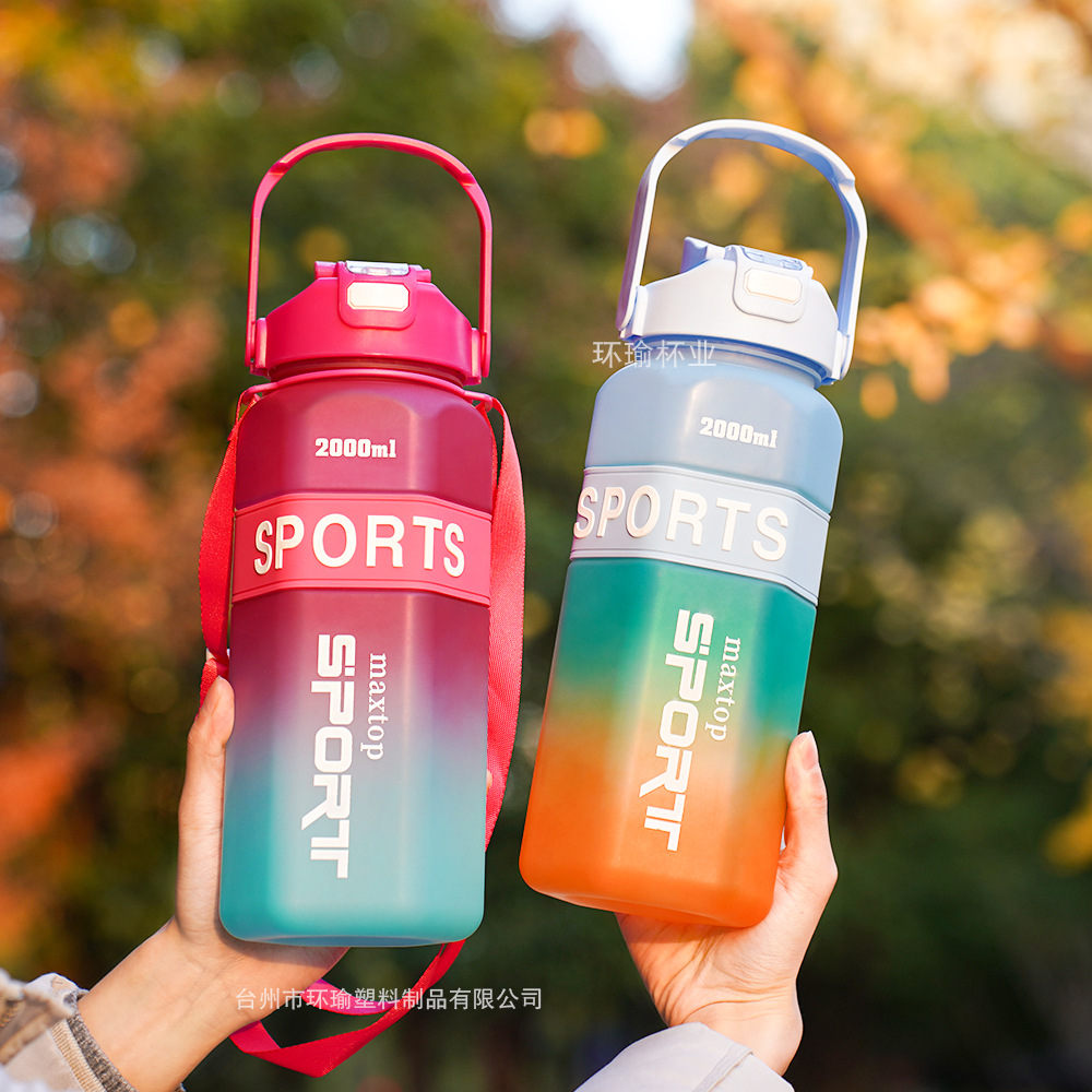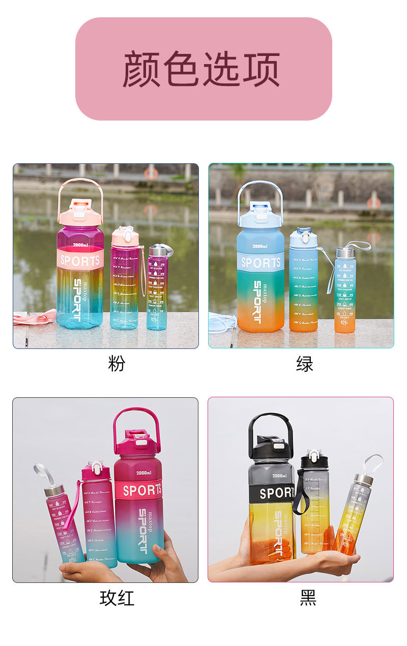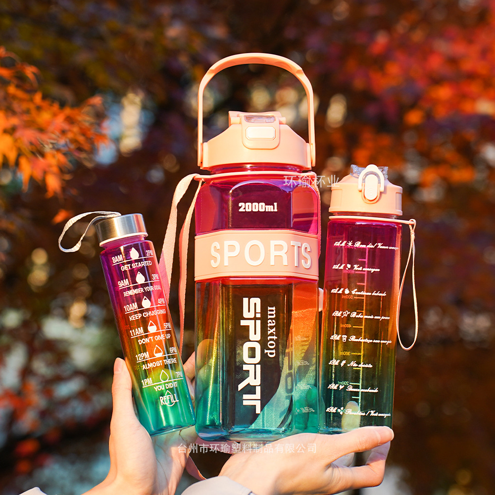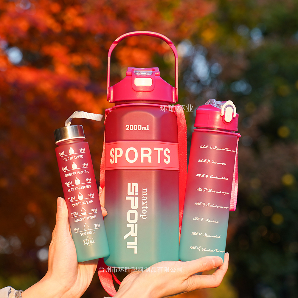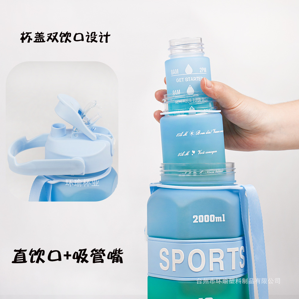 국경 육각형 3 세트 컵 대용량 스포츠 그라디언트 주전자 휴대용 두 배 마시는 컵 물병스토어 가기