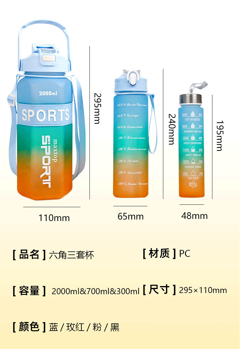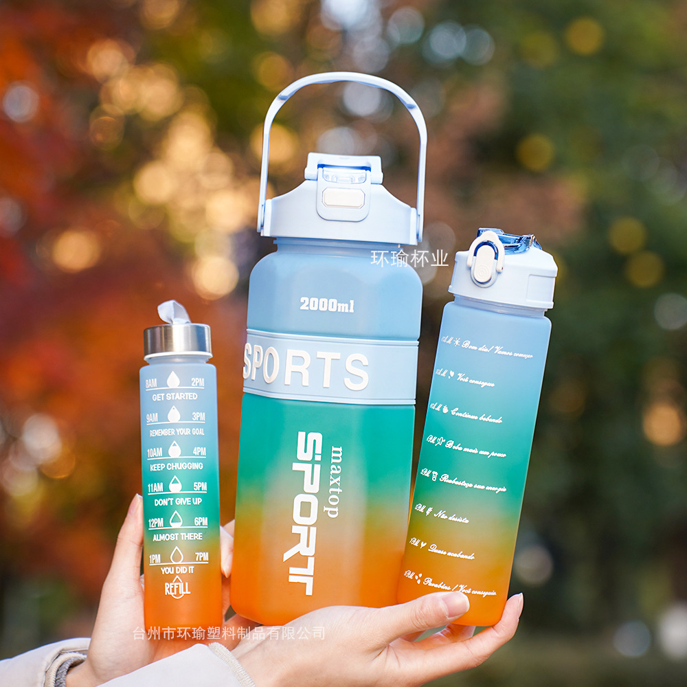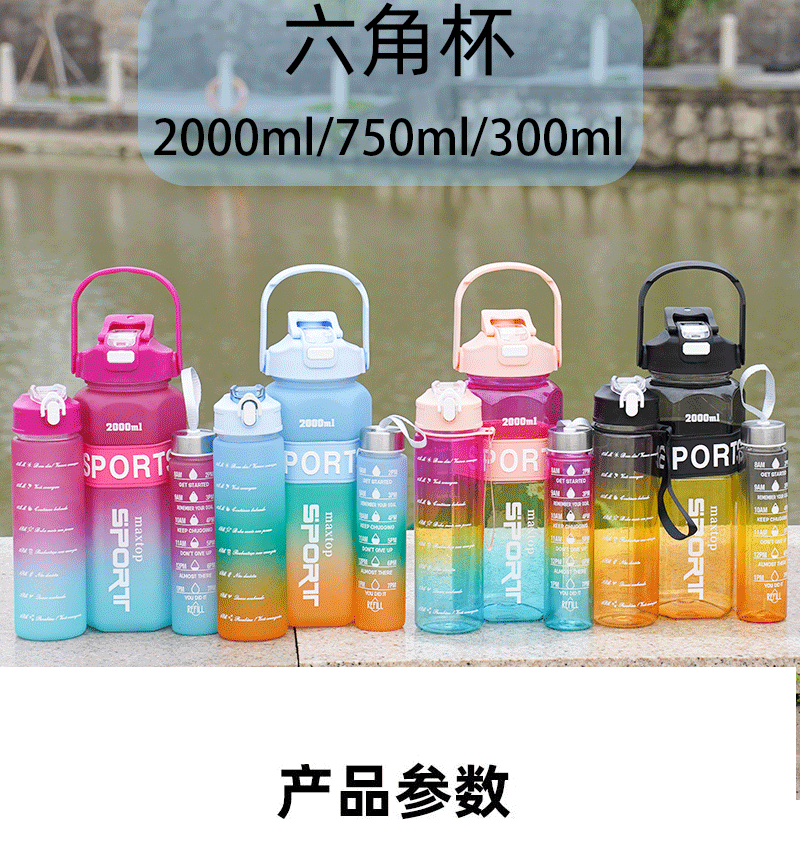 국경 육각형 3 세트 컵 대용량 스포츠 그라디언트 주전자 휴대용 두 배 마시는 컵 물병