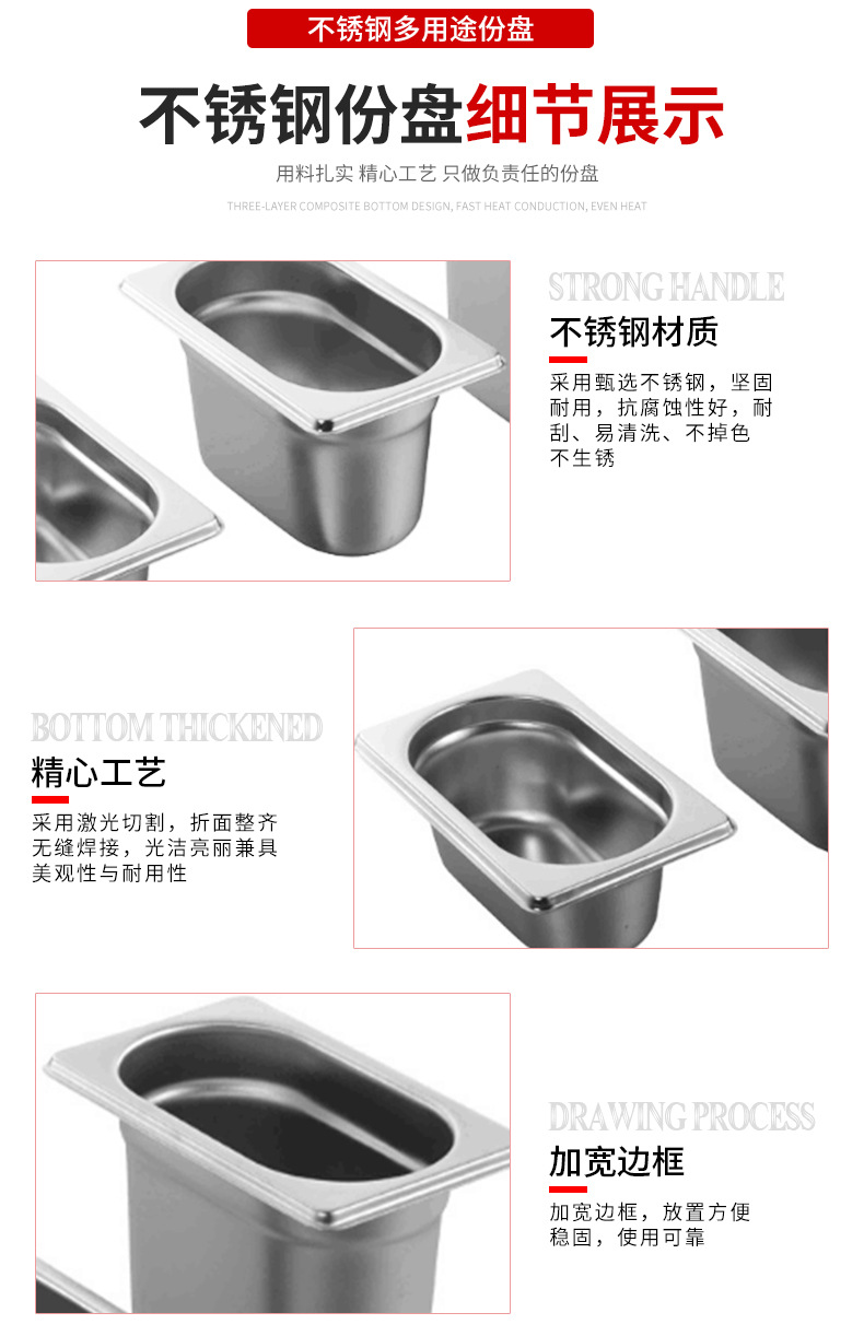 유럽식 304 스테인리스 사각형 접시 GN 접시 뷔페용 식기스토어 가기