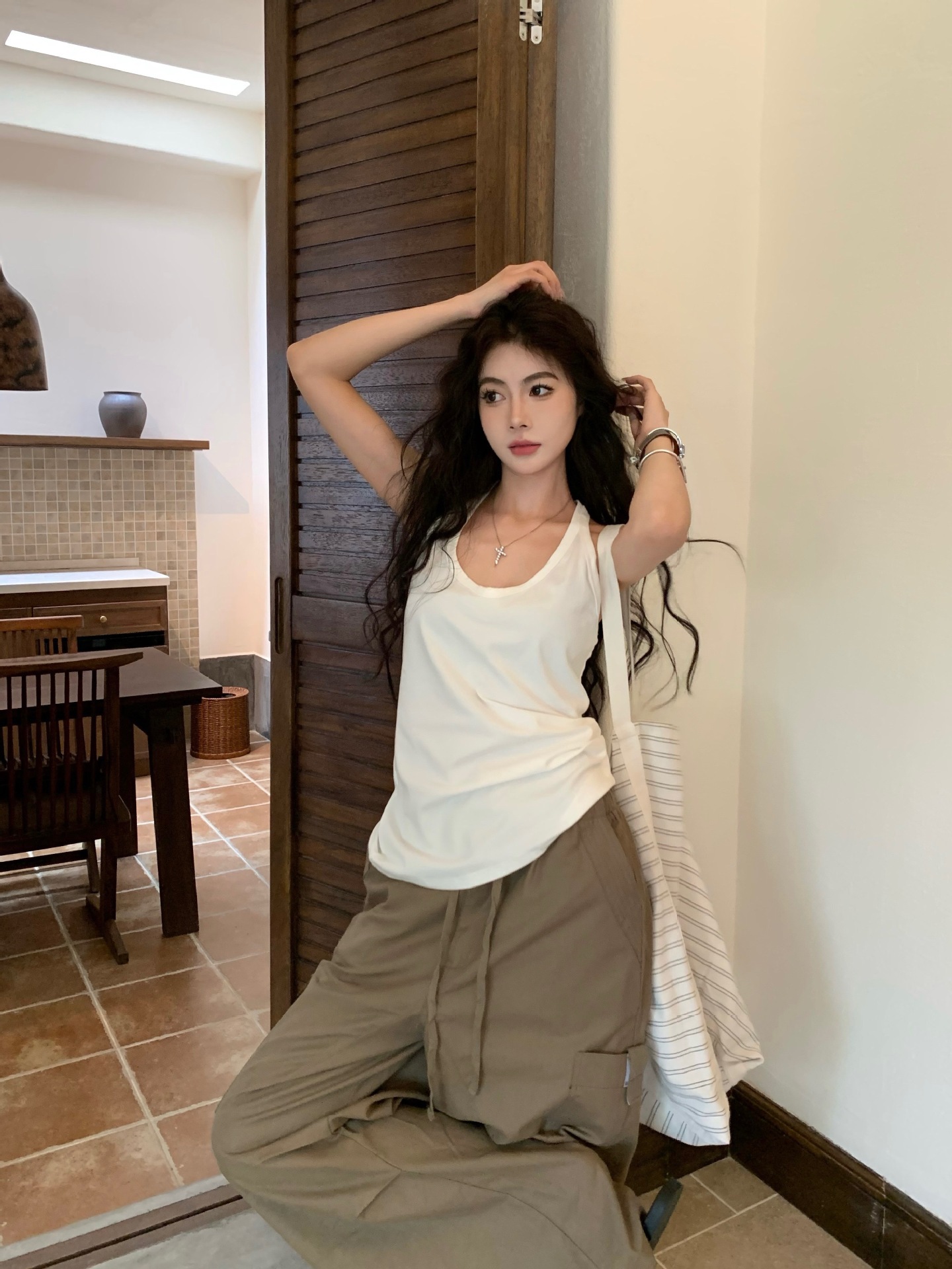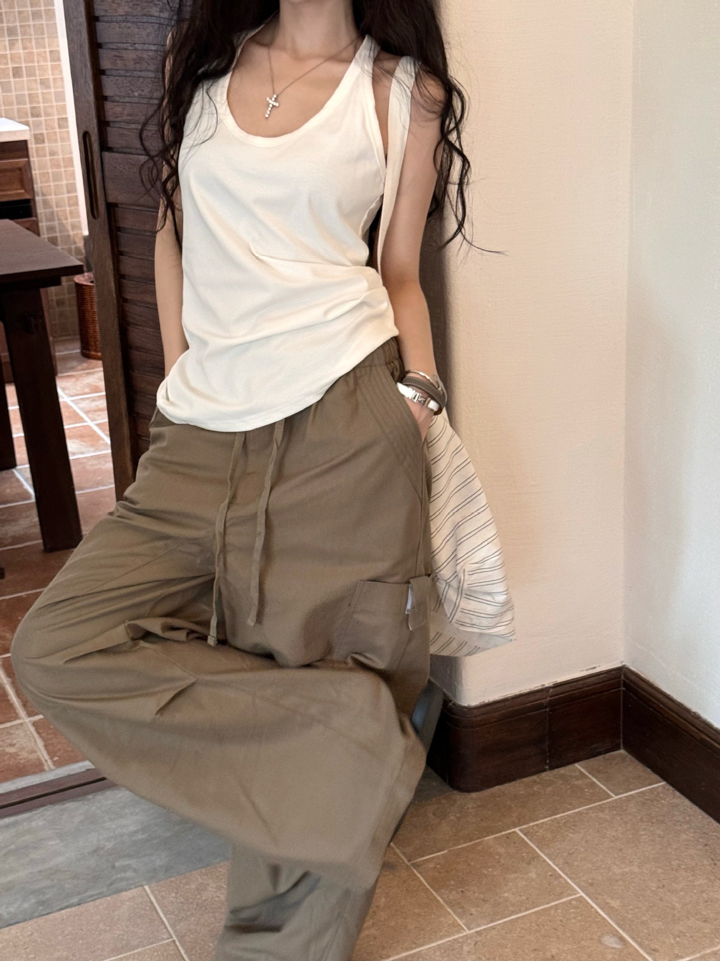 기본 스타일 다용도 외출용 민소매 여성용 2025 여름 신상 캐주얼 슬림핏 이너웨어 민소매 학생용 상의스토어 가기