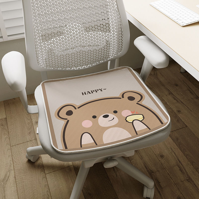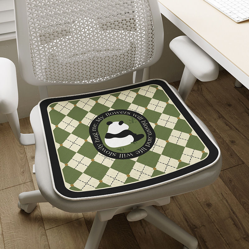 여름 얼음 실크 쿠션 만화 격자 무늬 팬더 가정용 의자 콜드 매트 미끄럼 방지 사무실 통기성 착용 패드스토어 가기