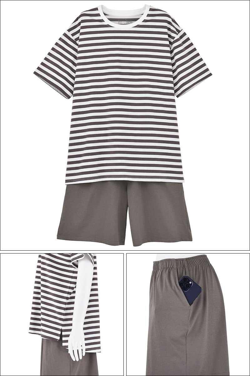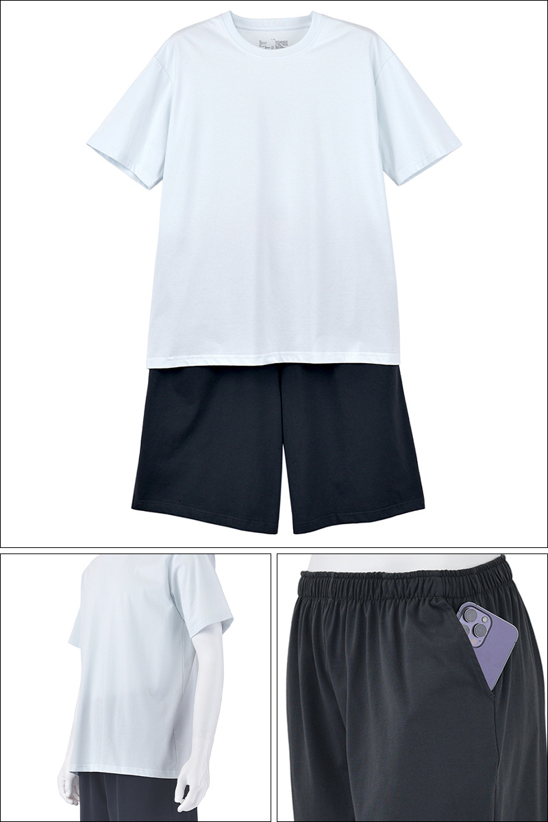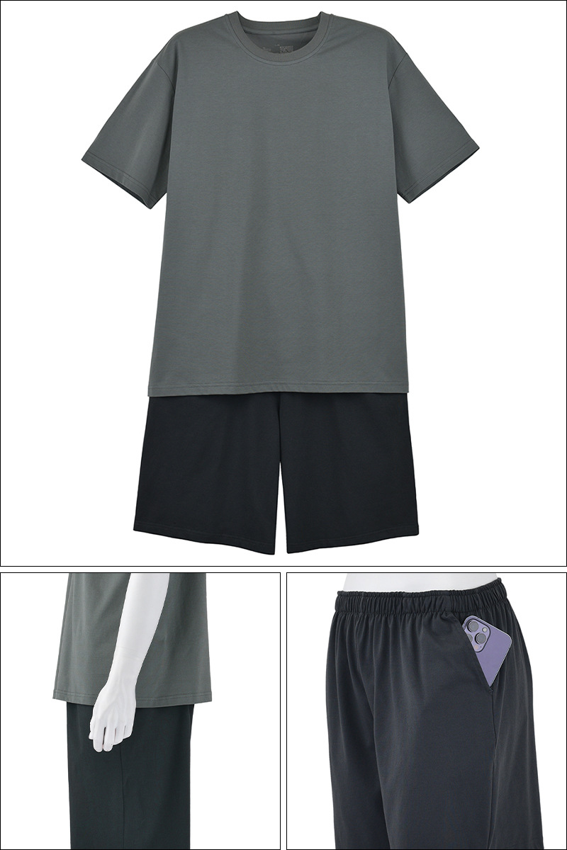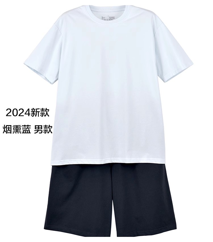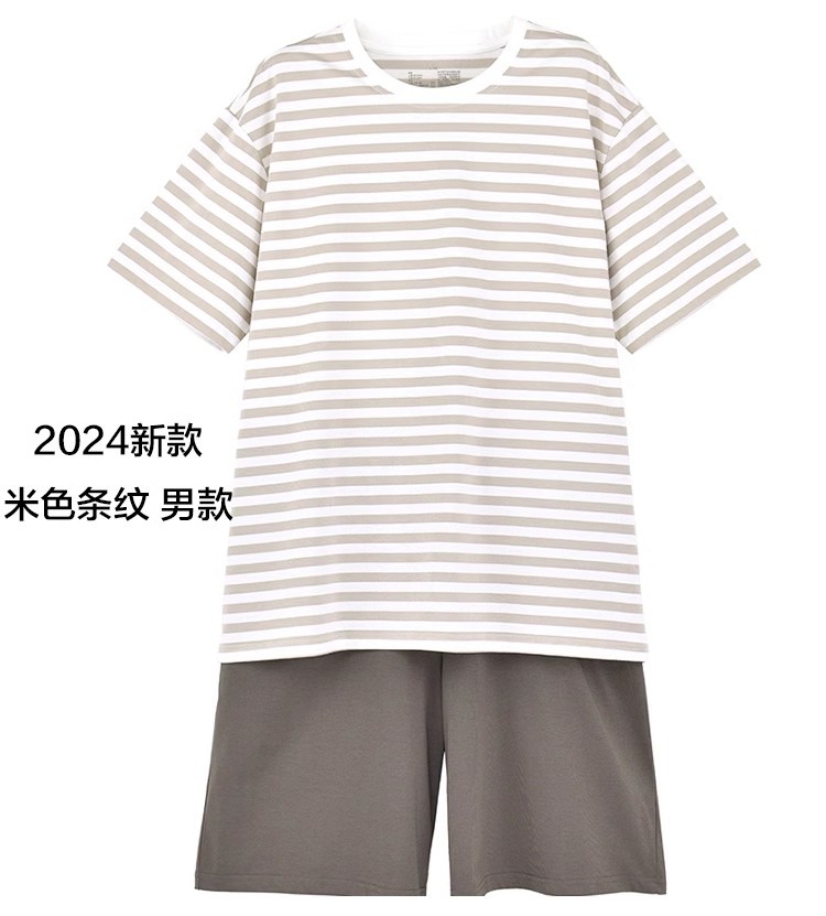 MUJI 일본식 쿨 Tianzhu 코튼 짠 반바지 홈 의류 남성 잠옷 세트 얇은 여성