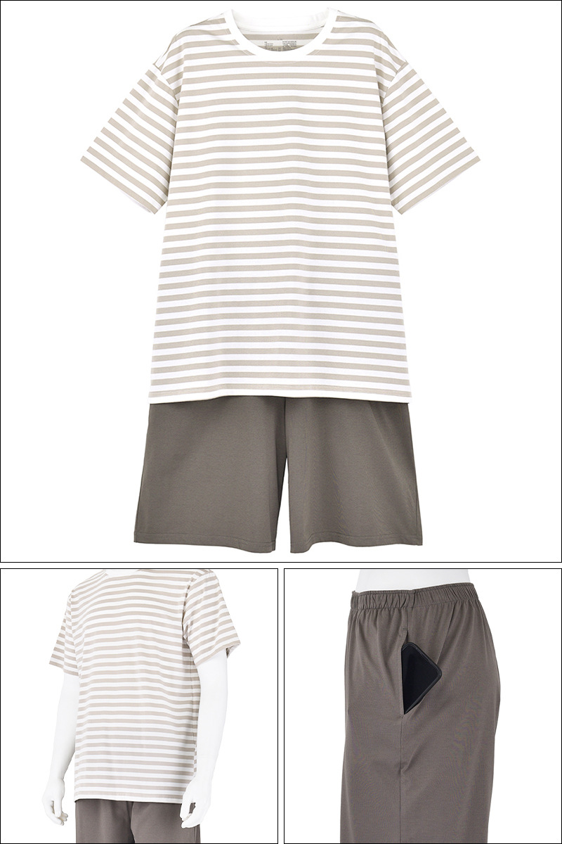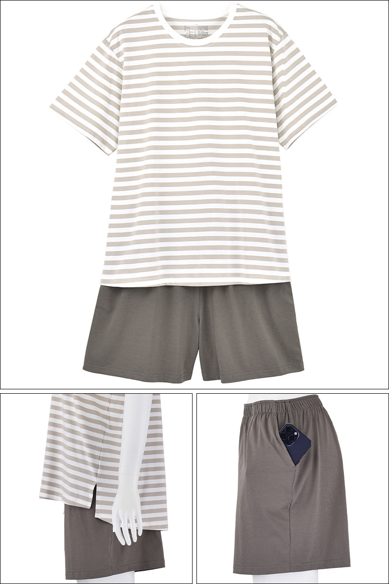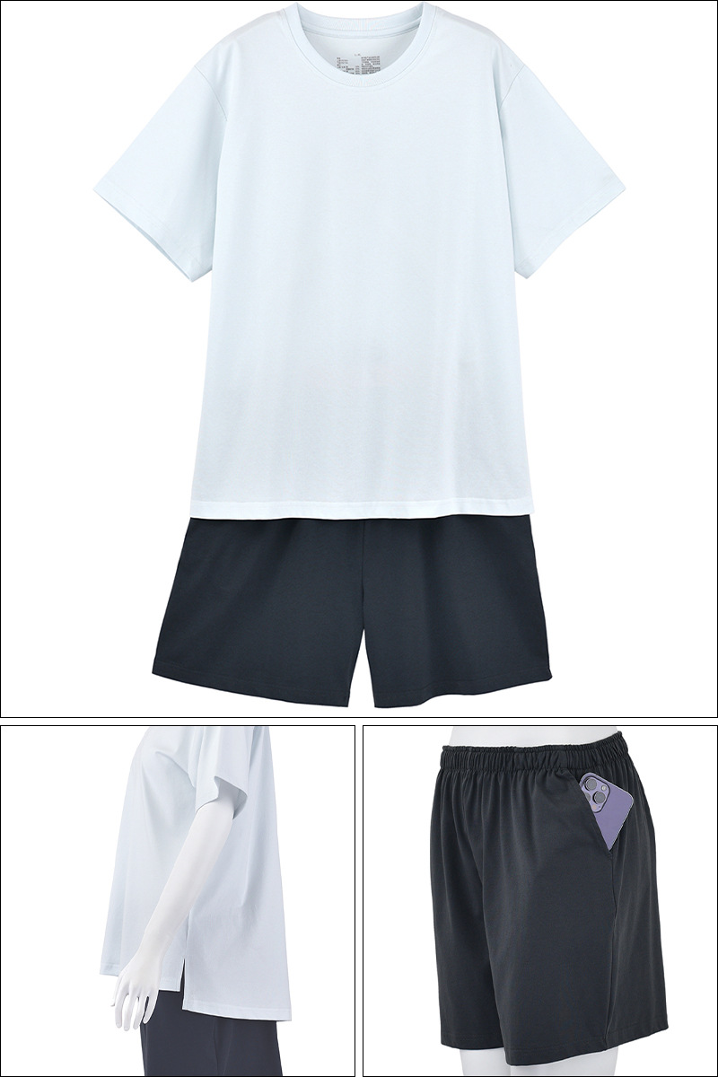 MUJI 일본식 쿨 Tianzhu 코튼 짠 반바지 홈 의류 남성 잠옷 세트 얇은 여성스토어 가기