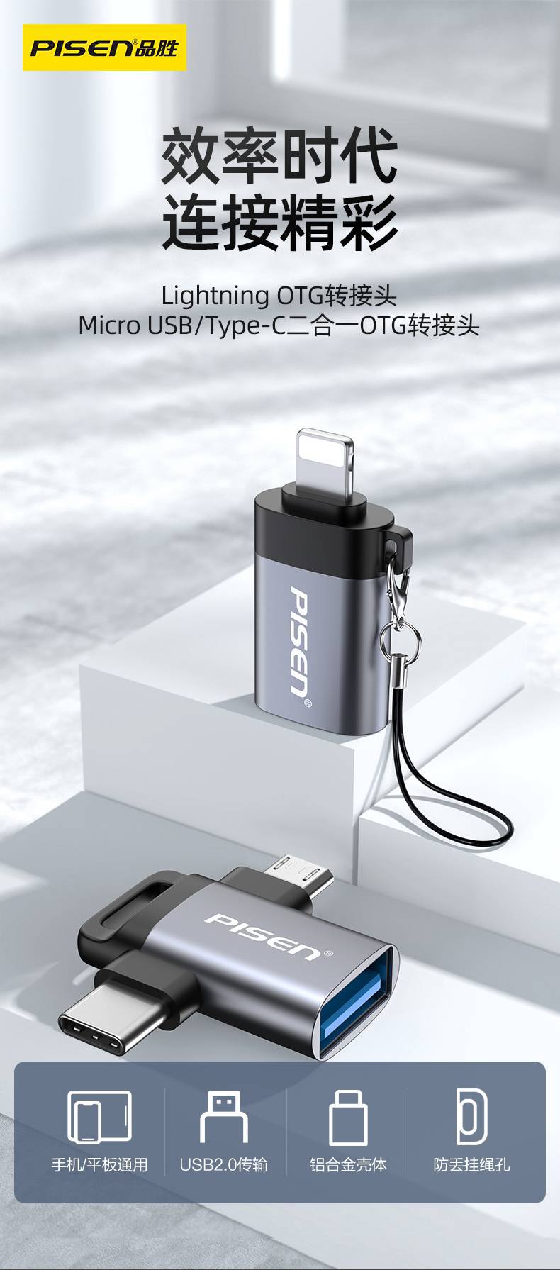 Pinsheng 휴대 전화 u 디스크 어댑터 otg 2 대 1 다기능 변환기 usb 연결 u USB 플러그 데이터 케이블스토어 가기