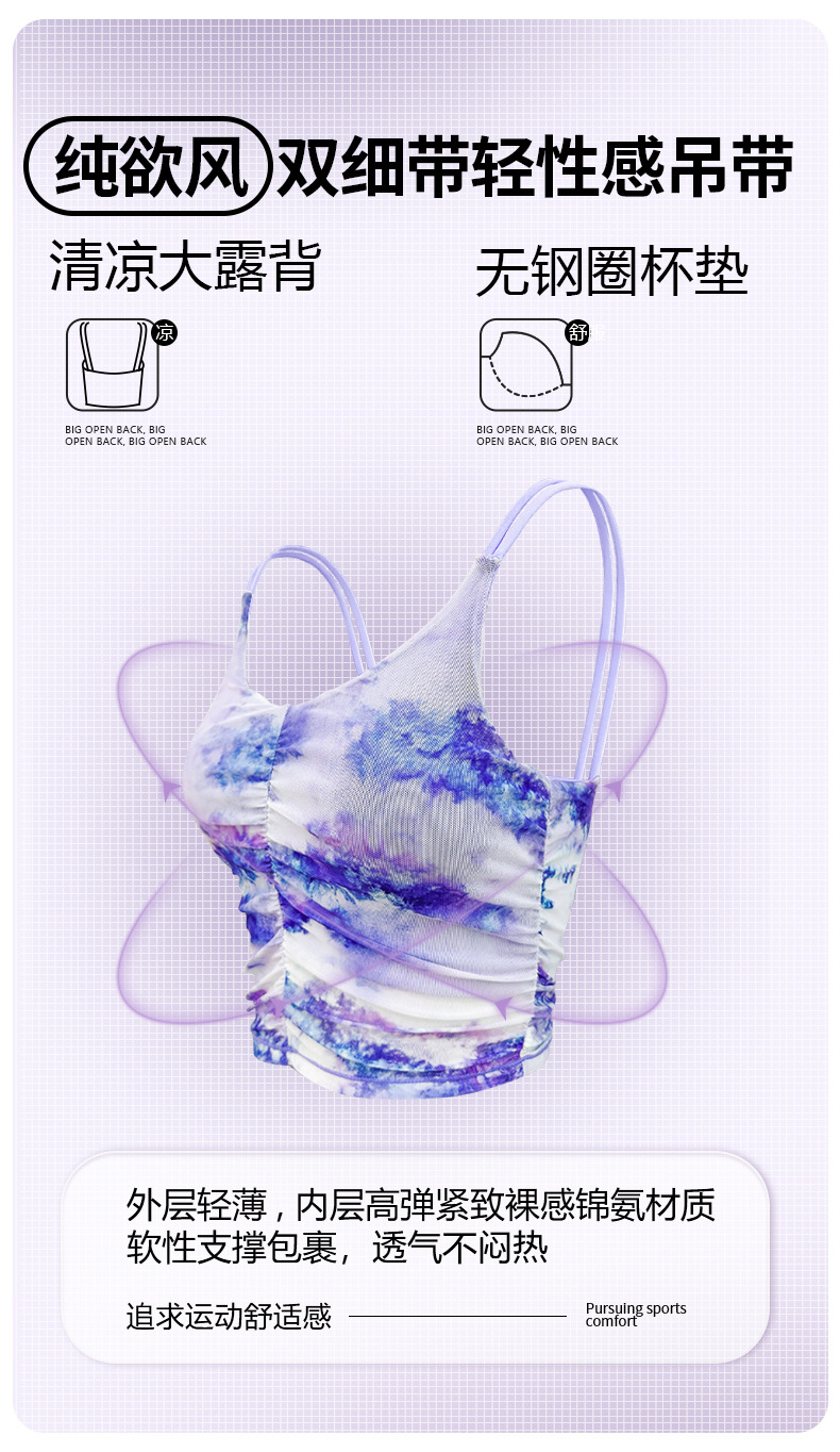 여성용 요가복 여름 신상품 충격흡수 야외 스포츠 프린트 피트니스복 민소매 슬리브리스 탱크탑