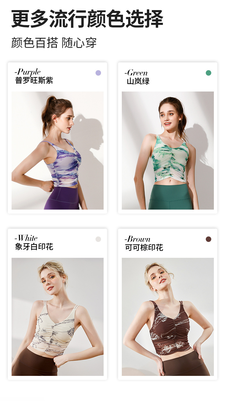 여성용 요가복 여름 신상품 충격흡수 야외 스포츠 프린트 피트니스복 민소매 슬리브리스 탱크탑스토어 가기