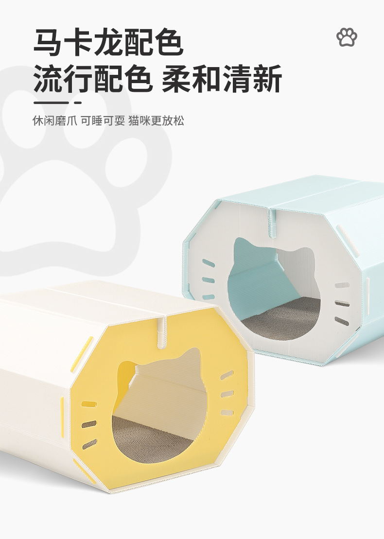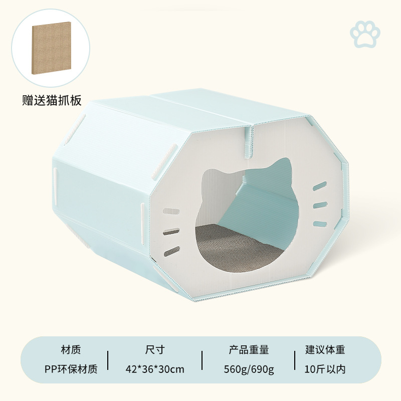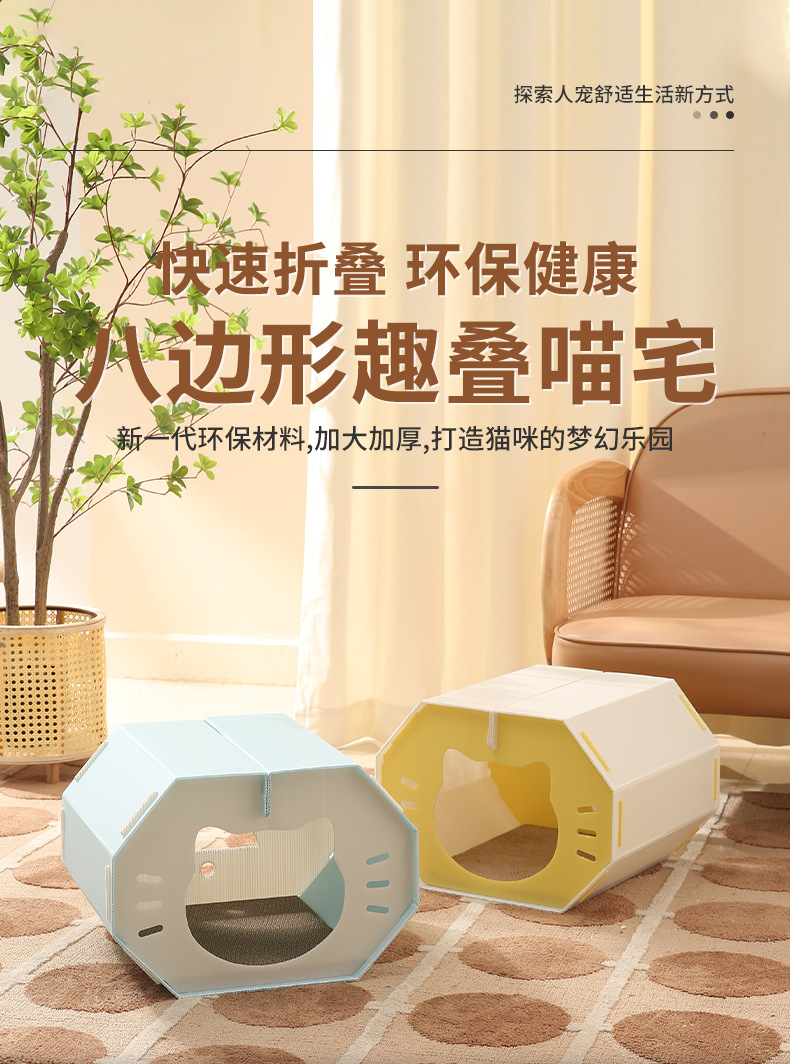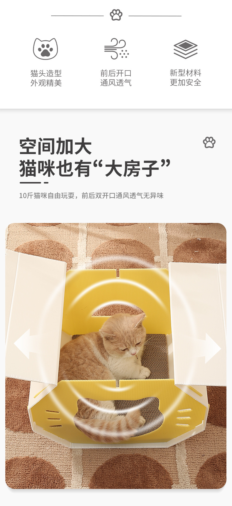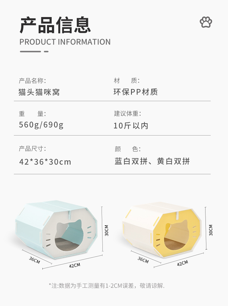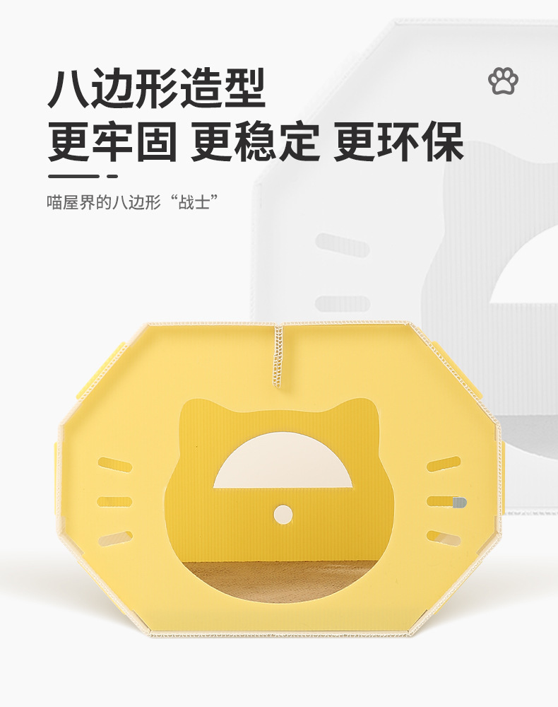 特点2:八边形趣叠猫宅,俏皮造型猫咪头猫窝,新一代环保材质加大加厚,半封闭式给足猫咪安全感,窗口设计 打造猫咪的梦幻乐园 满足猫咪好奇心,探索外面的世界,