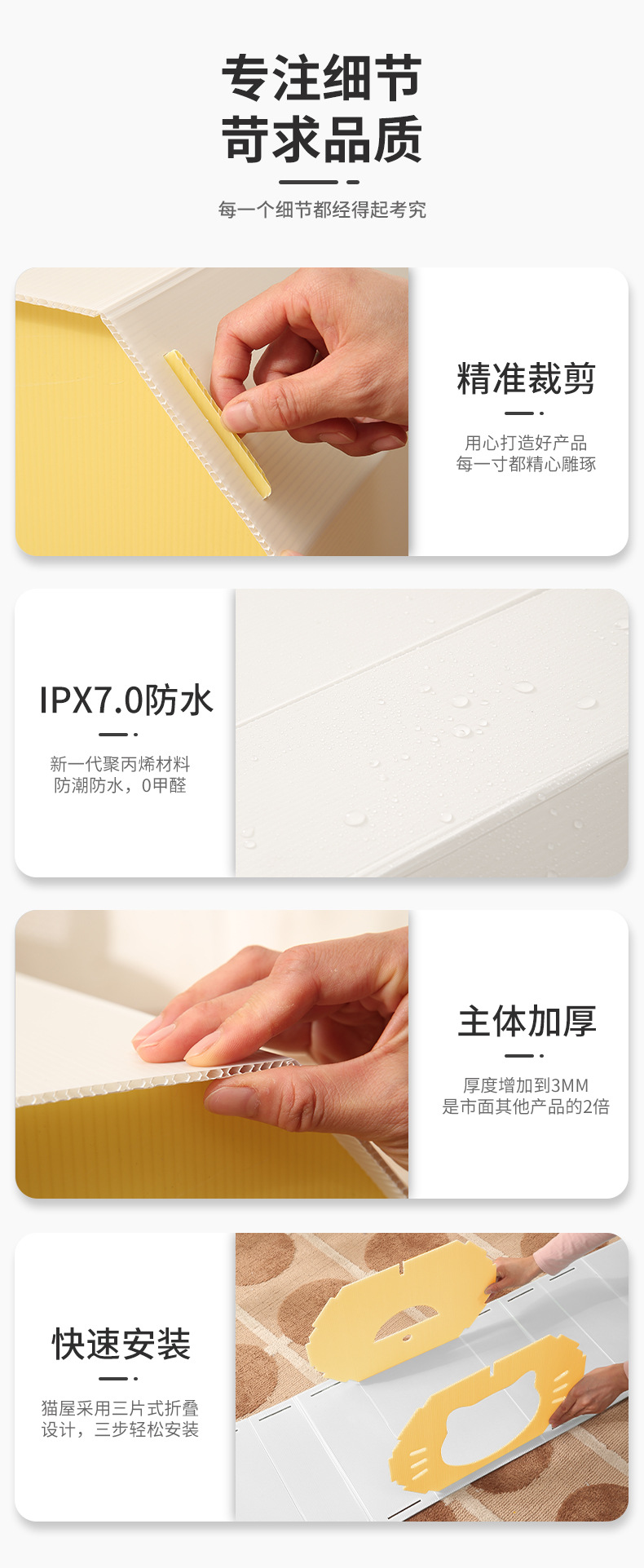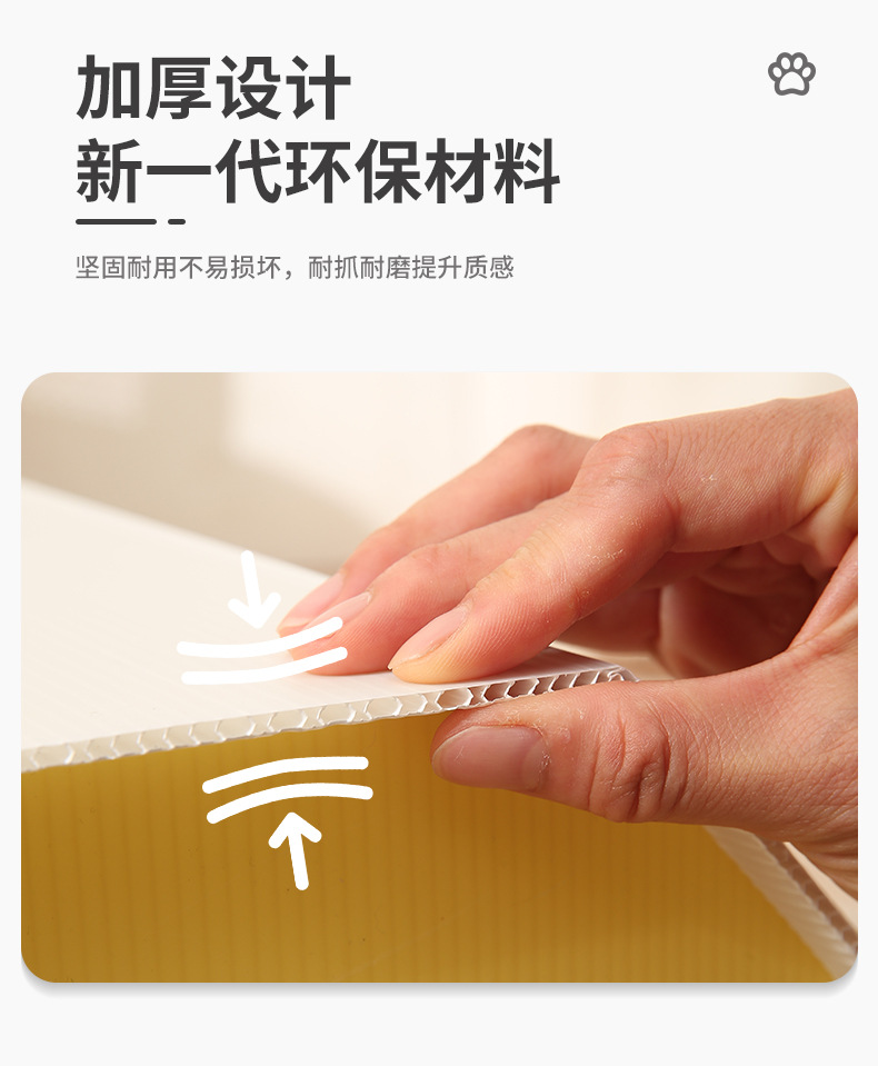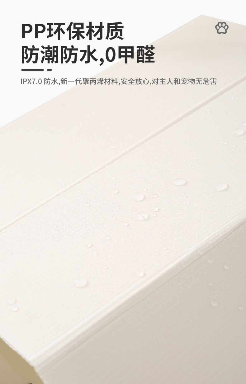 特点1:两种颜色多一种选择,环保PP材质(聚丙烯)无刺激、无异味无甲醛,防水防潮,对主人和宠物无危害,环保材质不软榻不变形耐磨耐抓,使用放心,