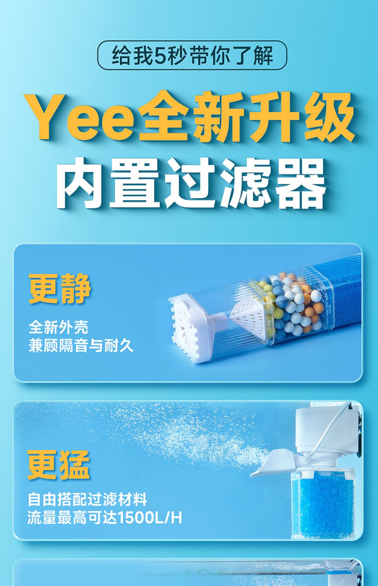 예 어항 필터 정수 사이클 3 대 1 필터 내장 작은 물고기 화장실 흡입 및 산소 제조 기계