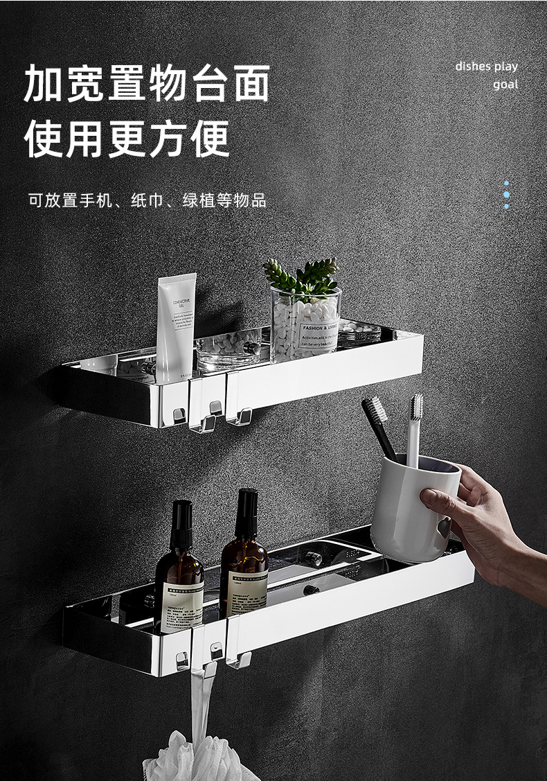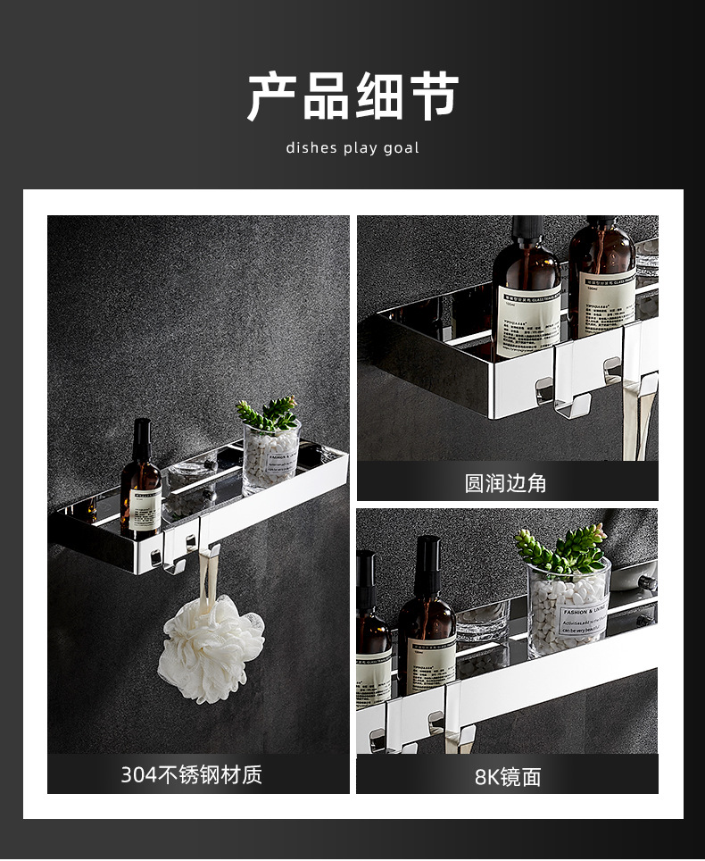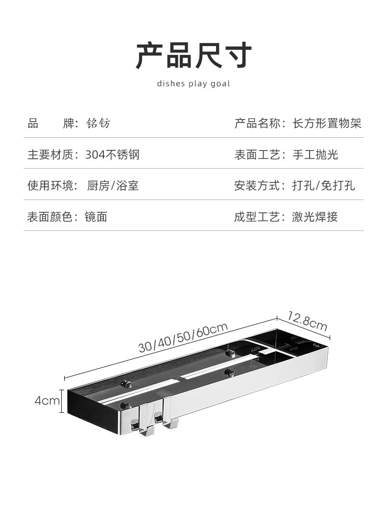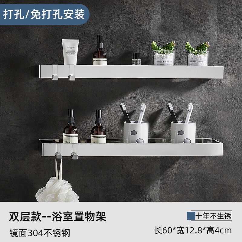 욕실 스테인레스 스틸 스토리지 랙 펀치가없는 두꺼운 스토리지 랙 욕실 세면대 거울 전면 용 직사각형 스토리지 랙