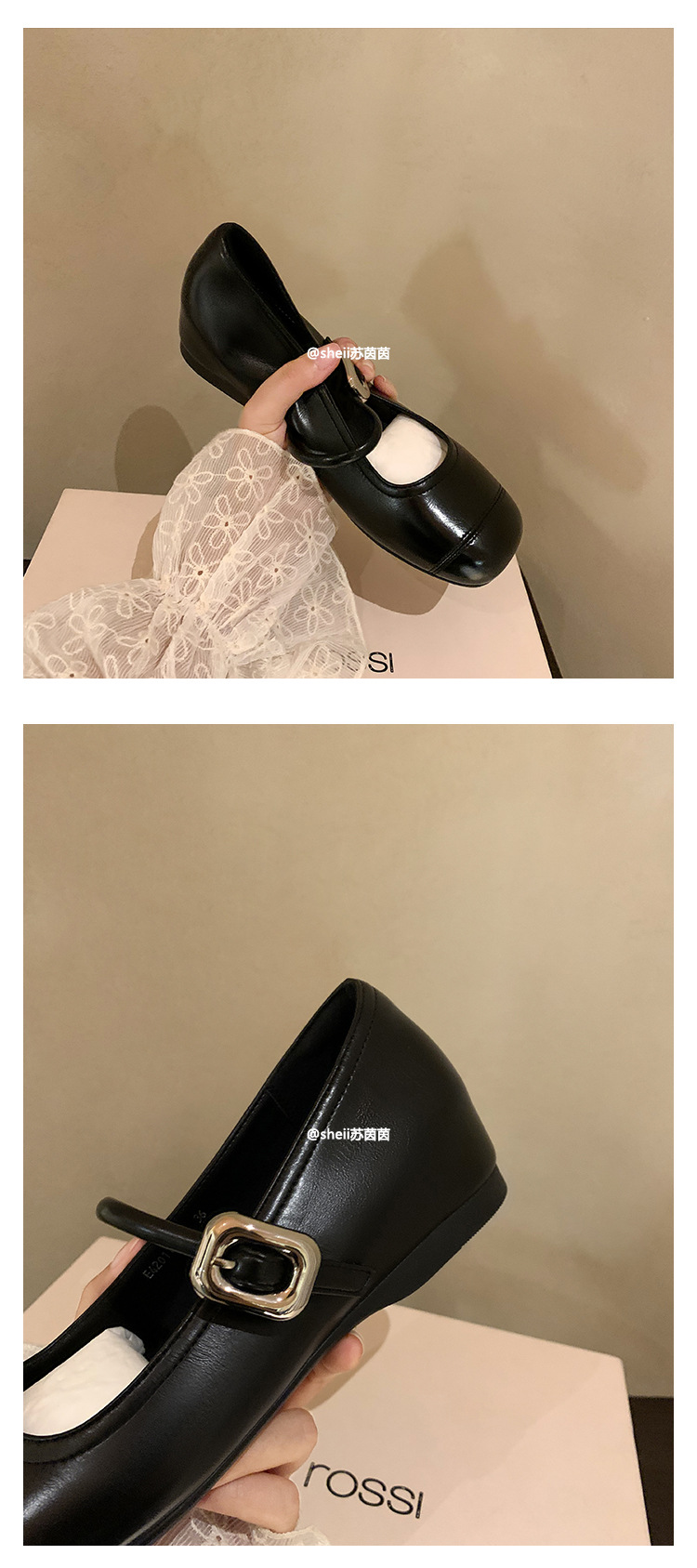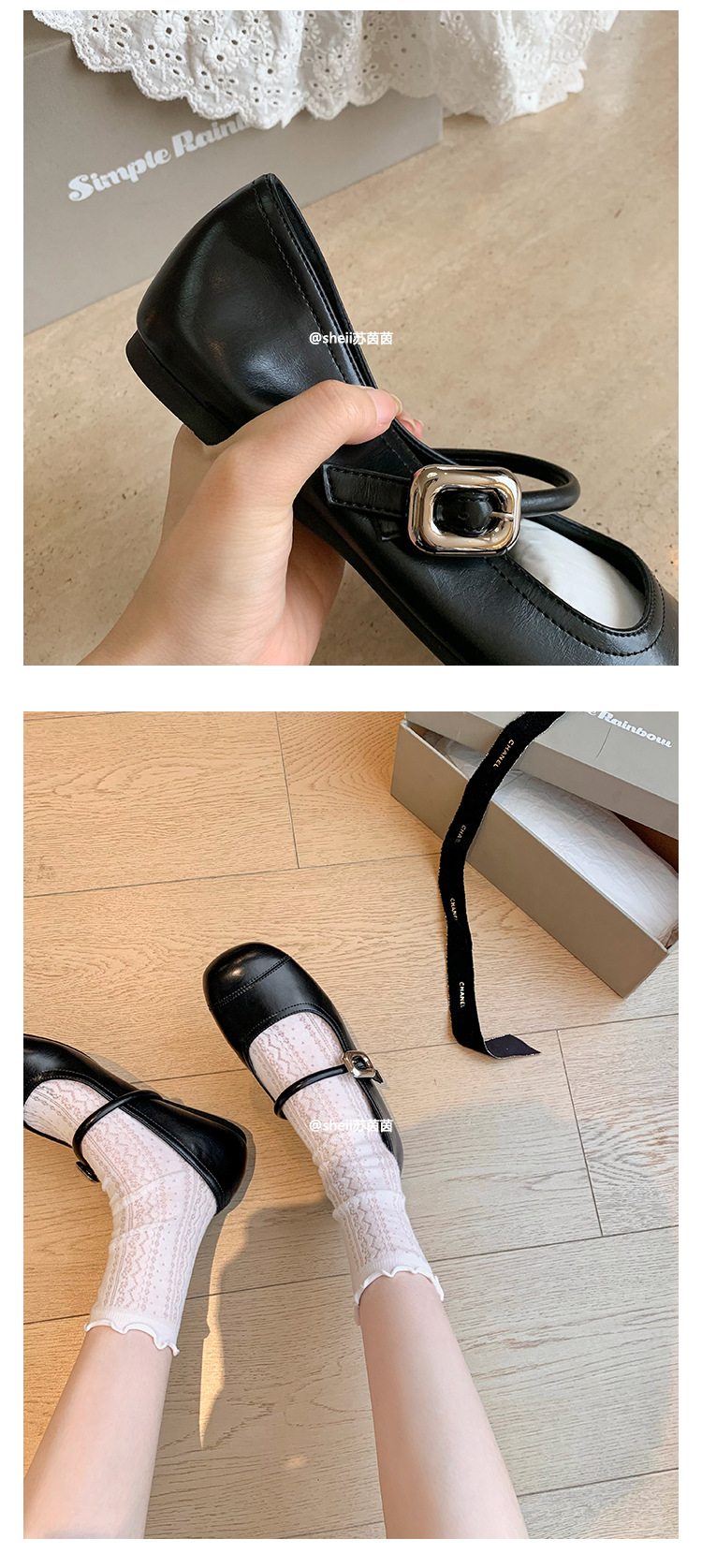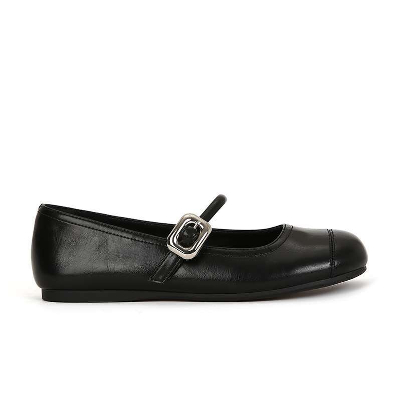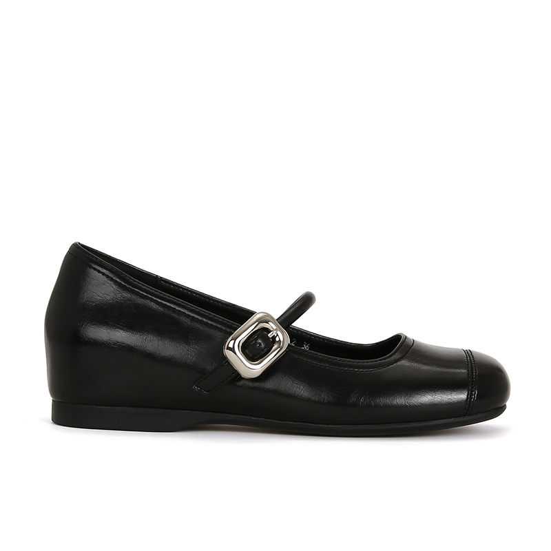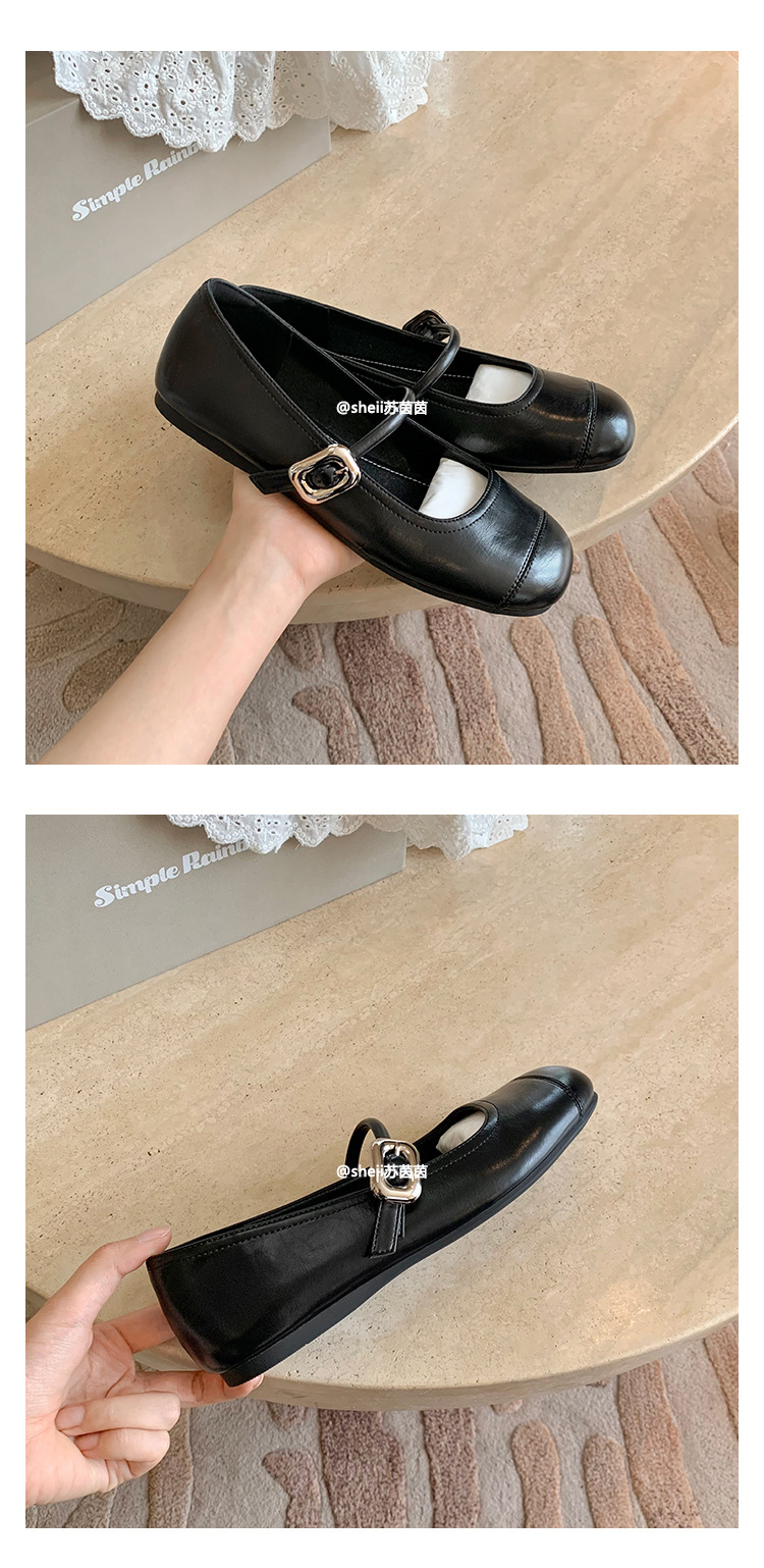 [셰이이 수 이닌] 높이 35mm ~ 슈퍼 소프트 프렌치 스퀘어 버클 플랫 발레 신발 여성 메리 제인 싱글 신발