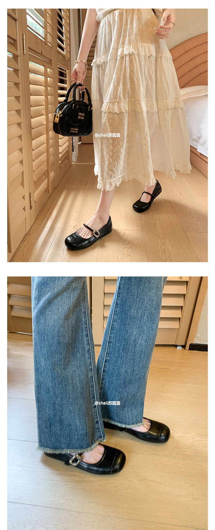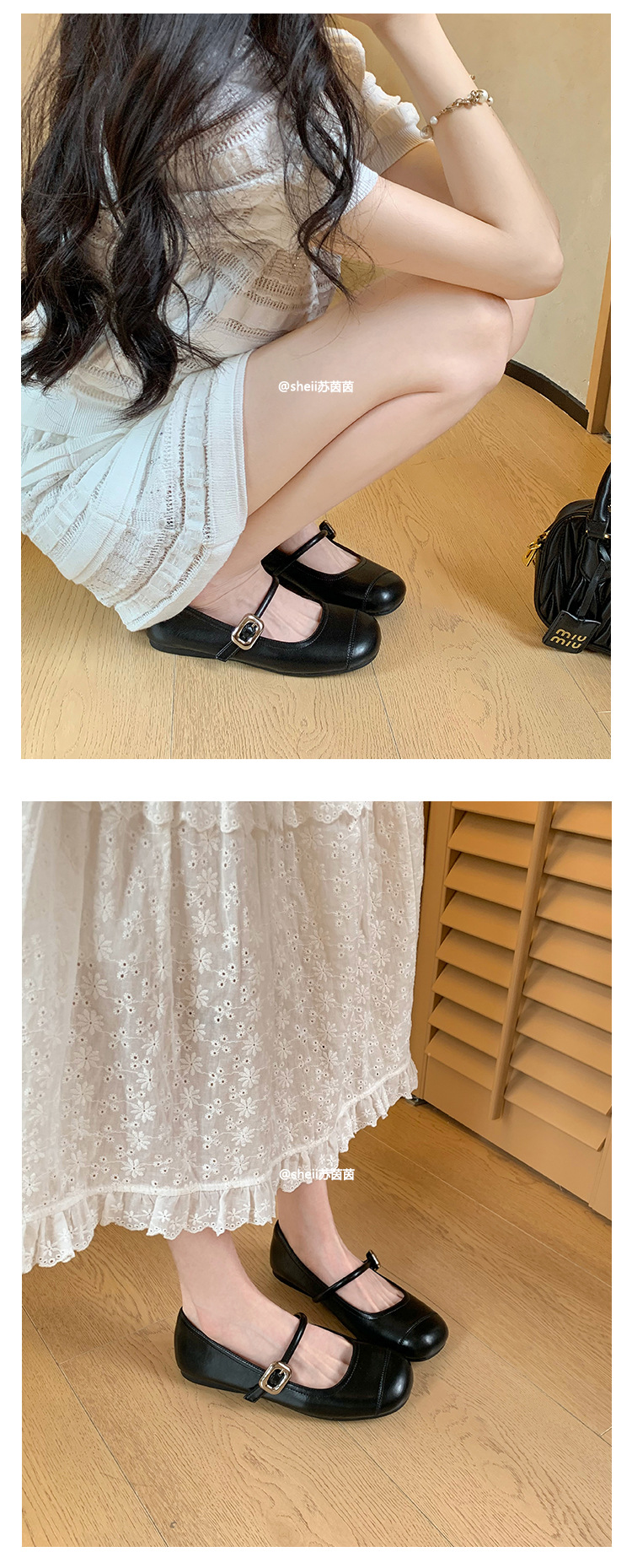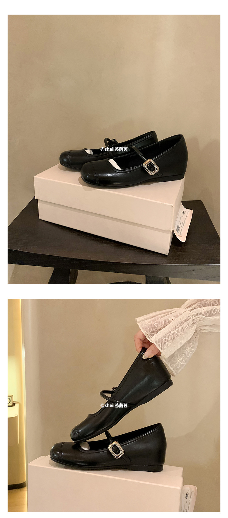 [셰이이 수 이닌] 높이 35mm ~ 슈퍼 소프트 프렌치 스퀘어 버클 플랫 발레 신발 여성 메리 제인 싱글 신발