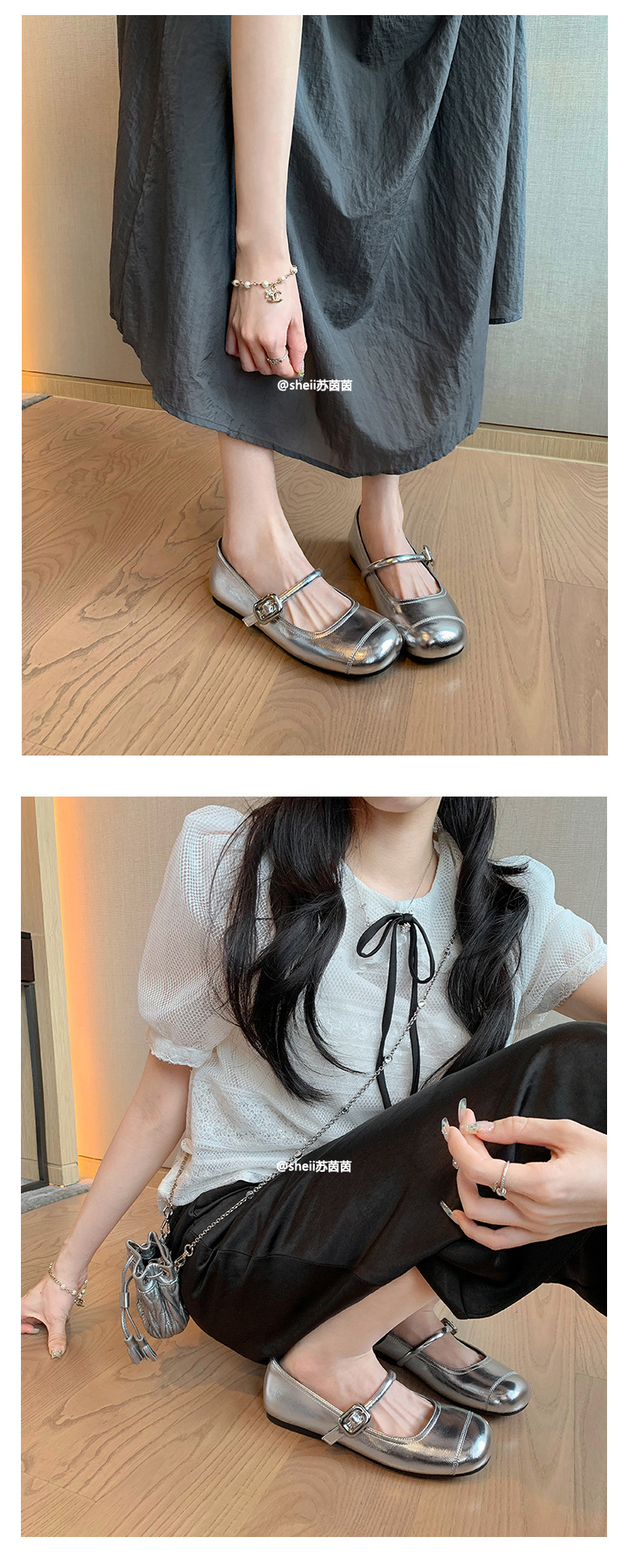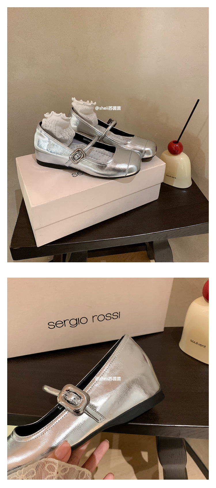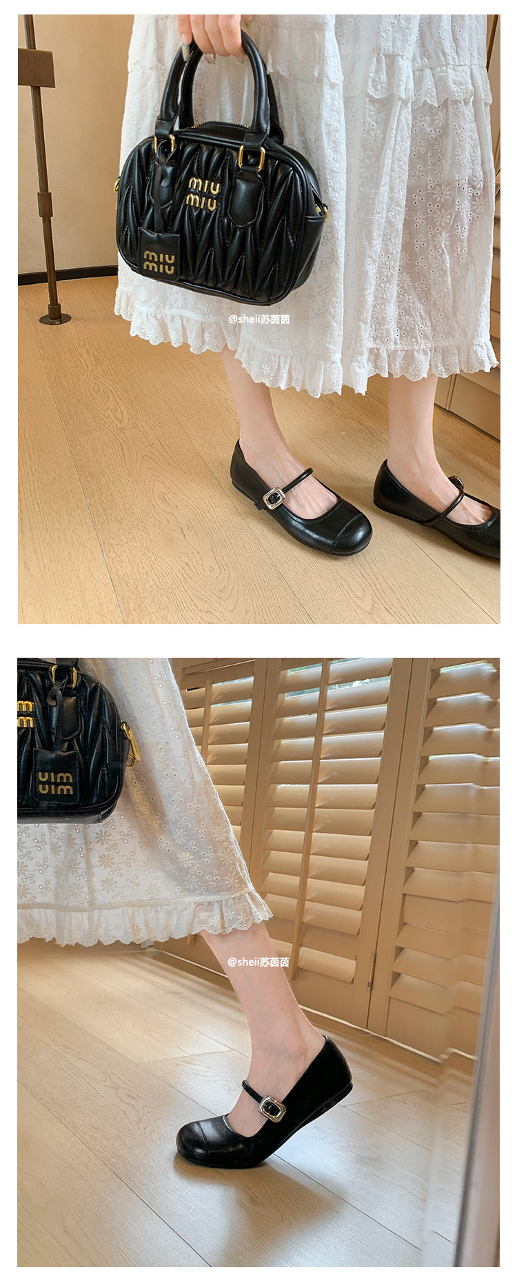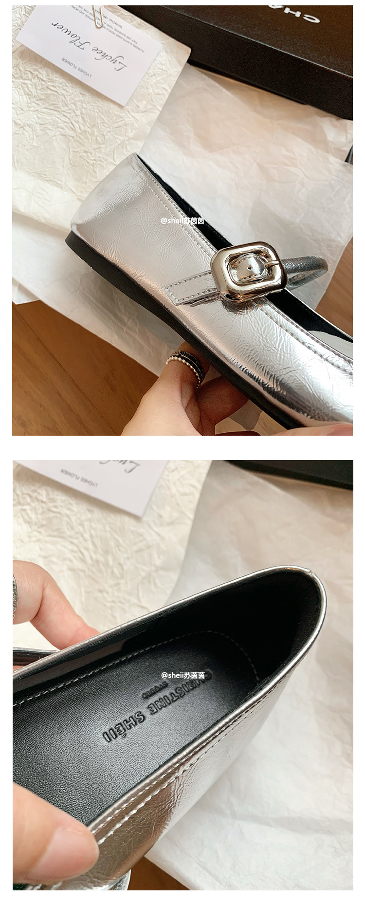 [셰이이 수 이닌] 높이 35mm ~ 슈퍼 소프트 프렌치 스퀘어 버클 플랫 발레 신발 여성 메리 제인 싱글 신발