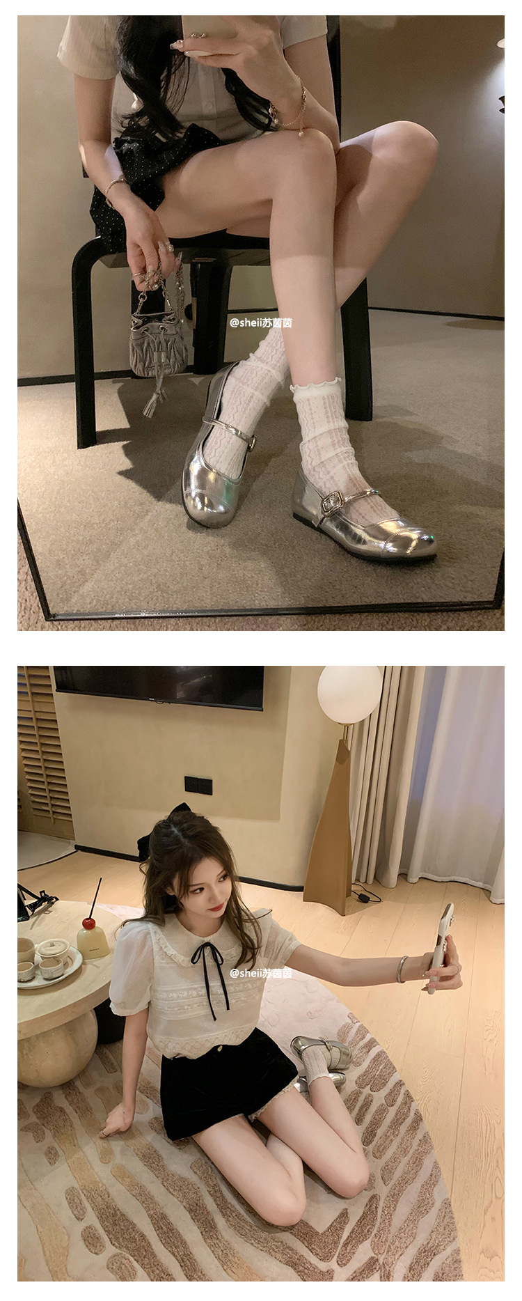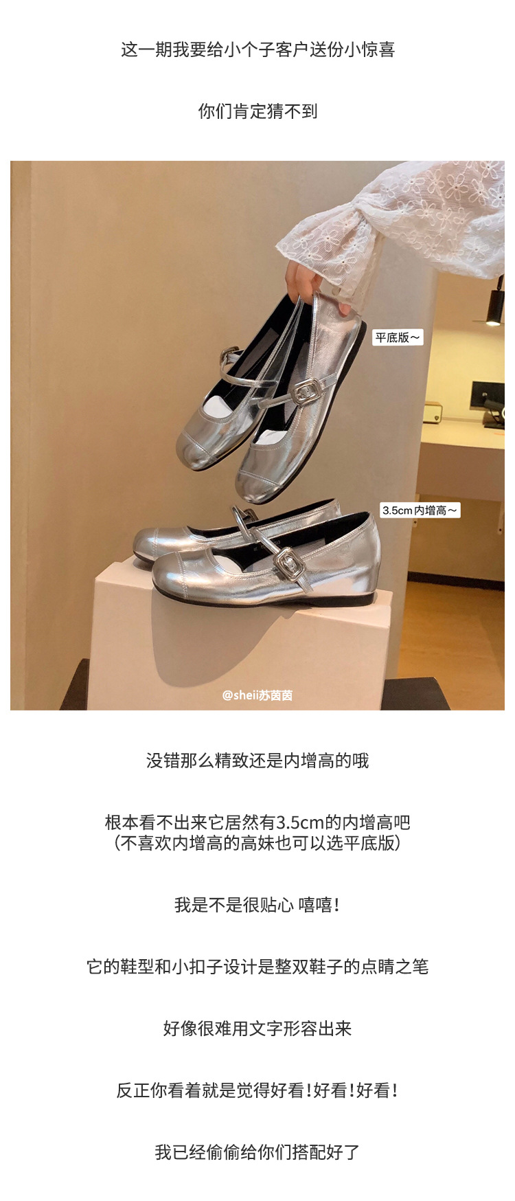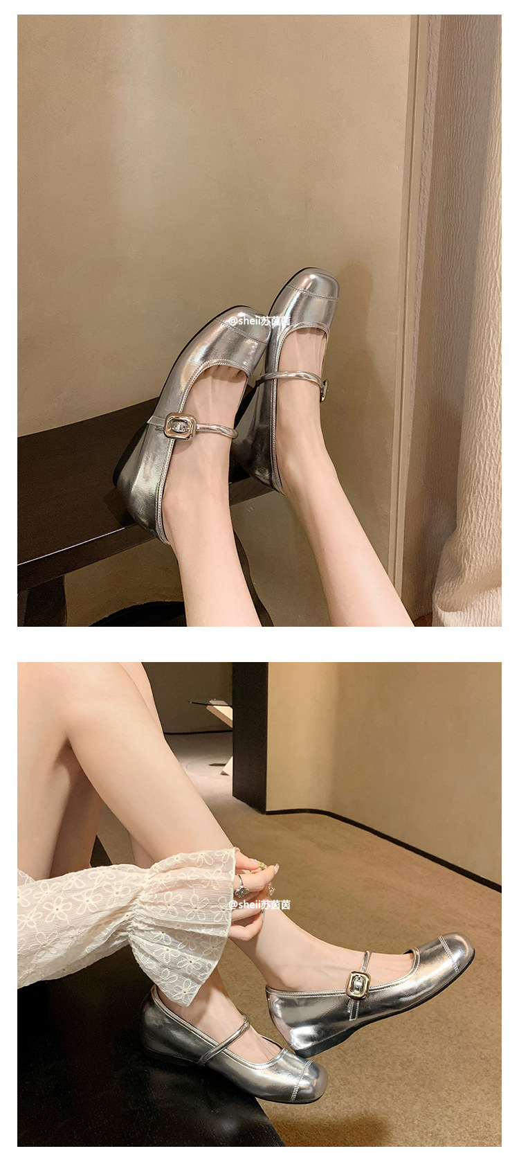 [셰이이 수 이닌] 높이 35mm ~ 슈퍼 소프트 프렌치 스퀘어 버클 플랫 발레 신발 여성 메리 제인 싱글 신발스토어 가기