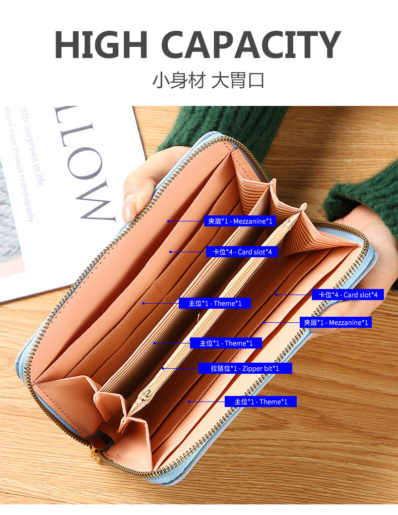 국경 간 다이파 새로운 핸드 지갑 여성의 긴 지퍼 다기능 모든 경기 지갑 대용량 휴대 전화 지갑