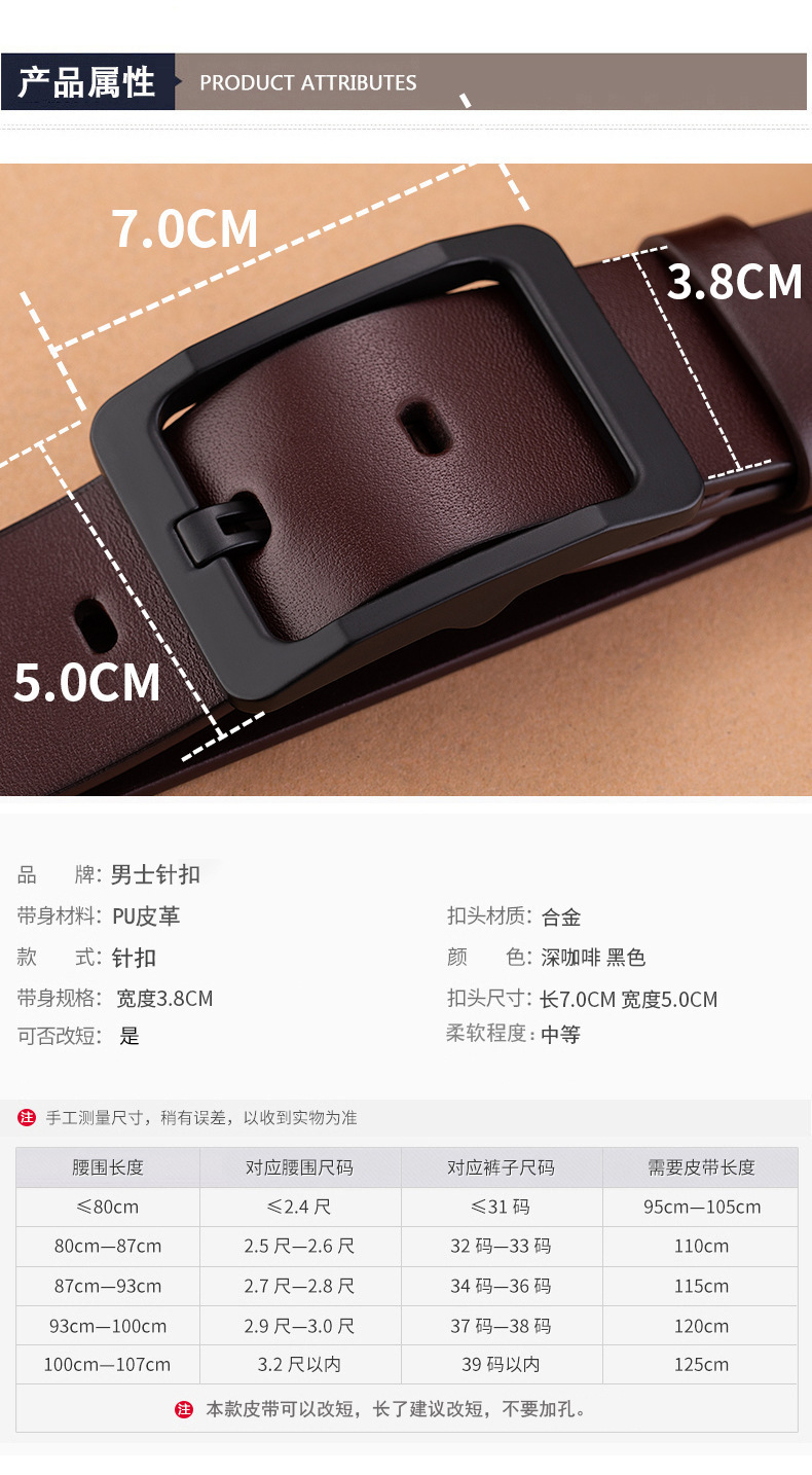 • 합금 블랙 폭 핀 버클 다크 브라운