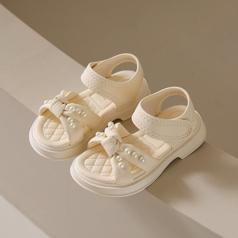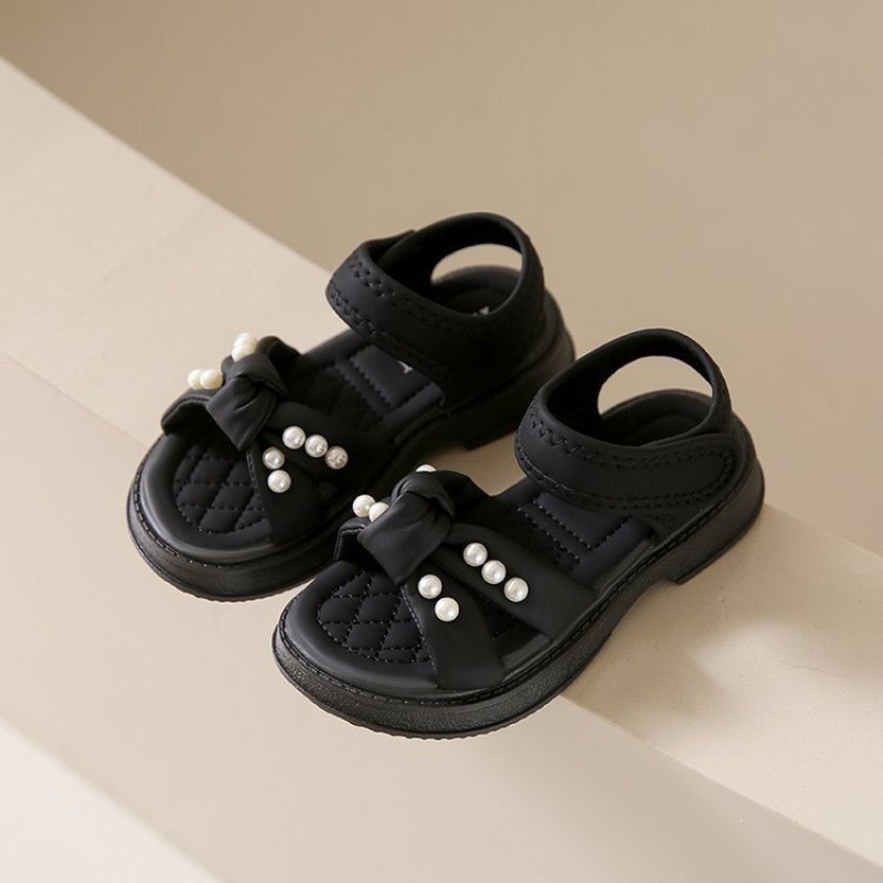 소녀 신발 2024 여름 새로운 어린이 샌들 소프트 단독 진주 작은 소녀 공주 신발 미드 빅 어린이 비치 신발스토어 가기