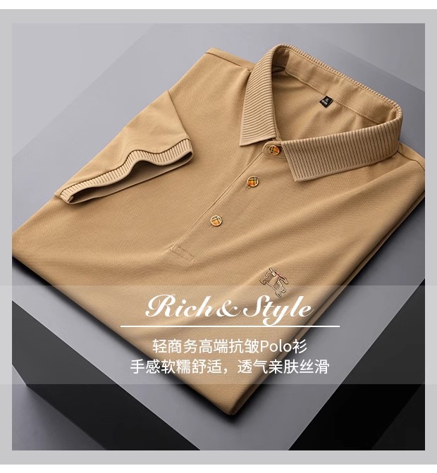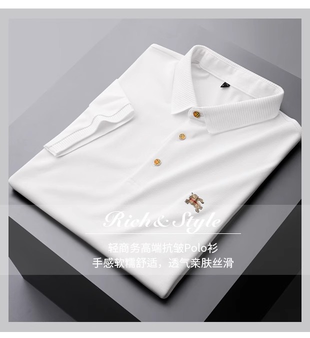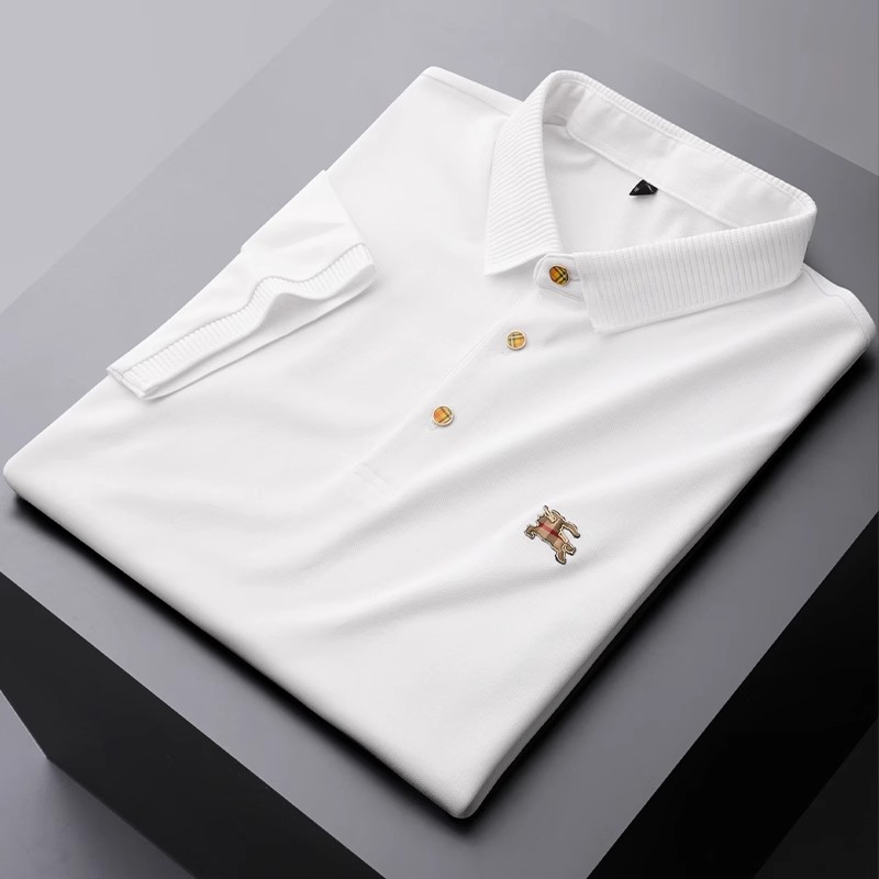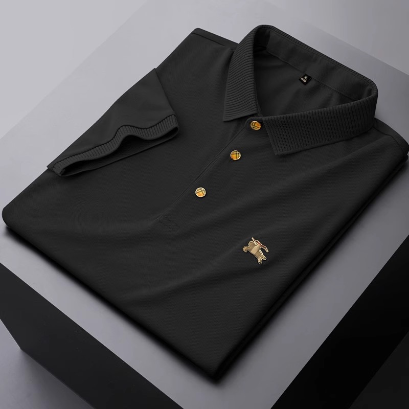 유럽의 하이 엔드 B 패션 패션 폴 셔츠 남성용 머서리 면화 비즈 반팔 폴로 셔츠 여름 아이스 실크 옷깃 티셔츠