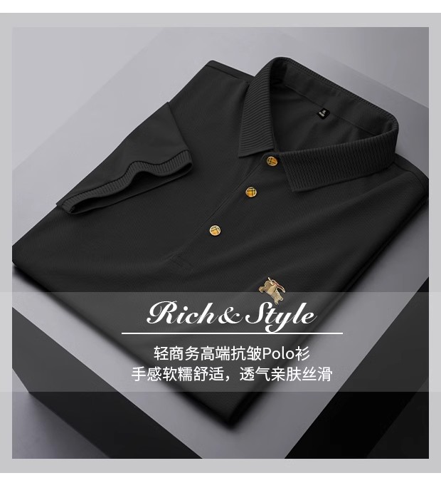 유럽의 하이 엔드 B 패션 패션 폴 셔츠 남성용 머서리 면화 비즈 반팔 폴로 셔츠 여름 아이스 실크 옷깃 티셔츠스토어 가기