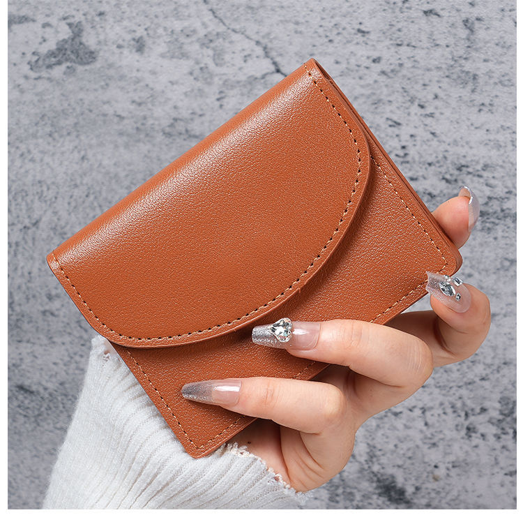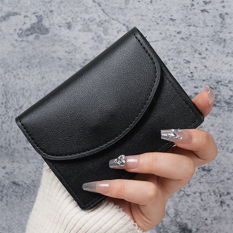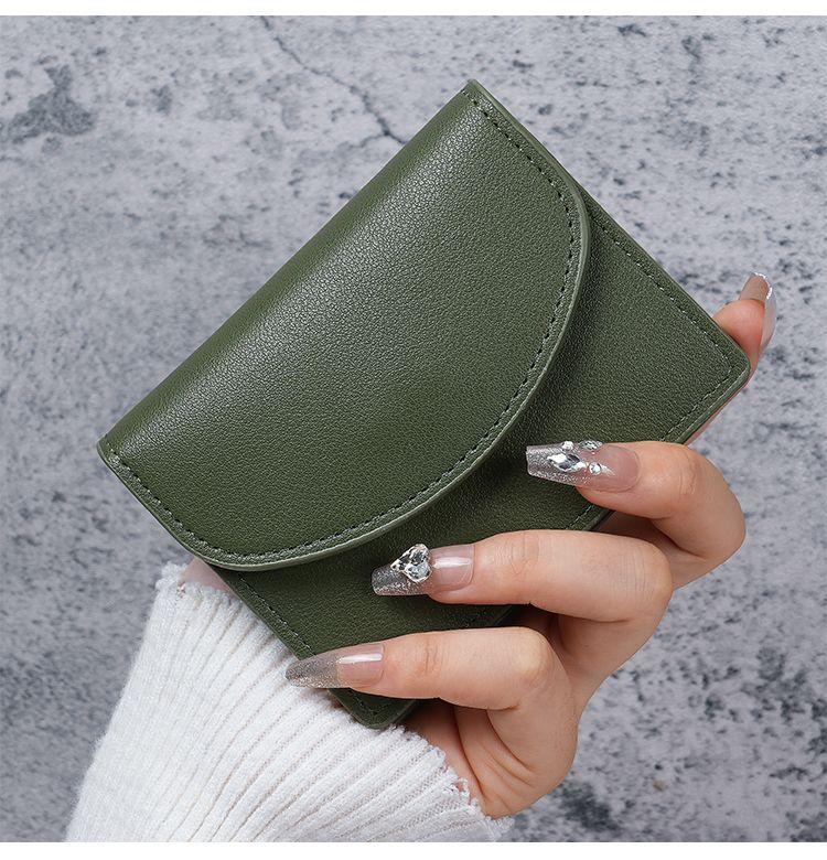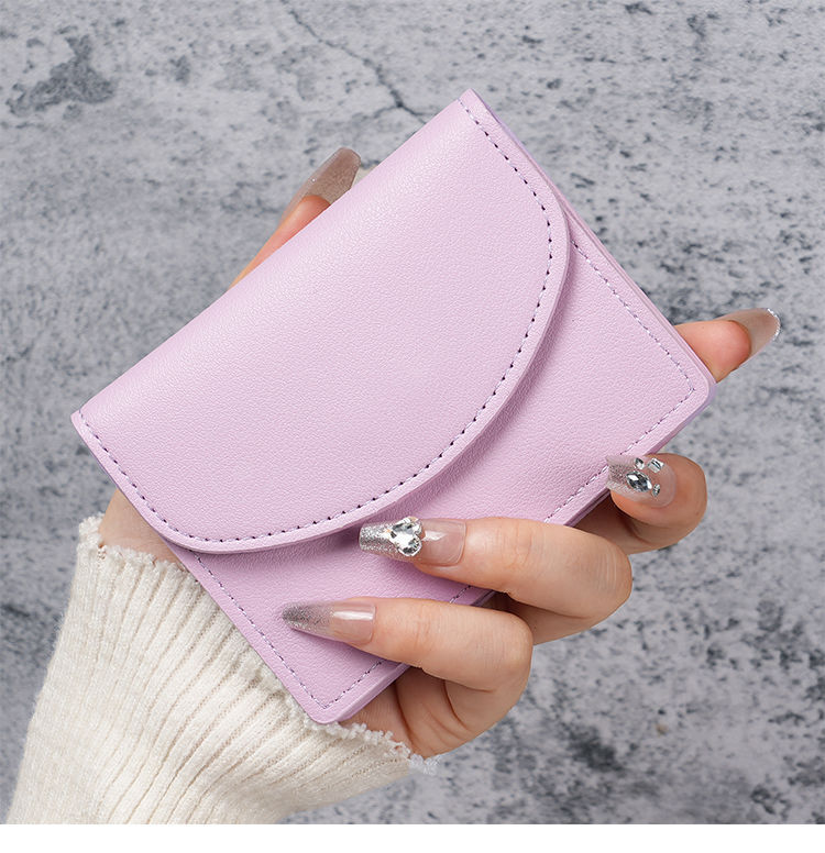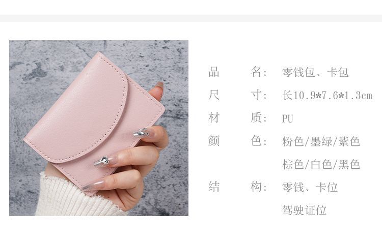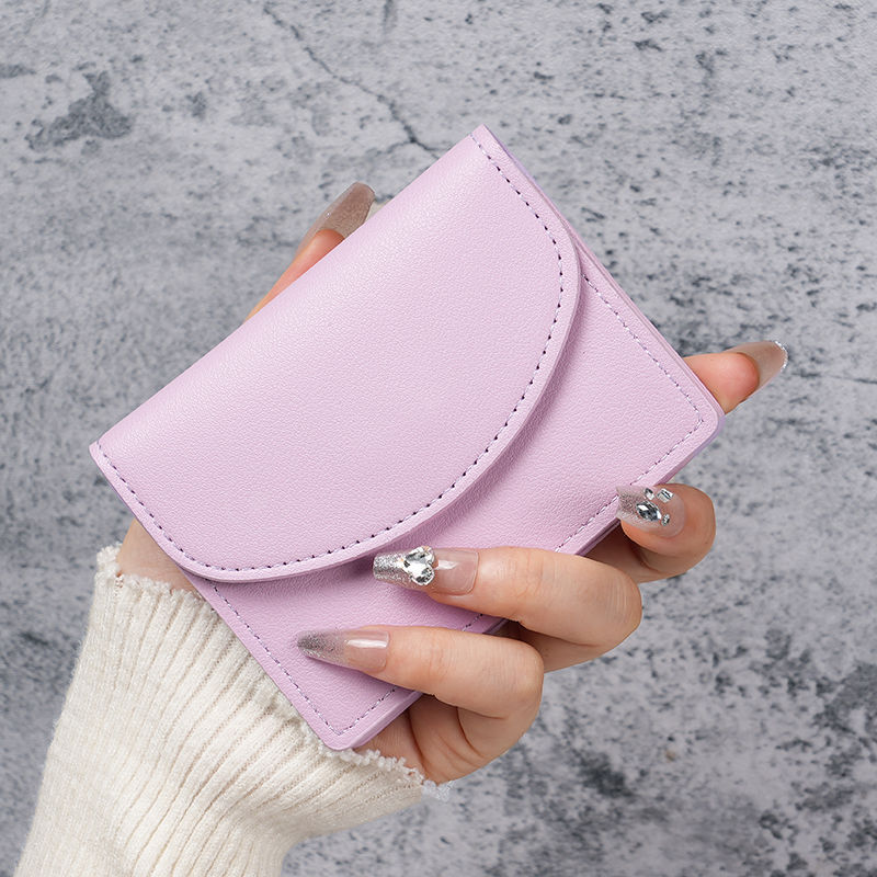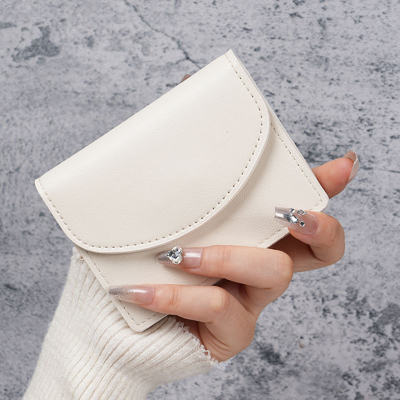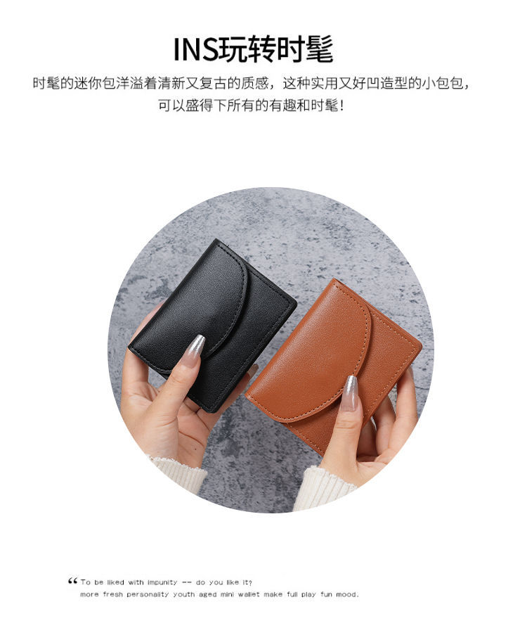 한국 인 스타일 짧은 작은 카드 가방 휴대용 작은 단색 간단한 소녀의 새로운 PU 가죽 인증서 동전 지갑