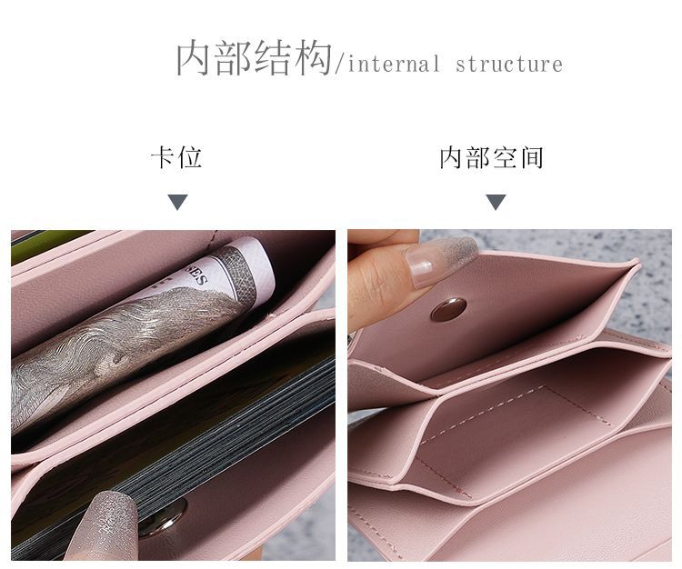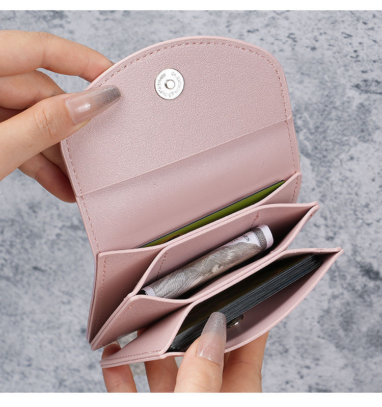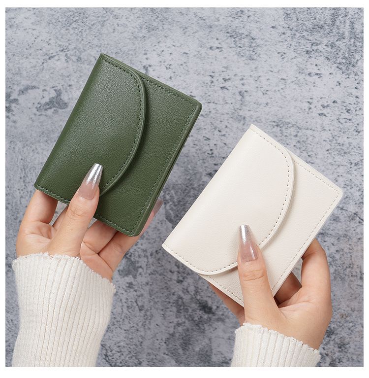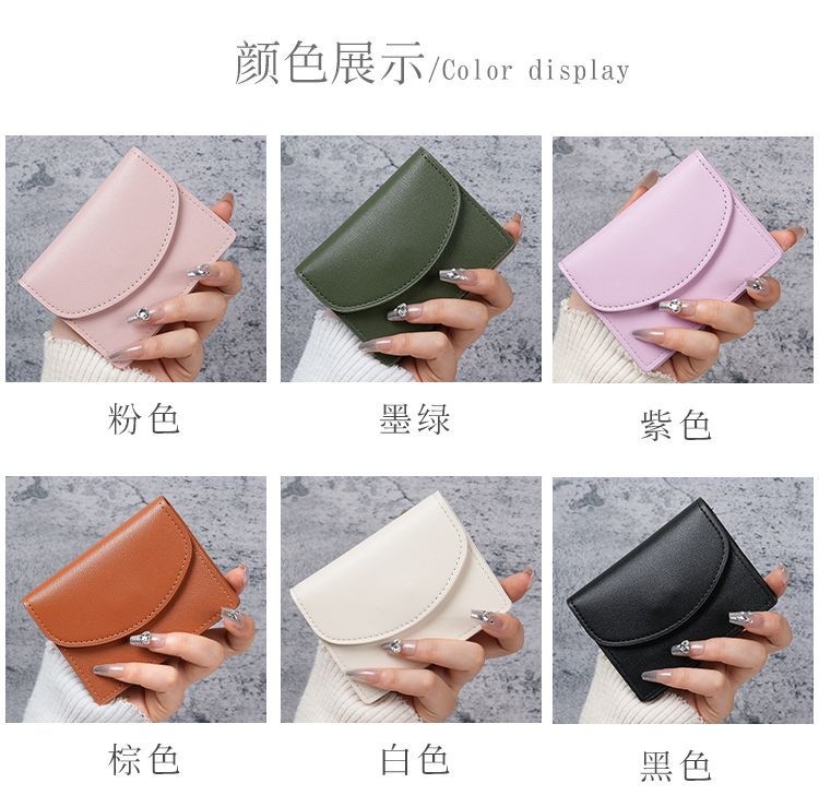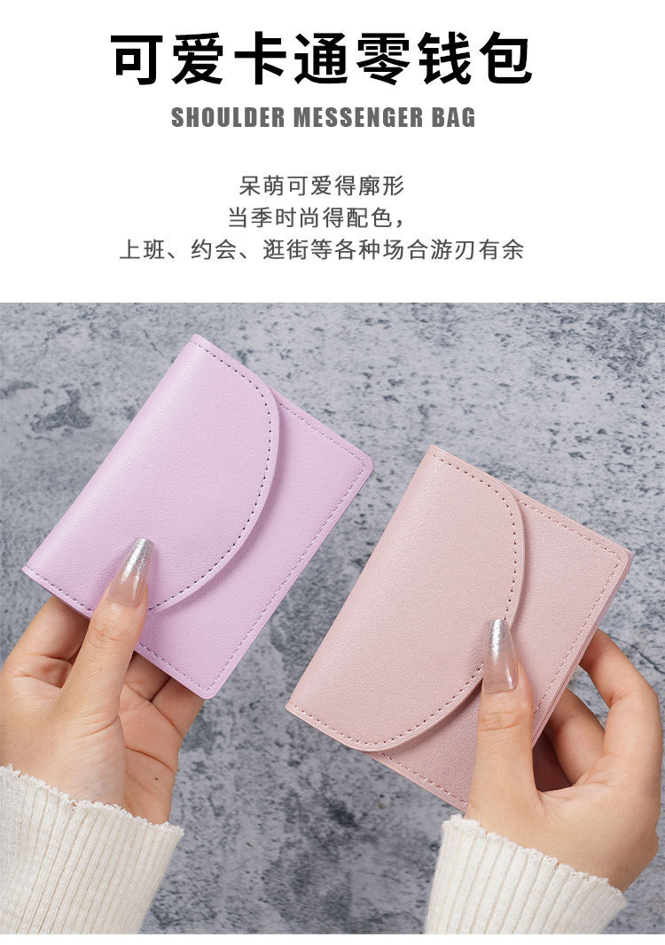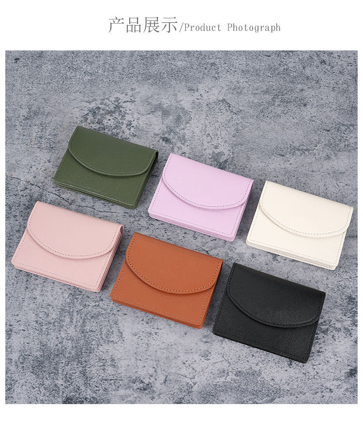 한국 인 스타일 짧은 작은 카드 가방 휴대용 작은 단색 간단한 소녀의 새로운 PU 가죽 인증서 동전 지갑스토어 가기