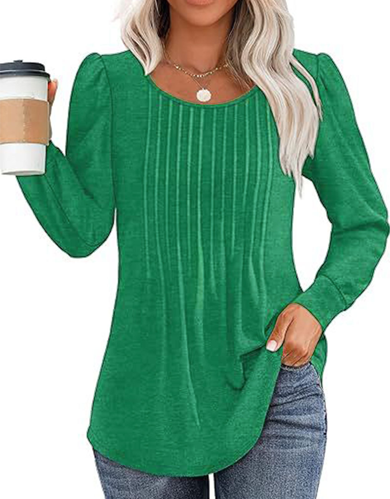 2024 아마존 가을 새로운 여성의 긴 소매 셔츠 셔츠 패션 캐주얼 주름 낮은 라운드 목 크로스 국경 여성 의류스토어 가기