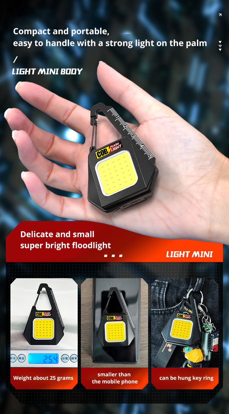 다기능 키 체인 가벼운 국경 cob 충전 미니 자기 작업 조명 자동차 비상 야생 캠핑 사운드 라이트스토어 가기