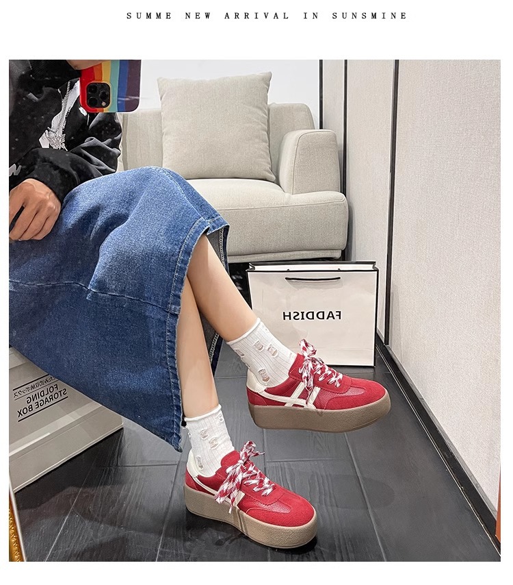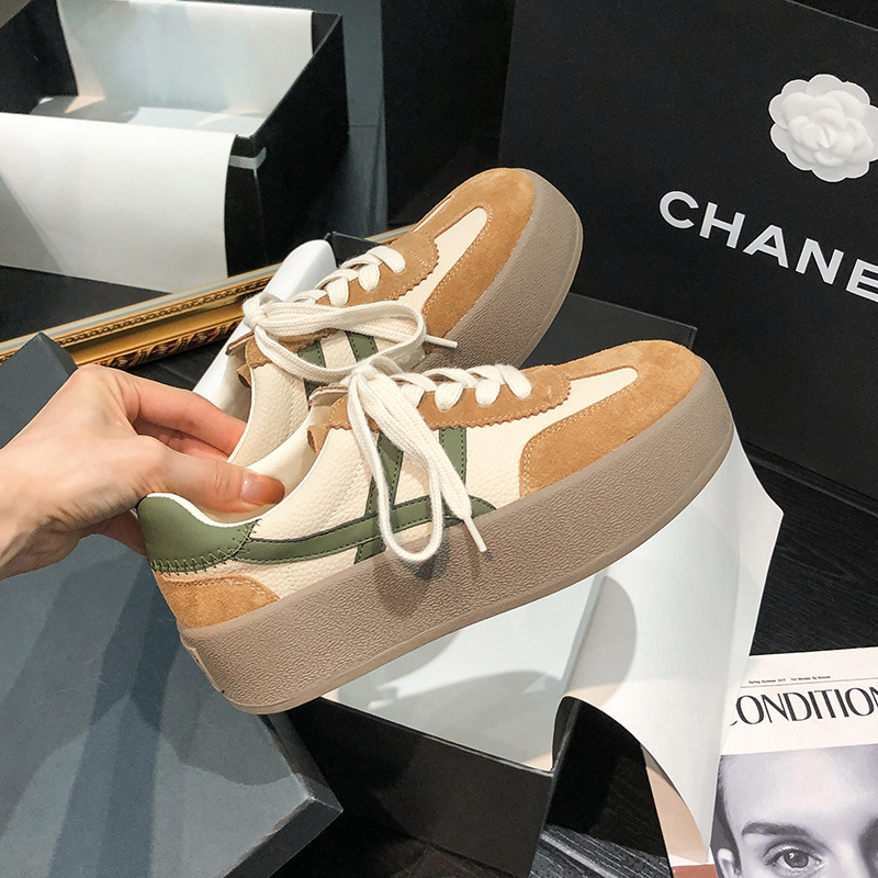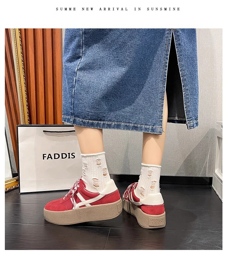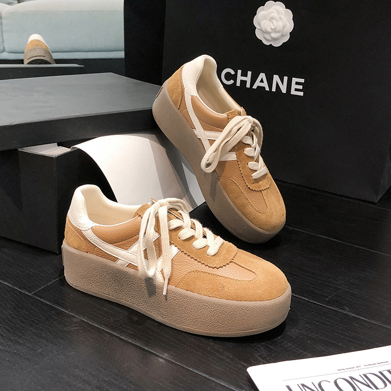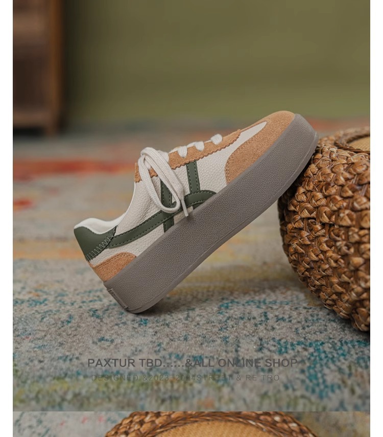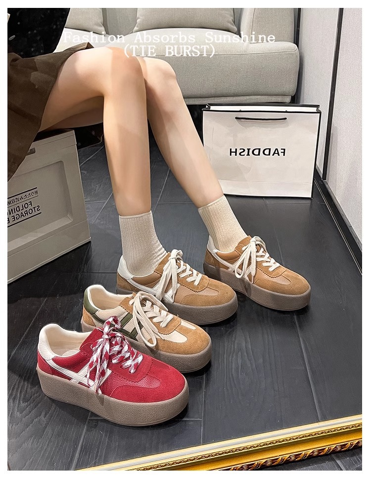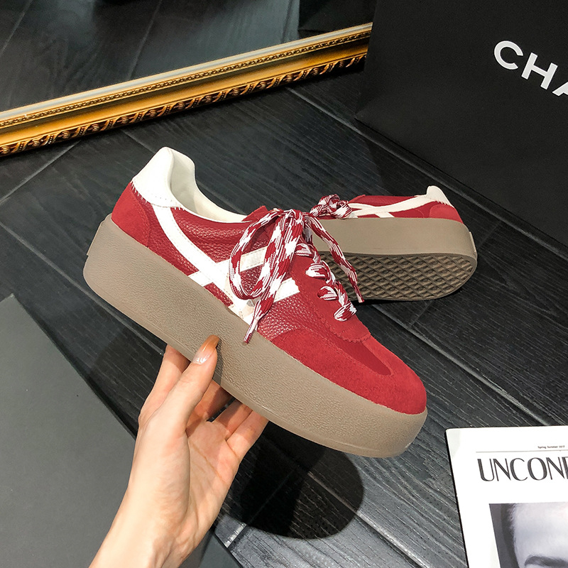 진짜 가죽 훈련 신발 여성의 2024 가을 새로운 두꺼운 유일한 스커트 신발 레드 캐주얼 운동화