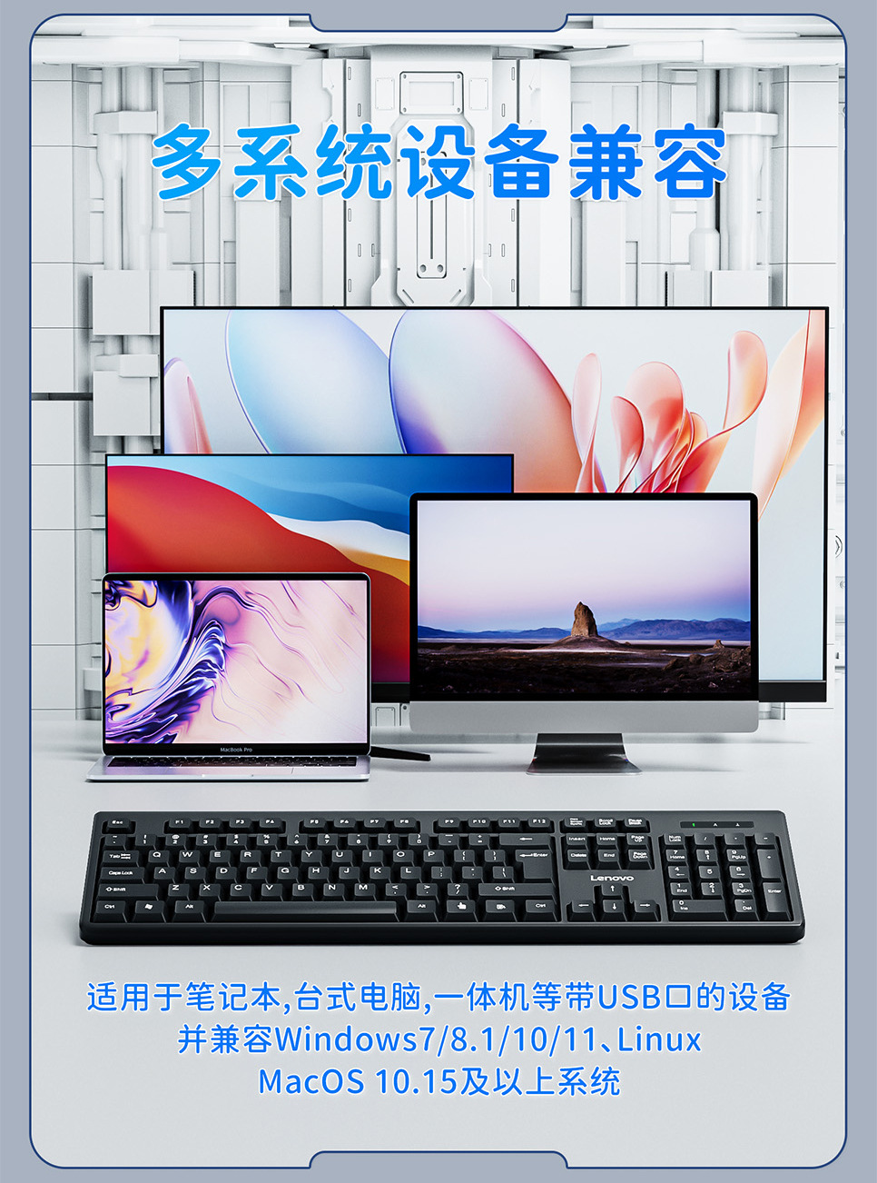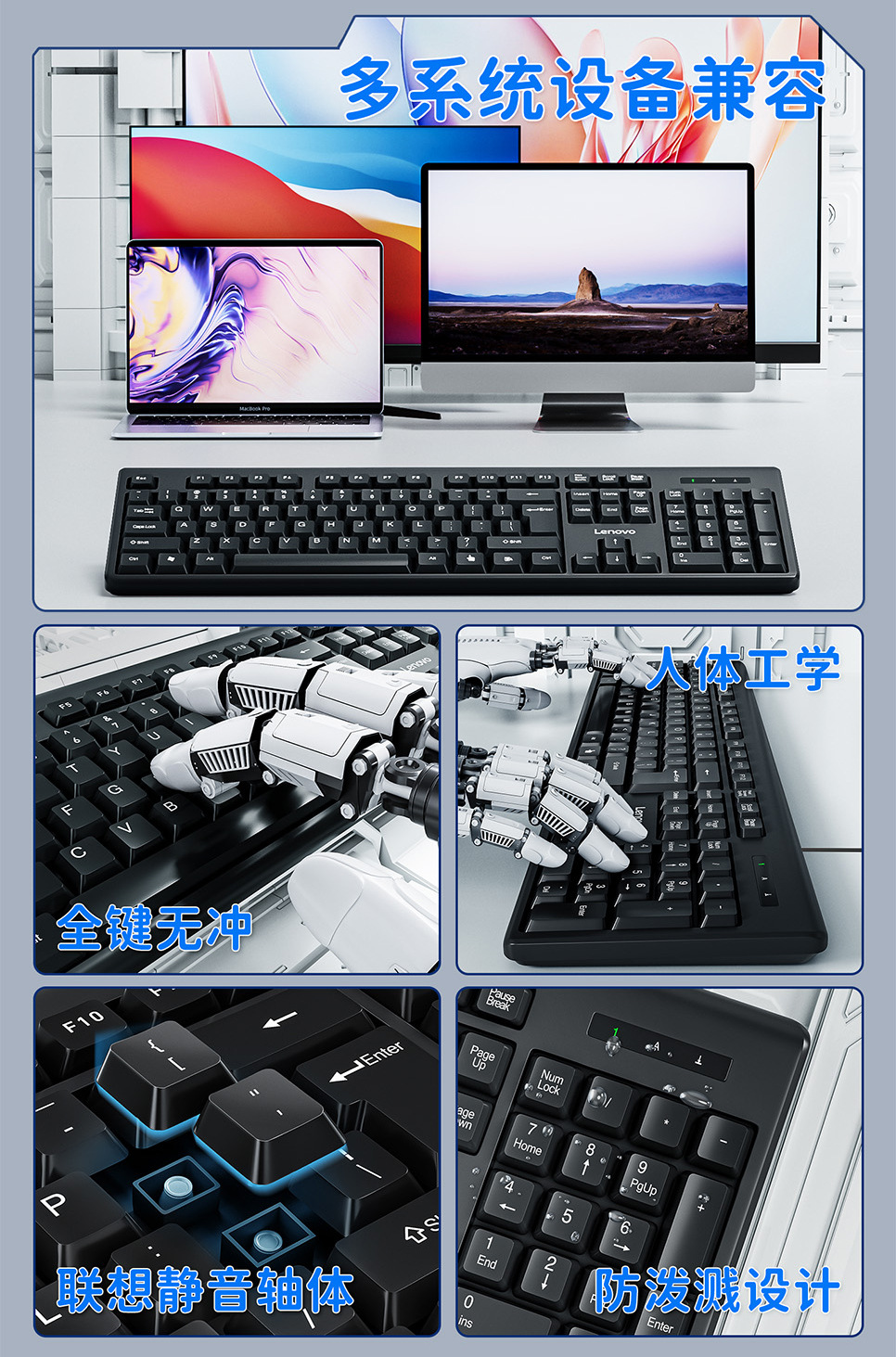 레노버 키보드 컴퓨터 USB 재판 비즈니스 사무실 타이핑 홈 얇은 유선 자동 키보드 컴퓨터 범용스토어 가기