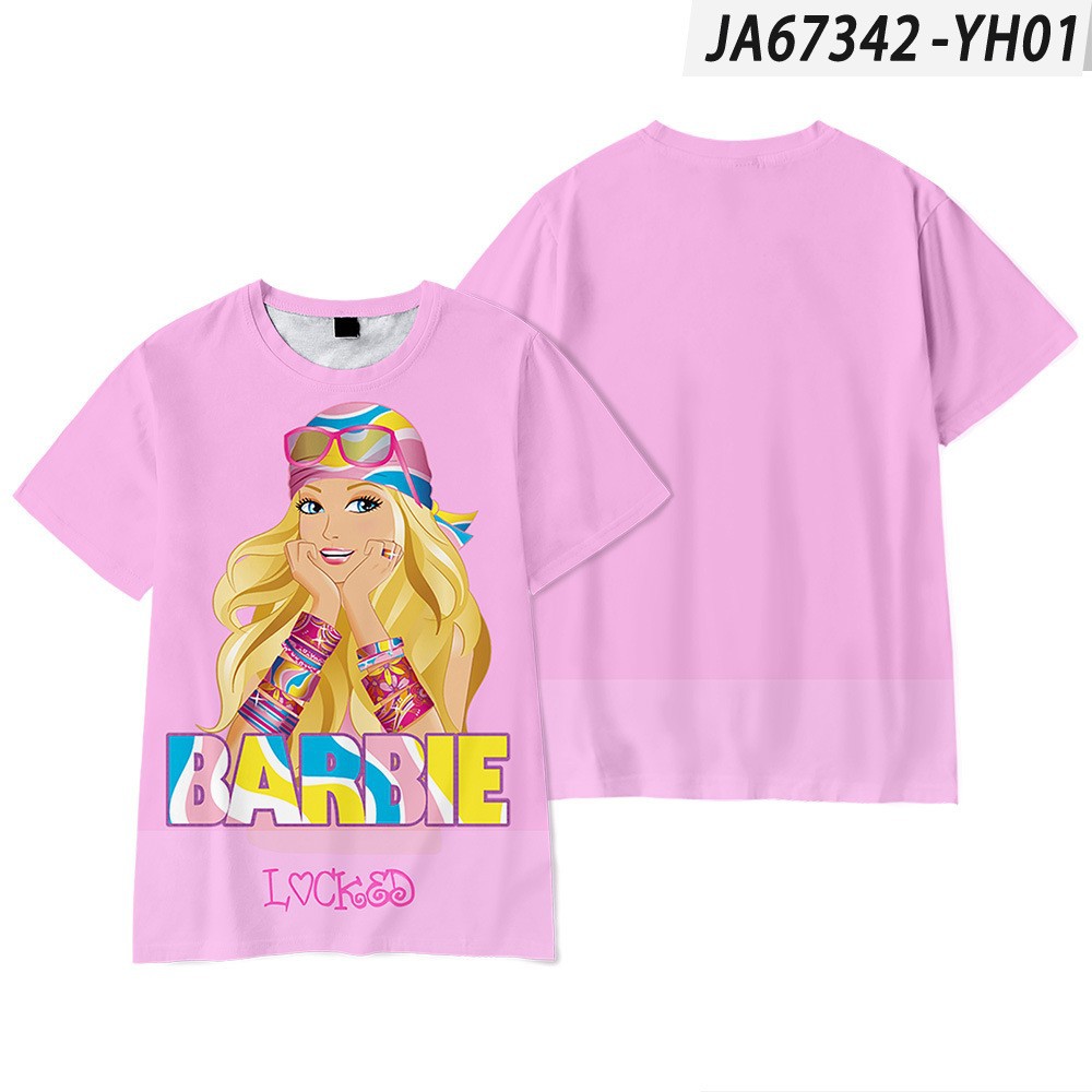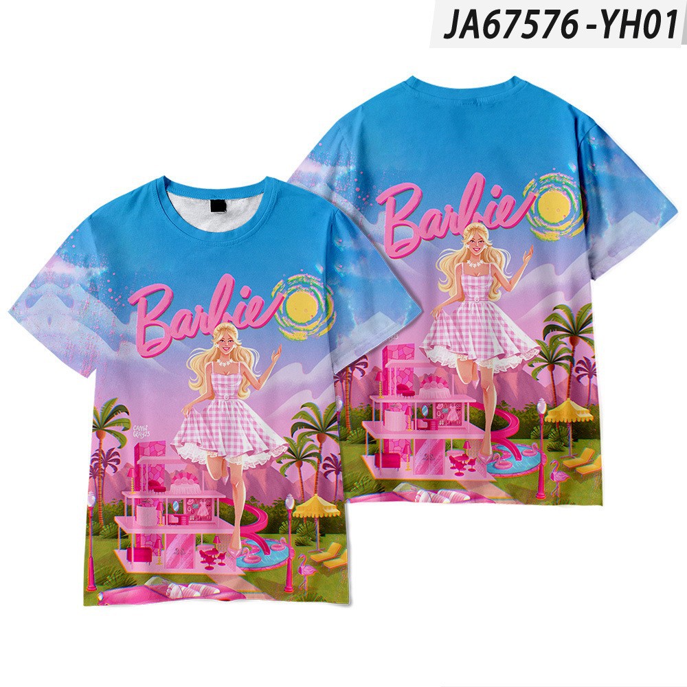 여름 국경 티셔츠 바비 아동복 반팔 3D 디지털 인쇄 어린이 최고 대형 어린이 반소매 통기성스토어 가기
